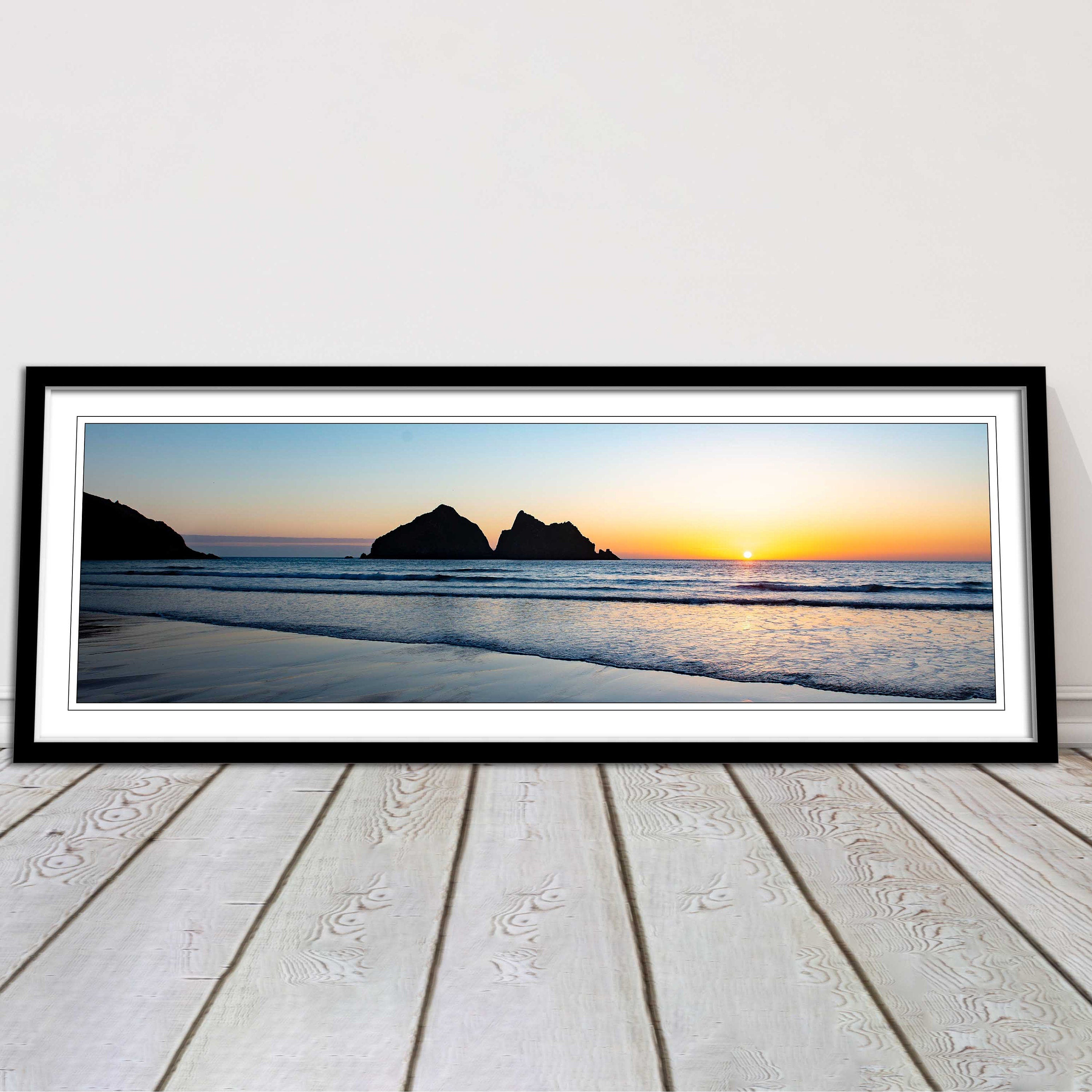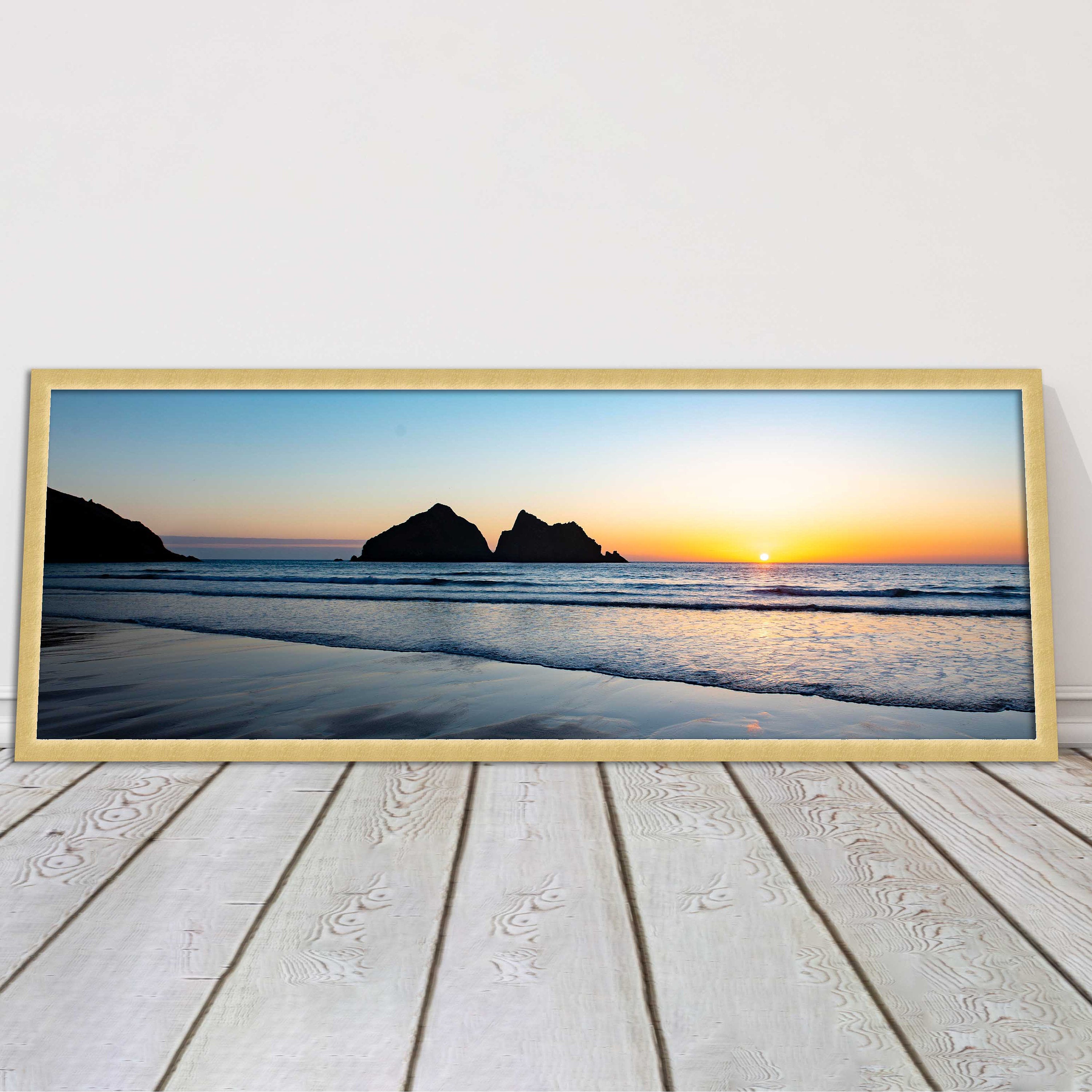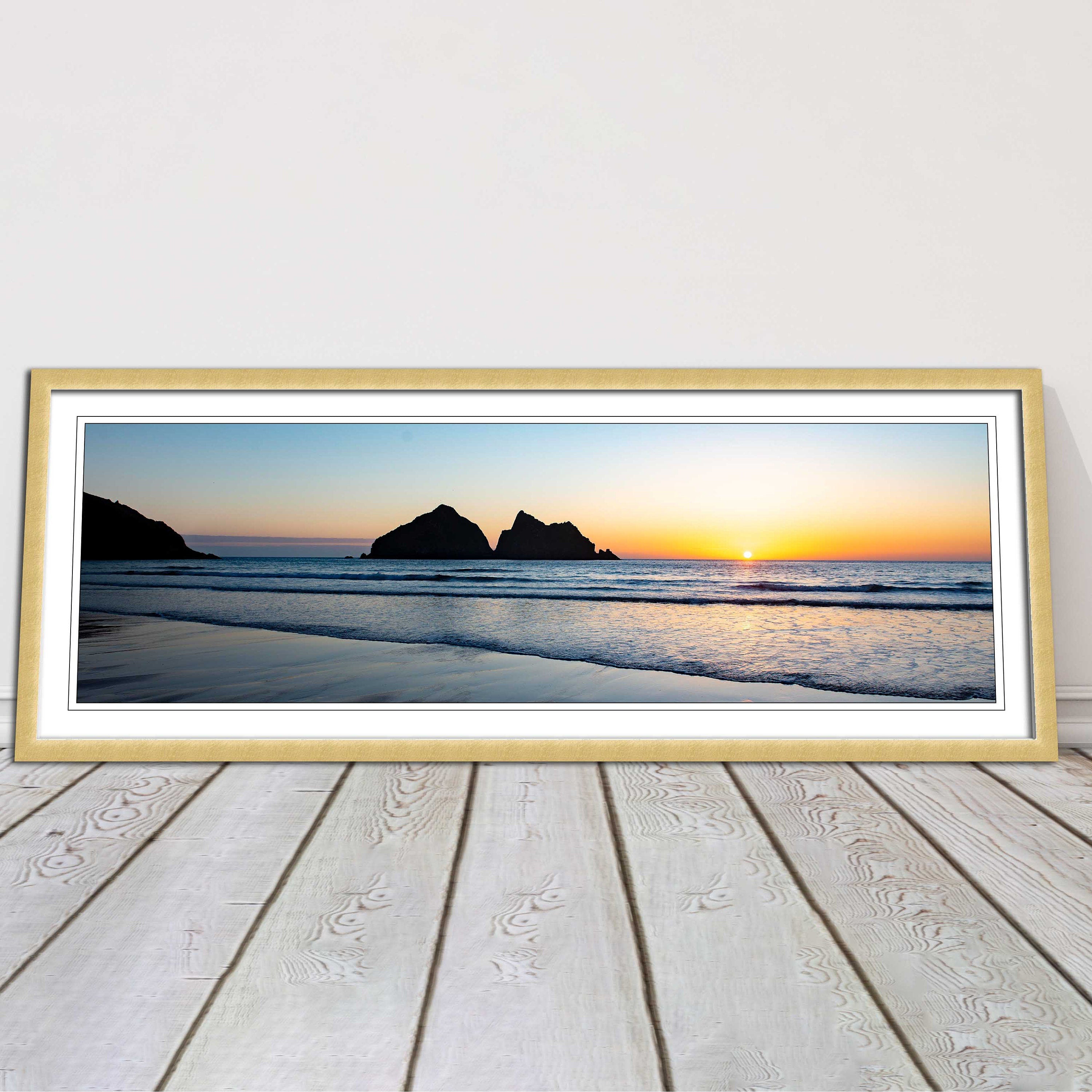 A beautiful panoramic framed picture of Holywell Bay at sunset, Cornwall. A choice of frames available.