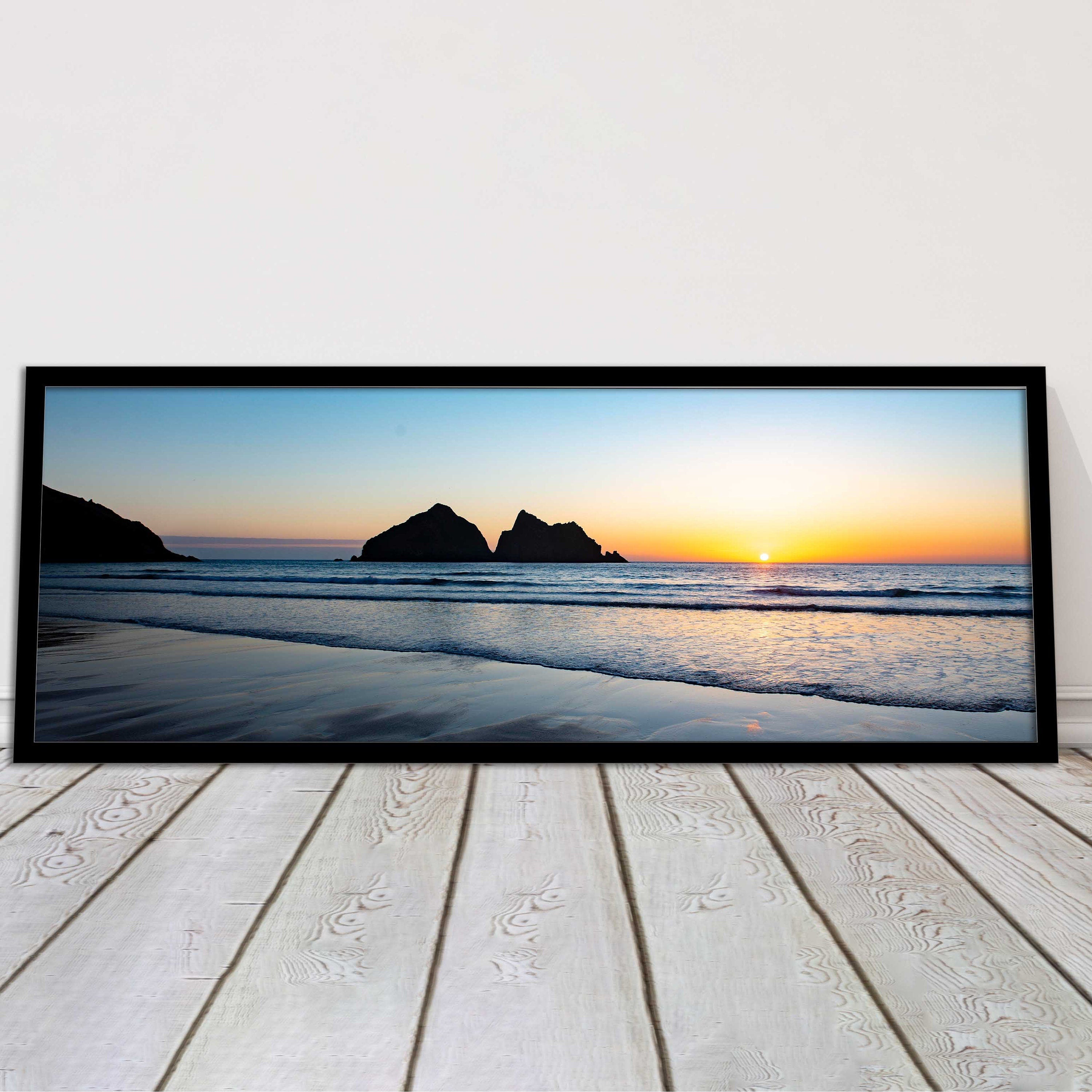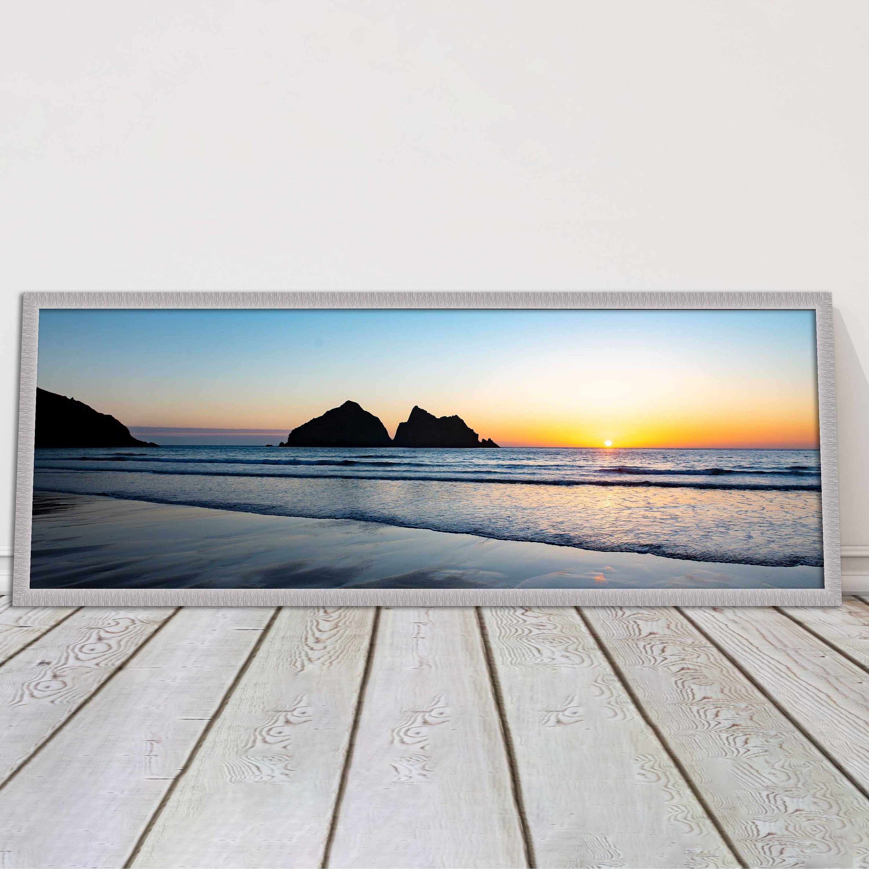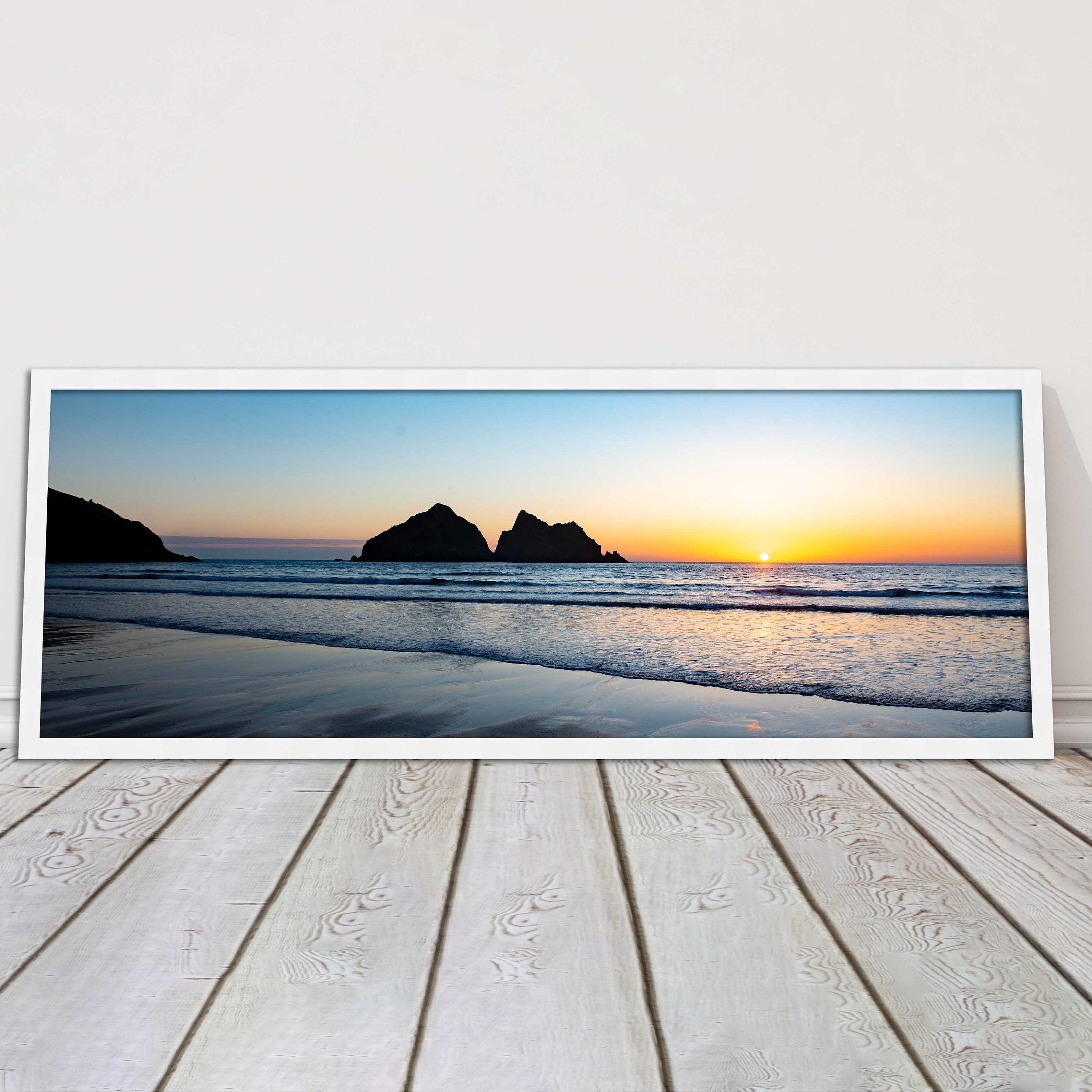 A beautiful panoramic framed picture of Holywell Bay at sunset, Cornwall. A choice of frames available.