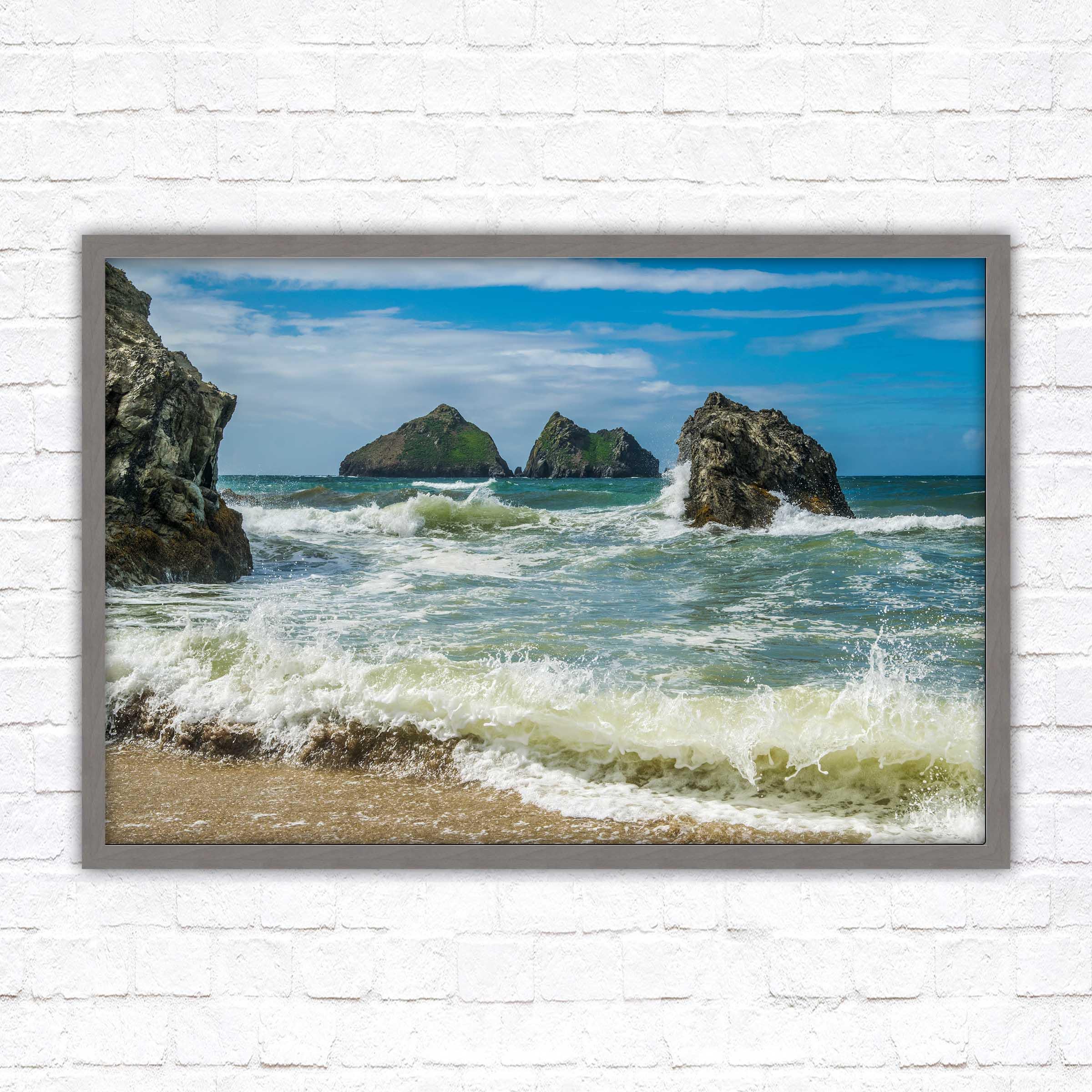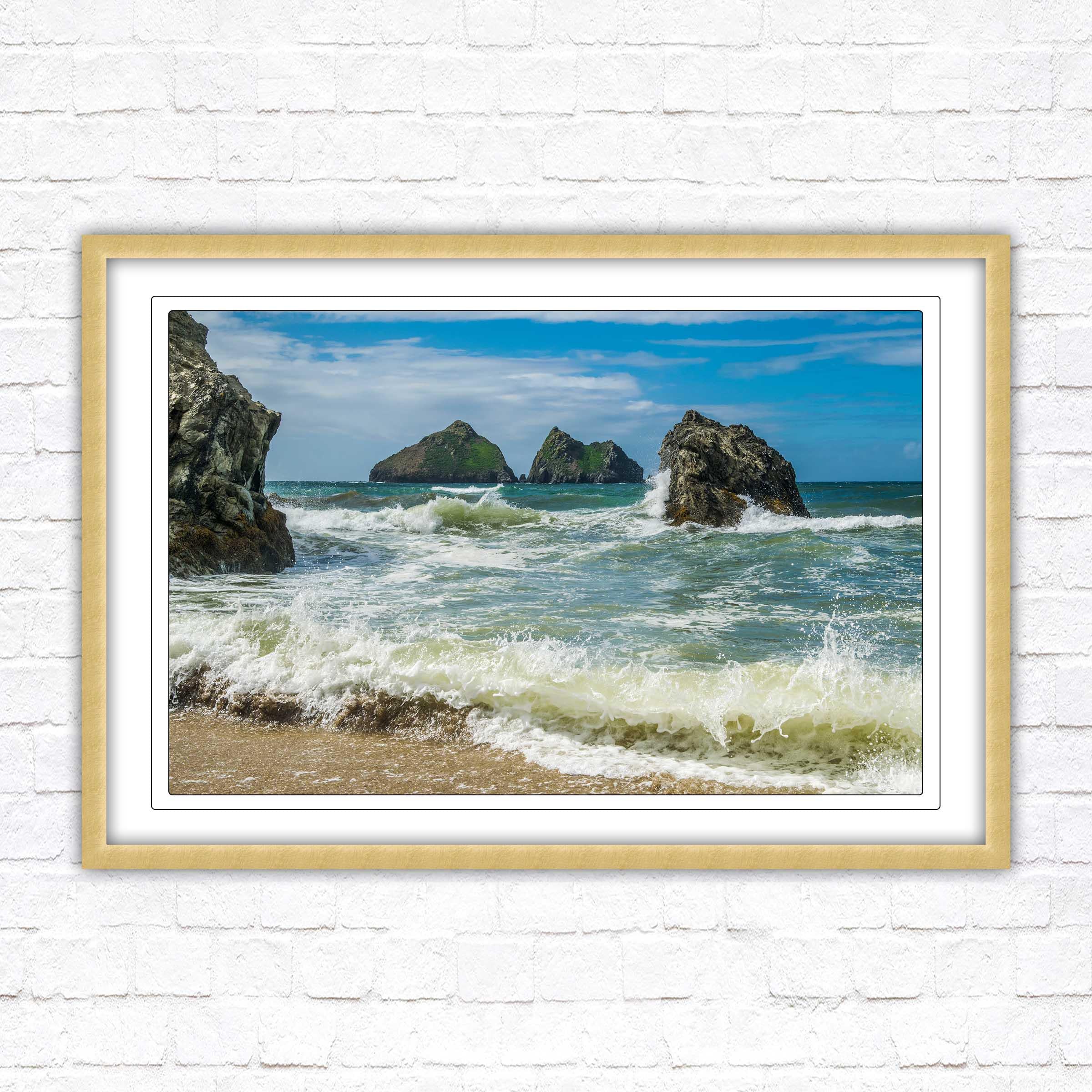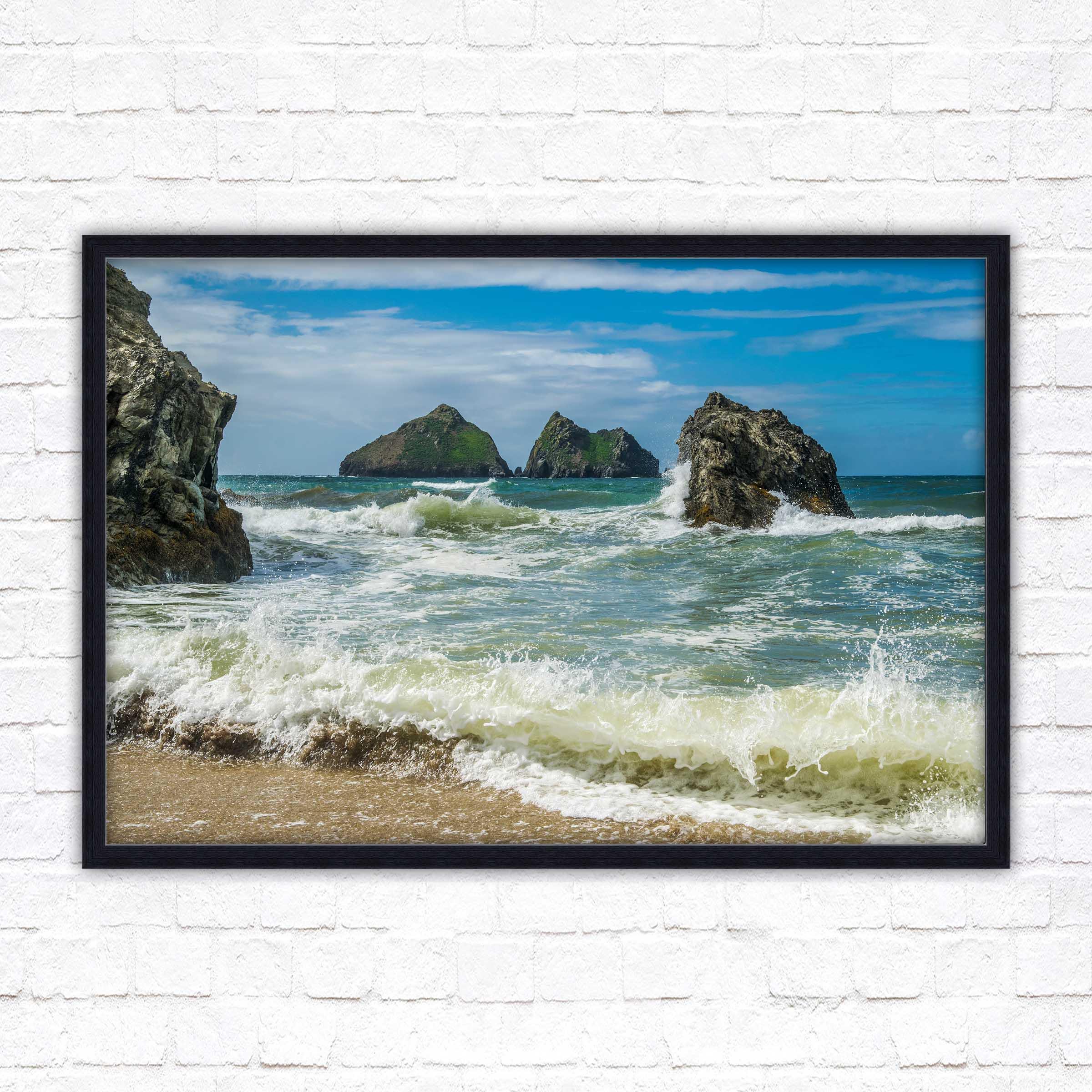 A beautiful framed picture of Holywell Bay near Newquay in Cornwall. Choose from a choice of frame styles. Rugged Cornish coastline. Gift, anniversary, birthday.