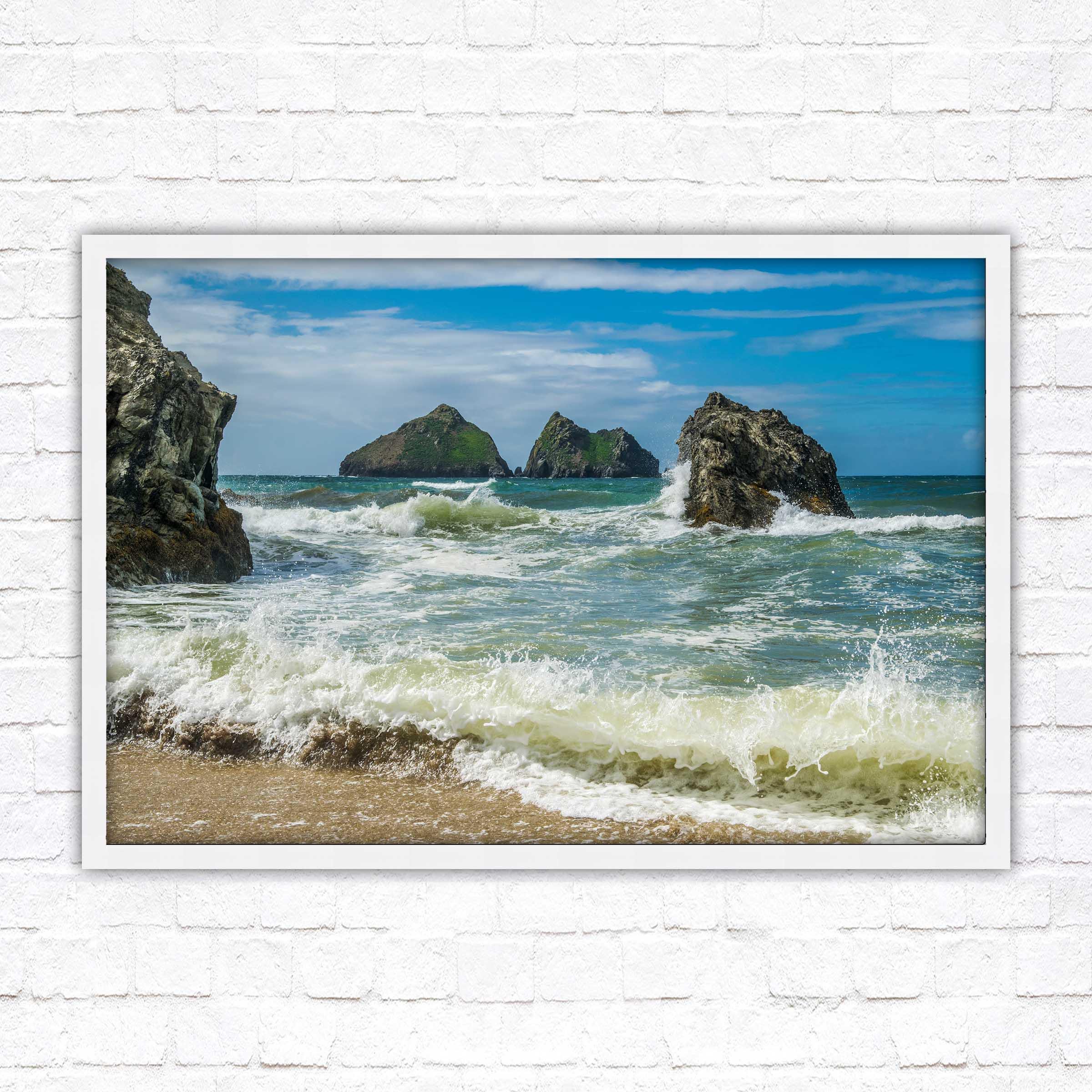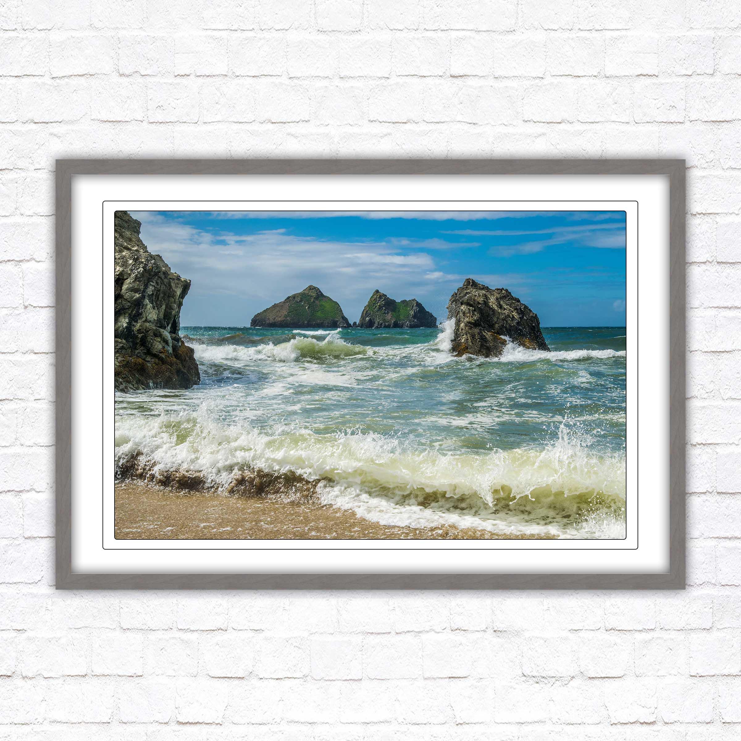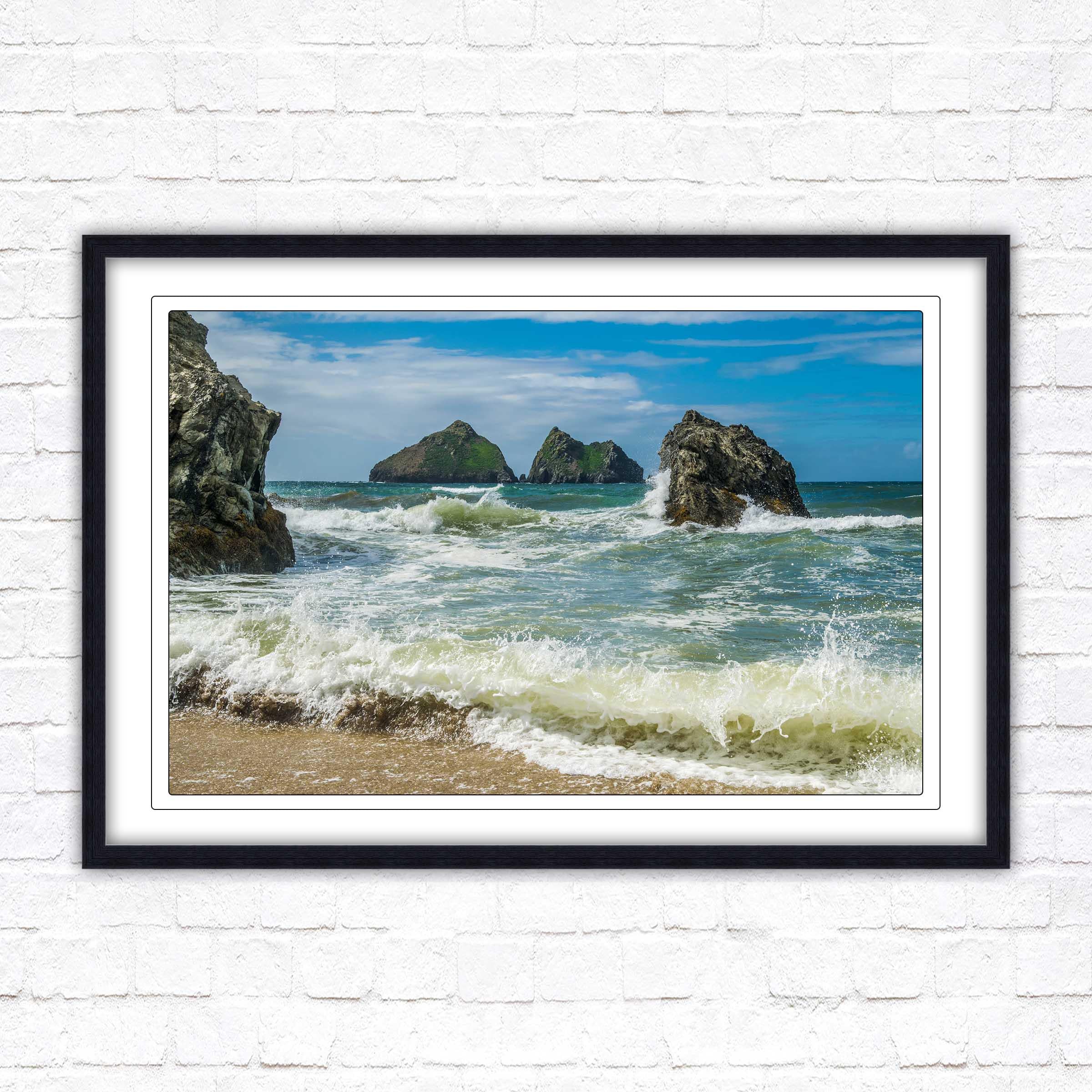 A beautiful framed picture of Holywell Bay near Newquay in Cornwall. Choose from a choice of frame styles. Rugged Cornish coastline. Gift, anniversary, birthday.