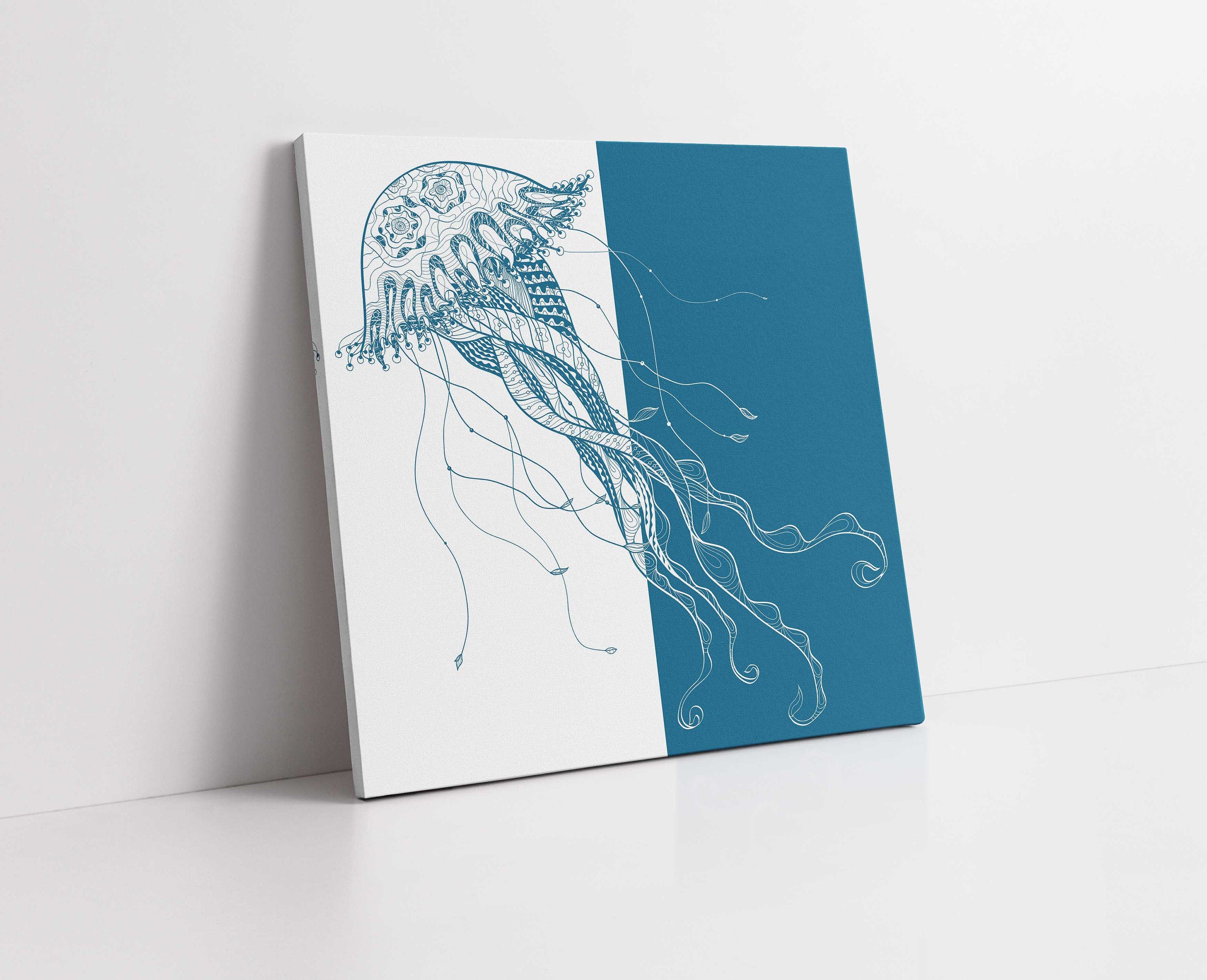 Jellyfish in pattern form, on a two toned background. Canvas picture print. Available in choice of sizes. nautical themed. Choose any colour to suit your room decor.
