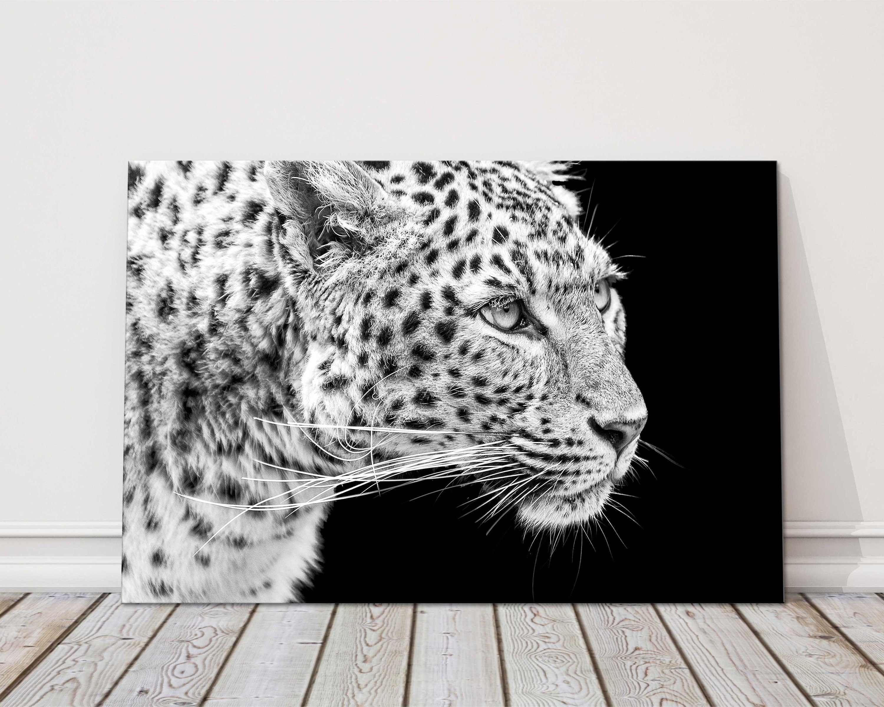 Striking portrait of Leopard in black and white. Printed and finished as a canvas picture. Choice of sizes available. Ideal gift/present.