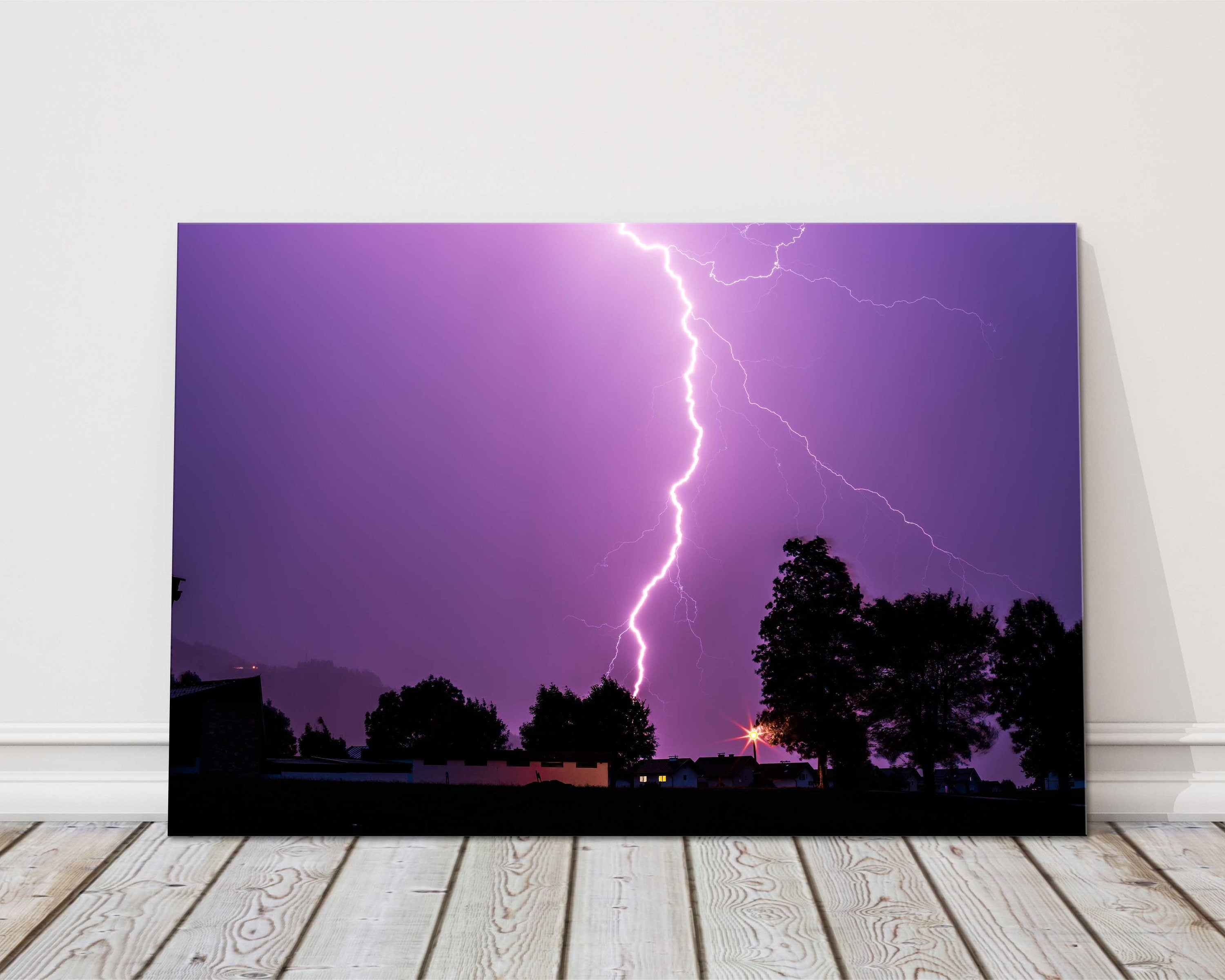 Lightening strike in the night sky. Stormy sky image. Printed and framed as a canvas picture print. Ideal gift for... Read more