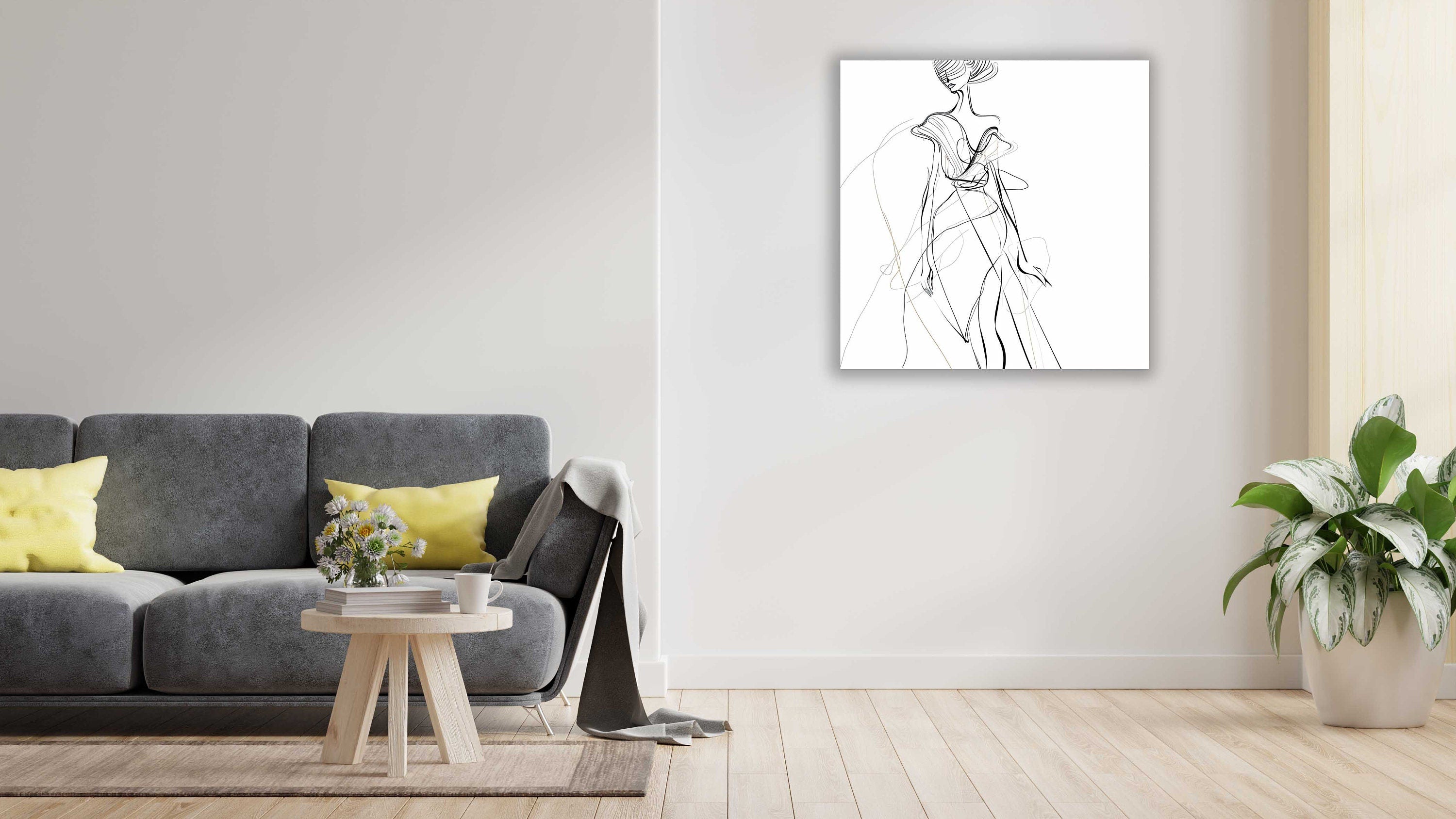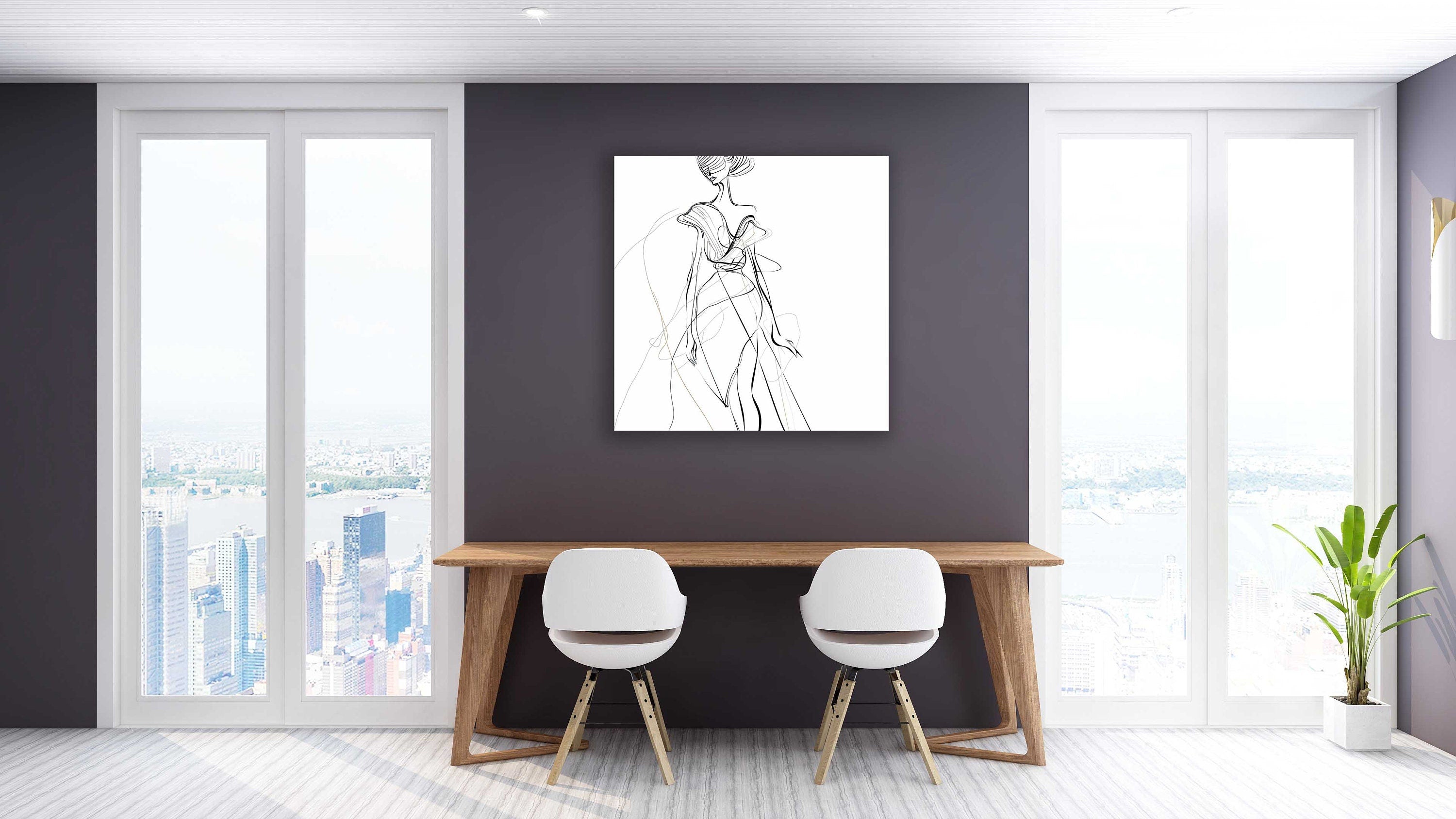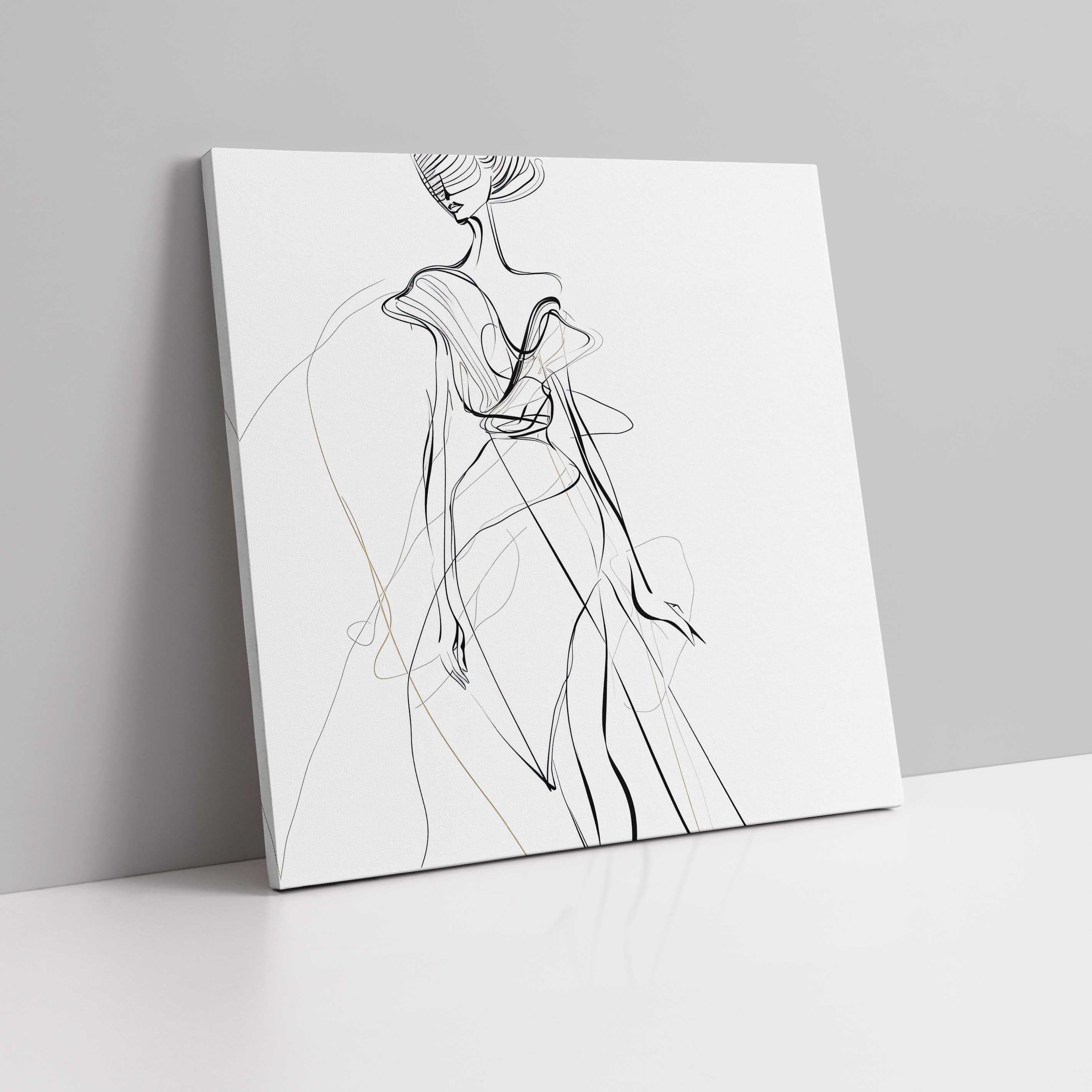 Line drawing of a glamourous woman. Elegant Black and white Canvas picture print. Available in a choice of sizes.
