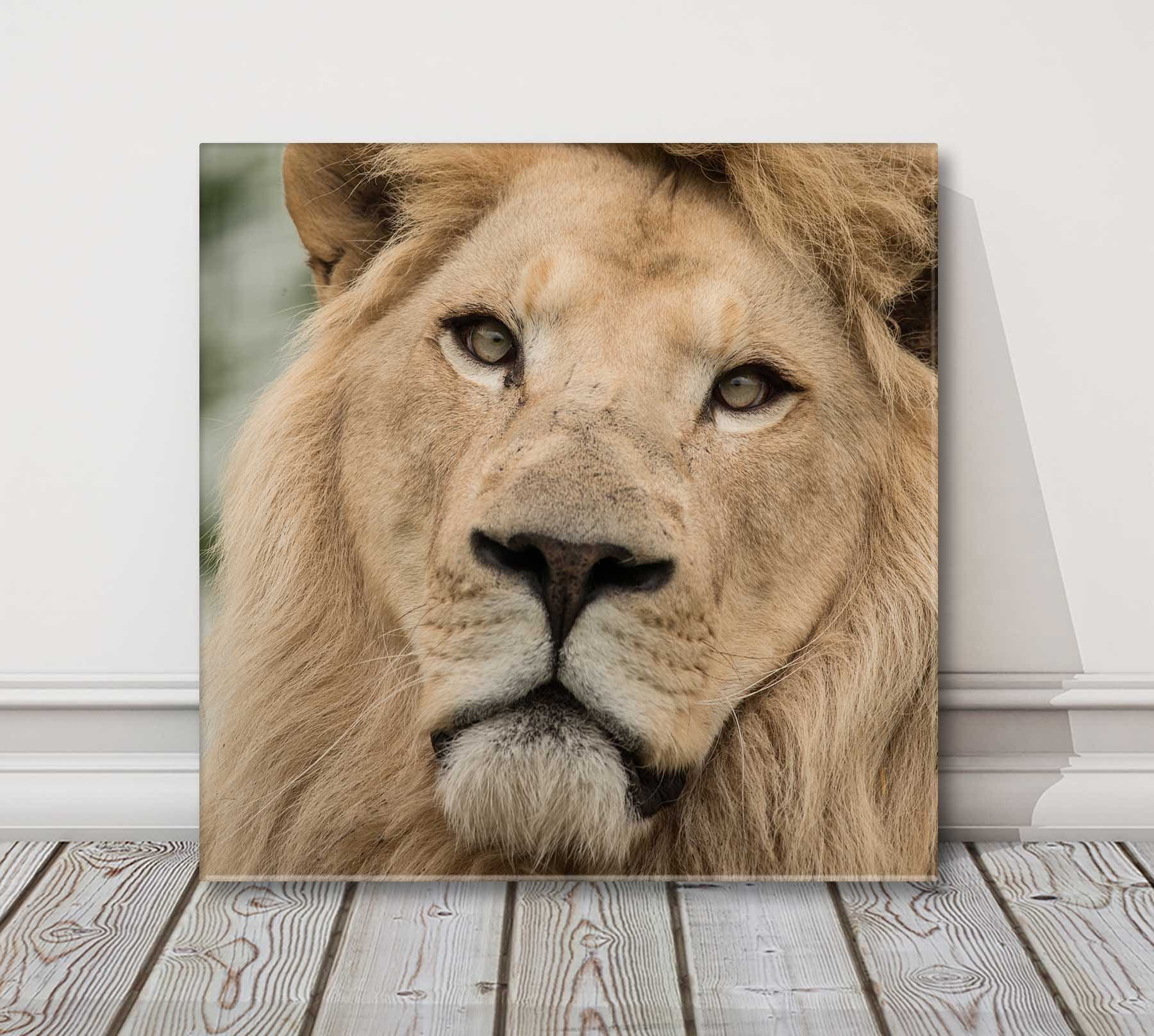 Stunning close up of a Lion head. Beautiful wildlife image printed and framed as a canvas picture print. Available to order in a choice of sizes.