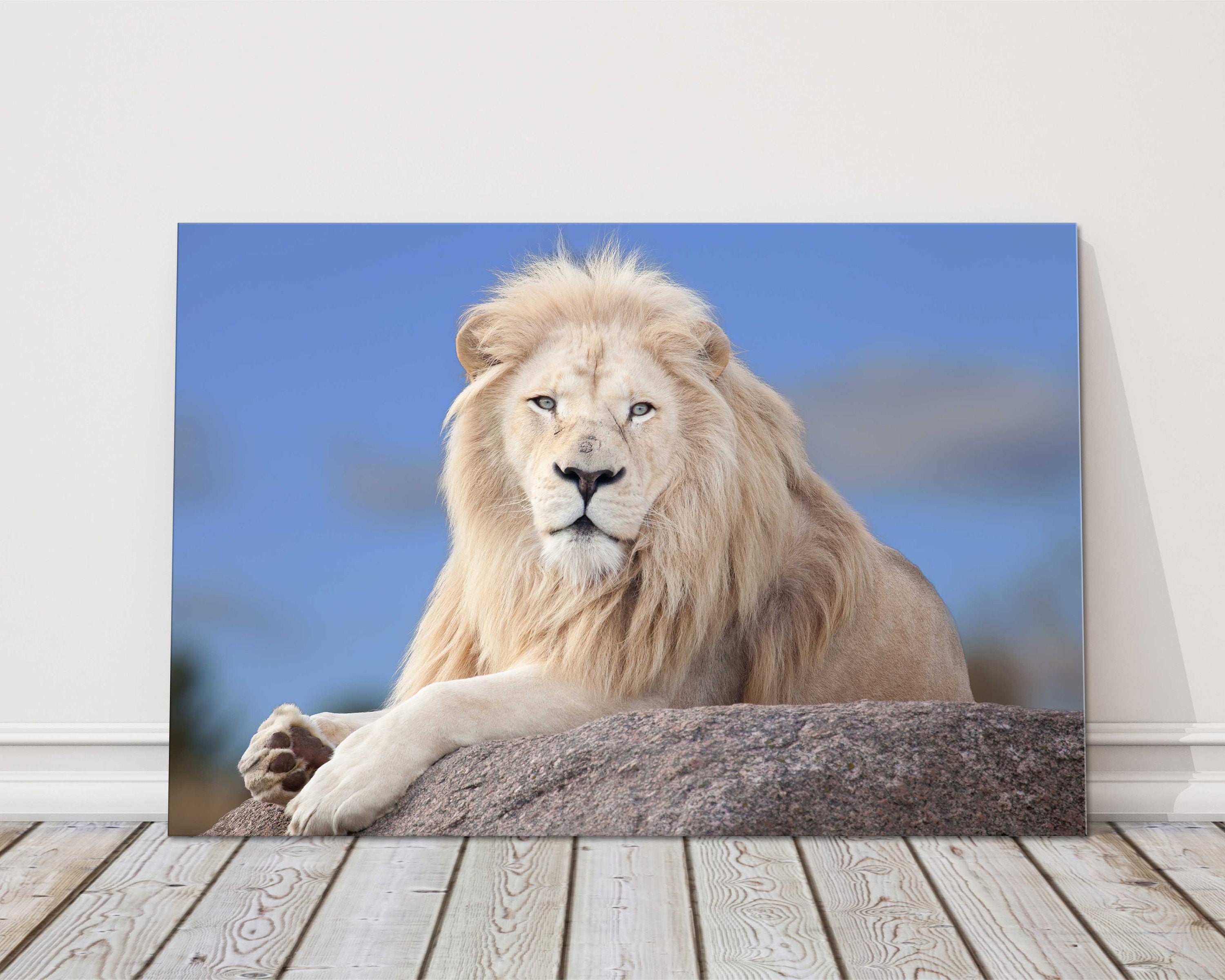 White Lion in the moonlight. Beautiful wildlife image of big cat. Ideal gift, birthday present. Choice of sizes available to order.