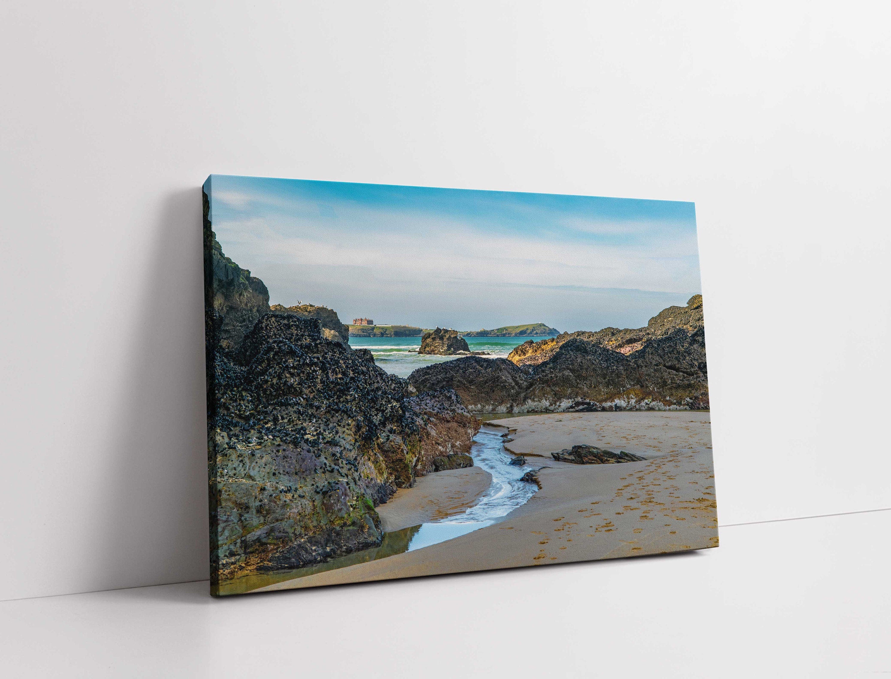 DESCRIPTION Little Fistral beach, Newquay, Cornwall. Low tide. Picture printed and framed as a canvas print. Available in a choice... Read more