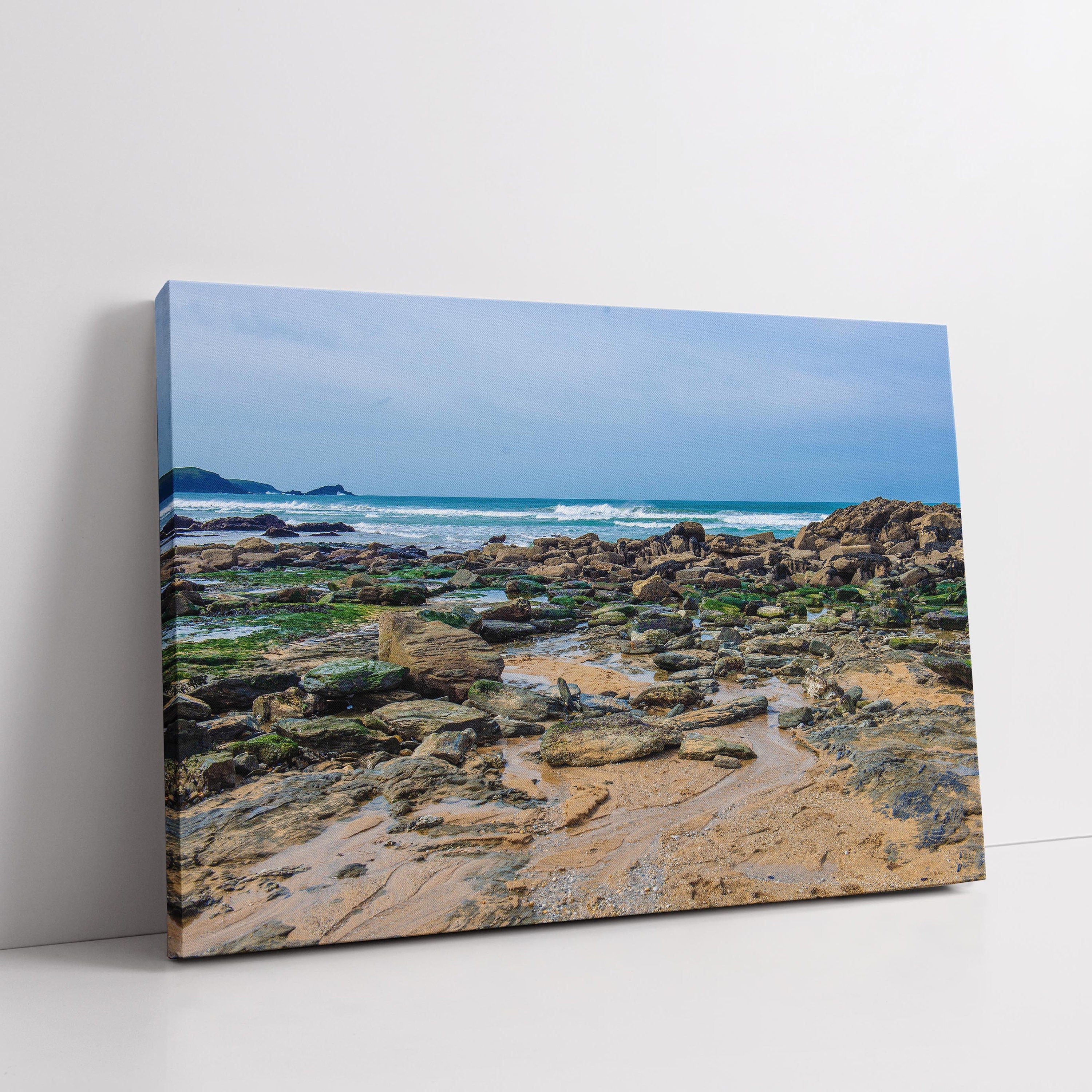 DESCRIPTION Little Fistral beach rock pools, Newquay, Cornwall. Low tide. Picture printed and framed as a canvas print. Available in... Read more