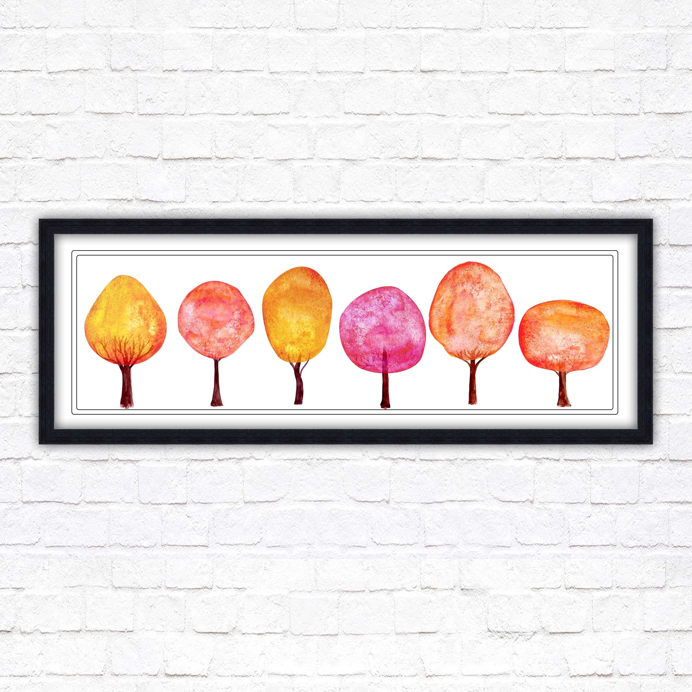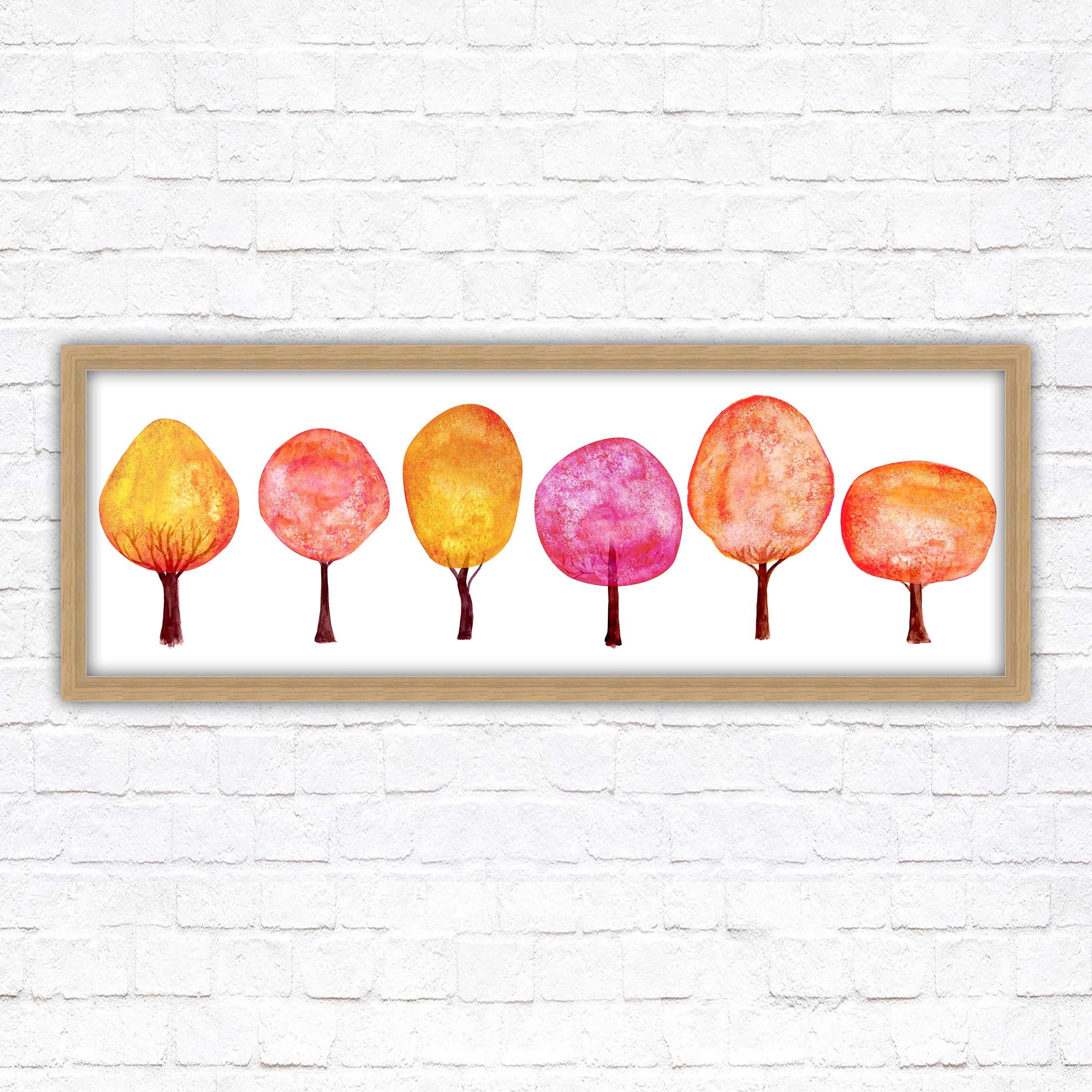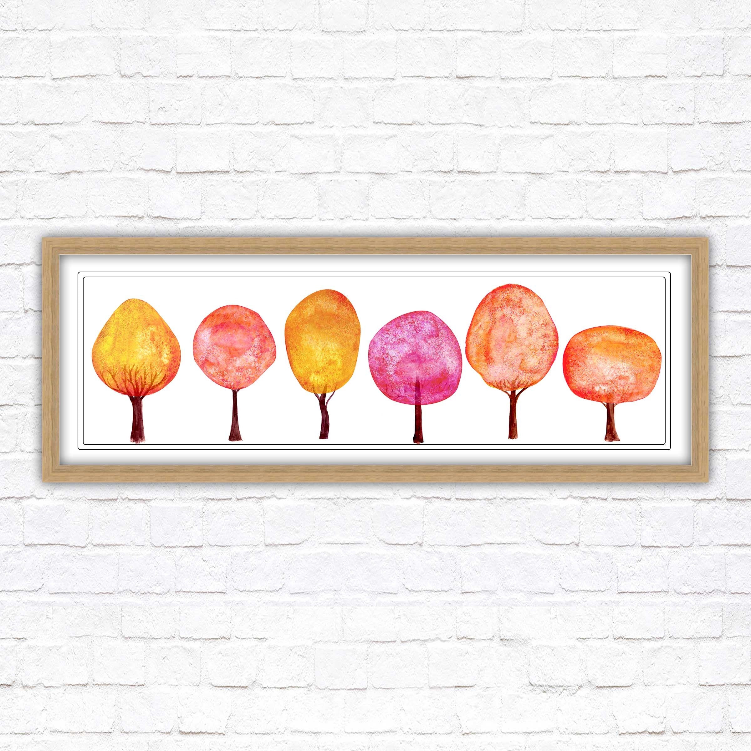 Colourful trees wall art, panoramic framed picture print. Choice of size, frame colours and borders.