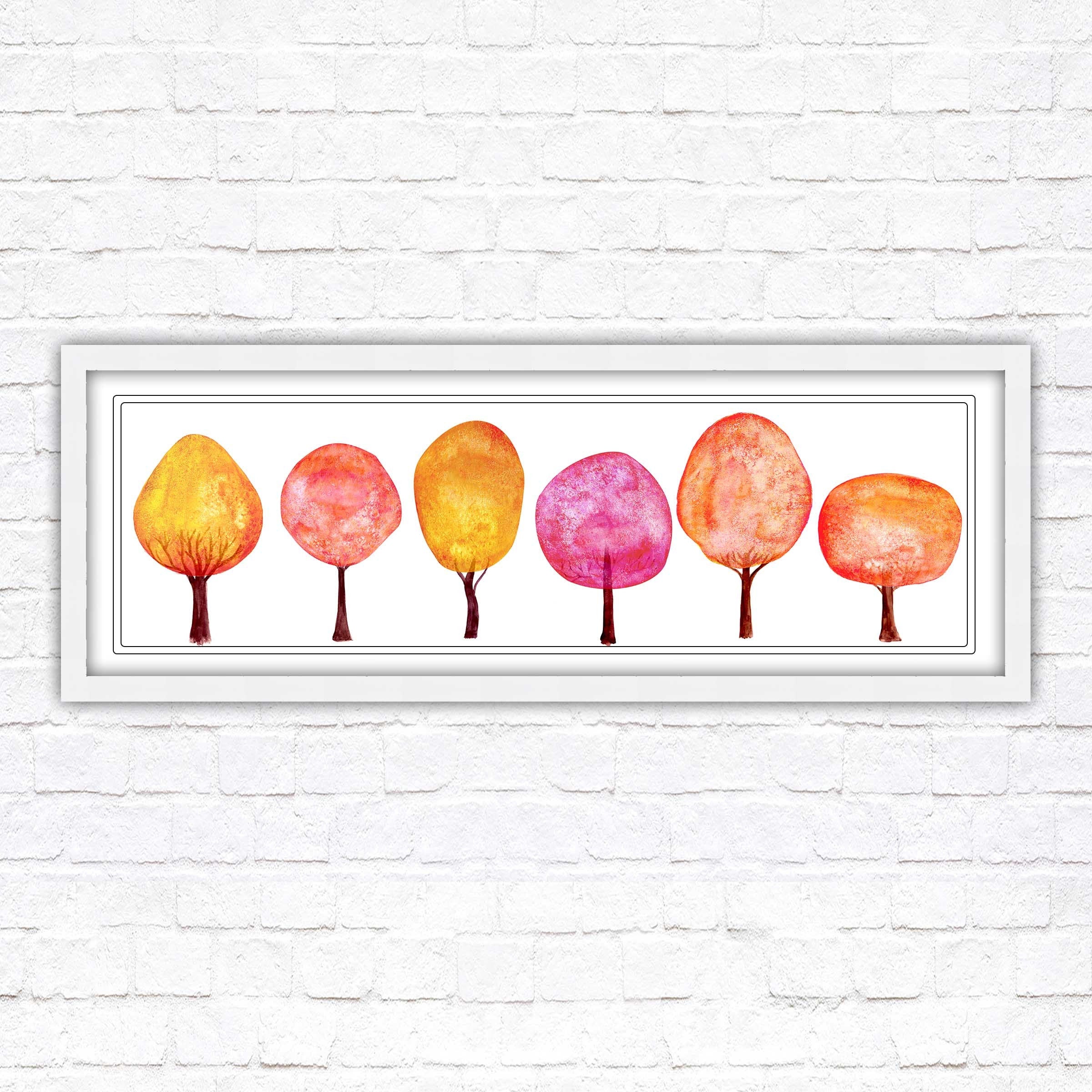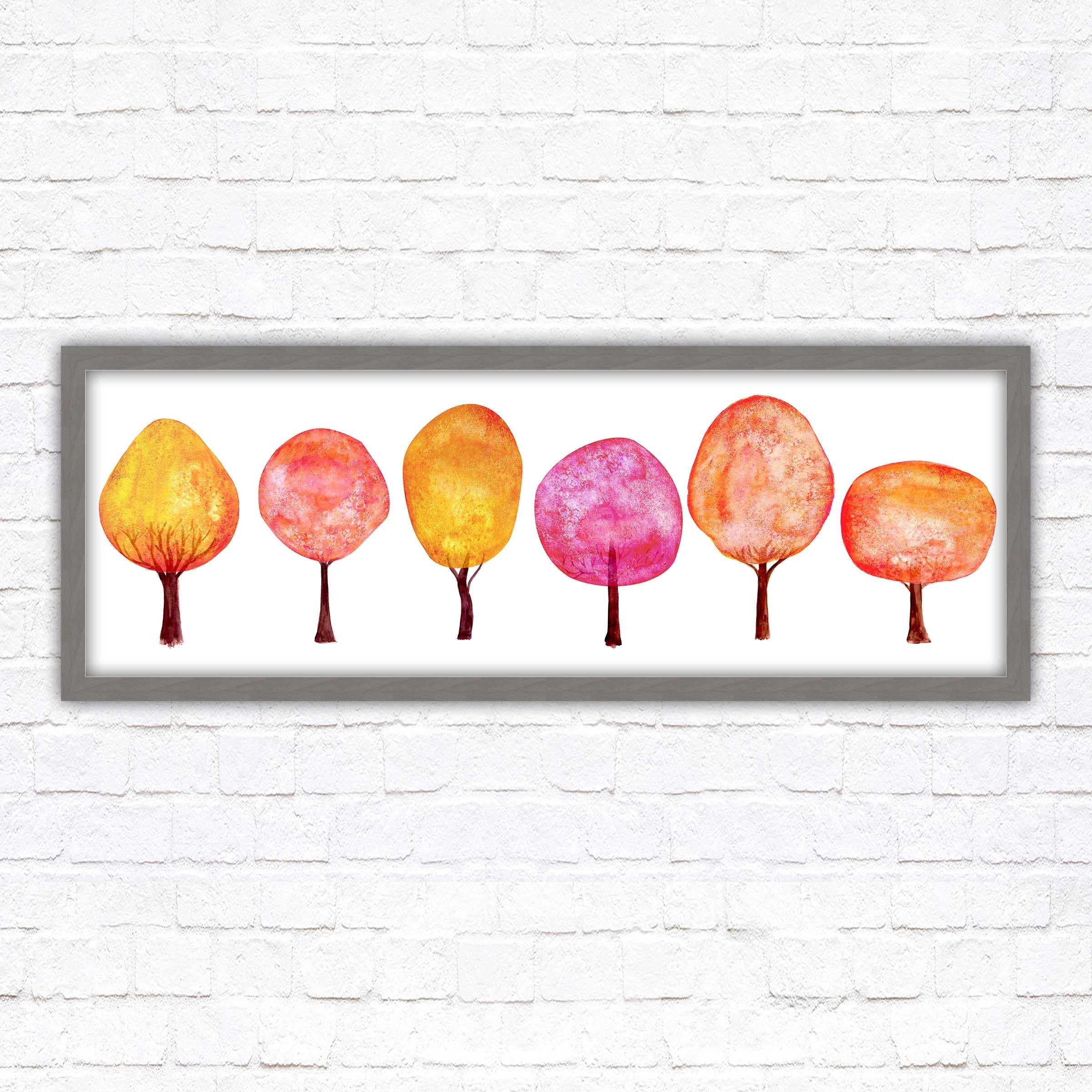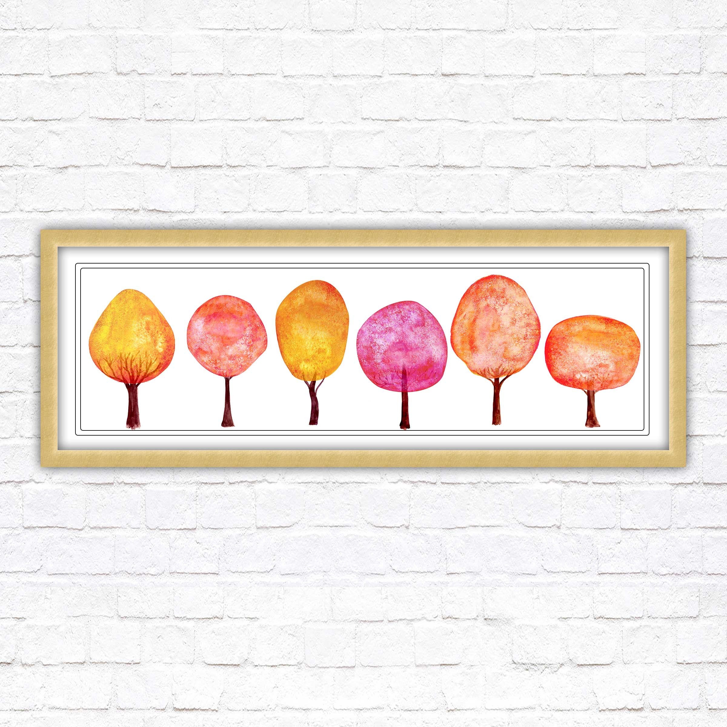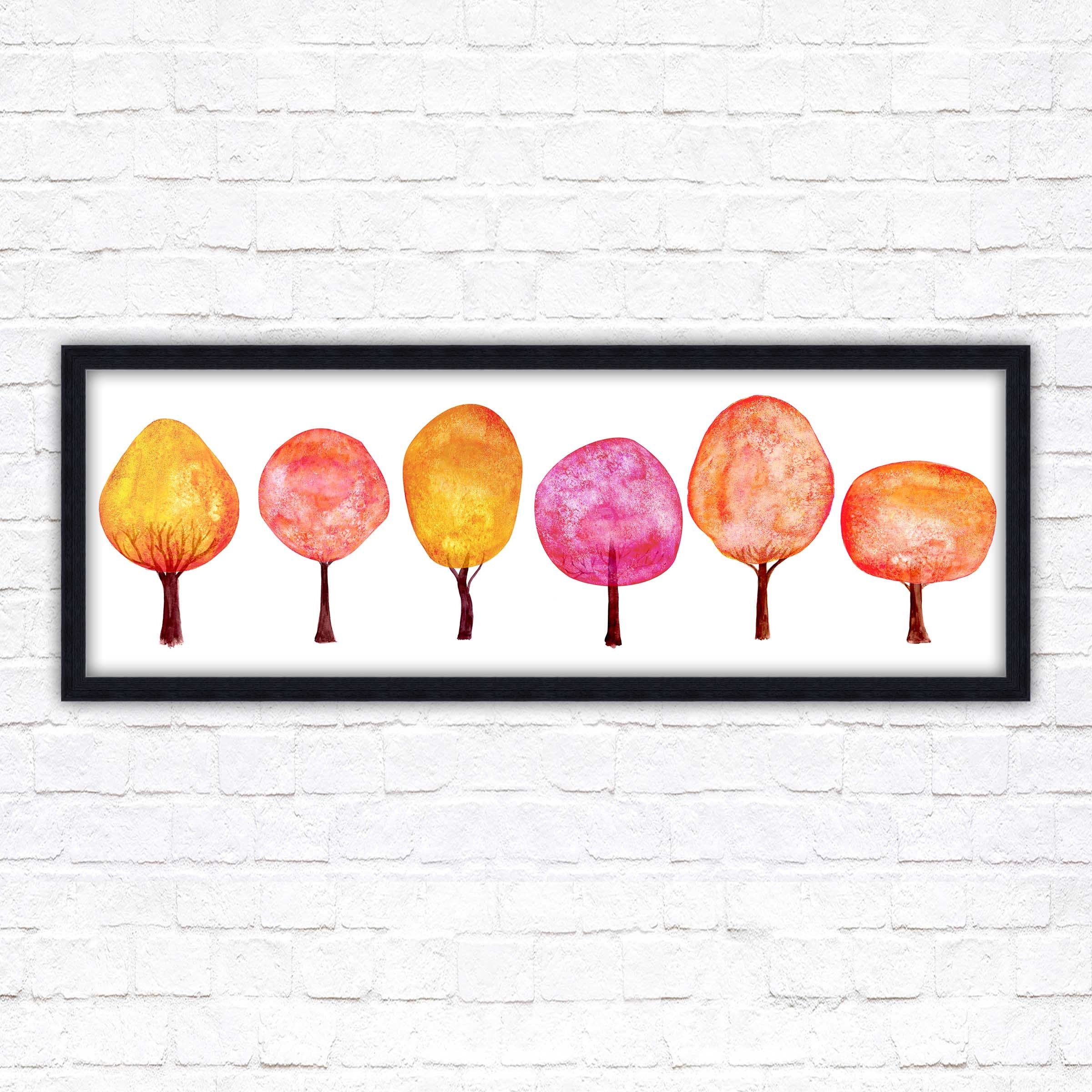 Colourful trees wall art, panoramic framed picture print. Choice of size, frame colours and borders.