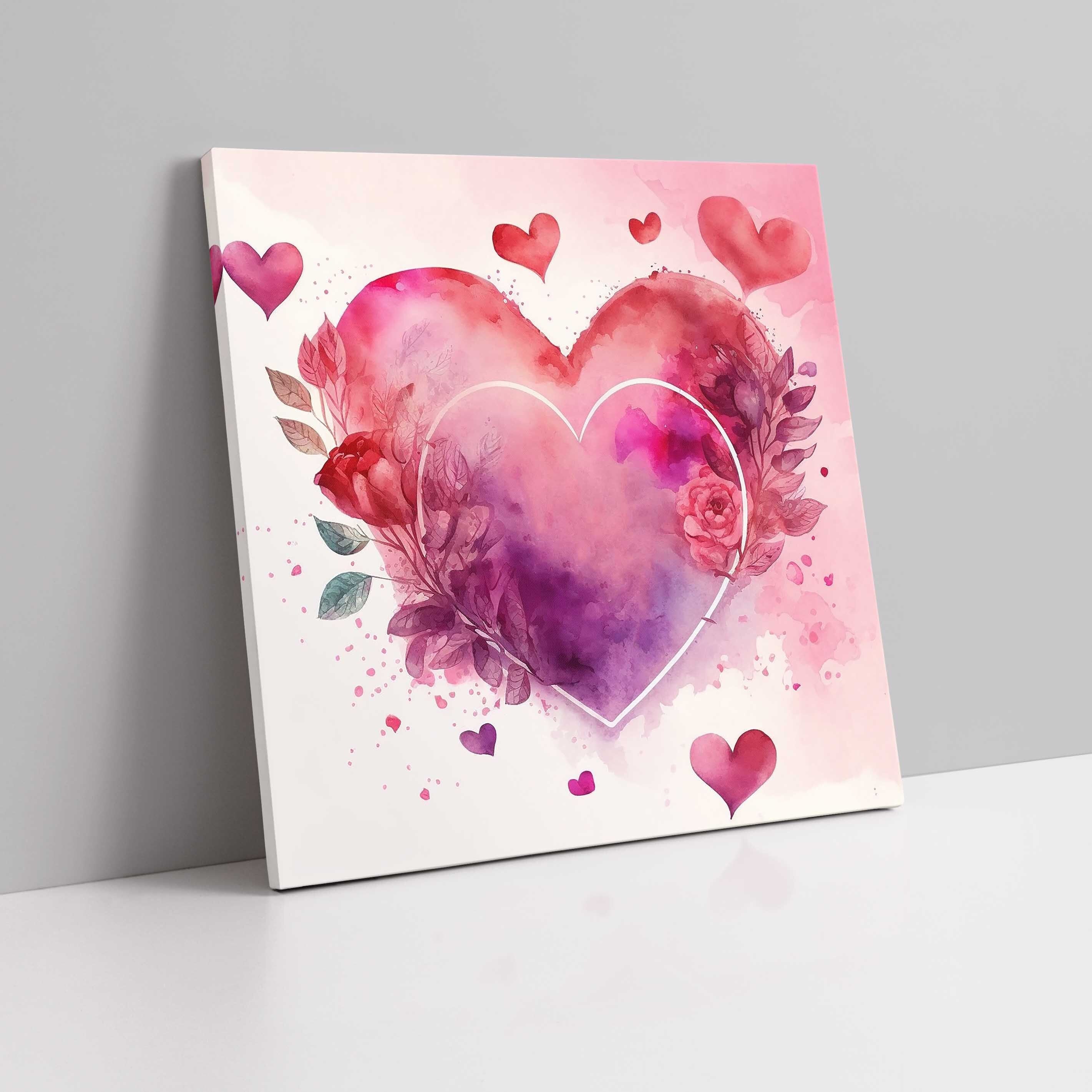 Hearts and flowers. Pink and red, colours of love. Stunning picture on a white background. Printed and framed as a canvas picture print. Valentines day. Girlfriend, boyfriend. Available to order in a choice of sizes.