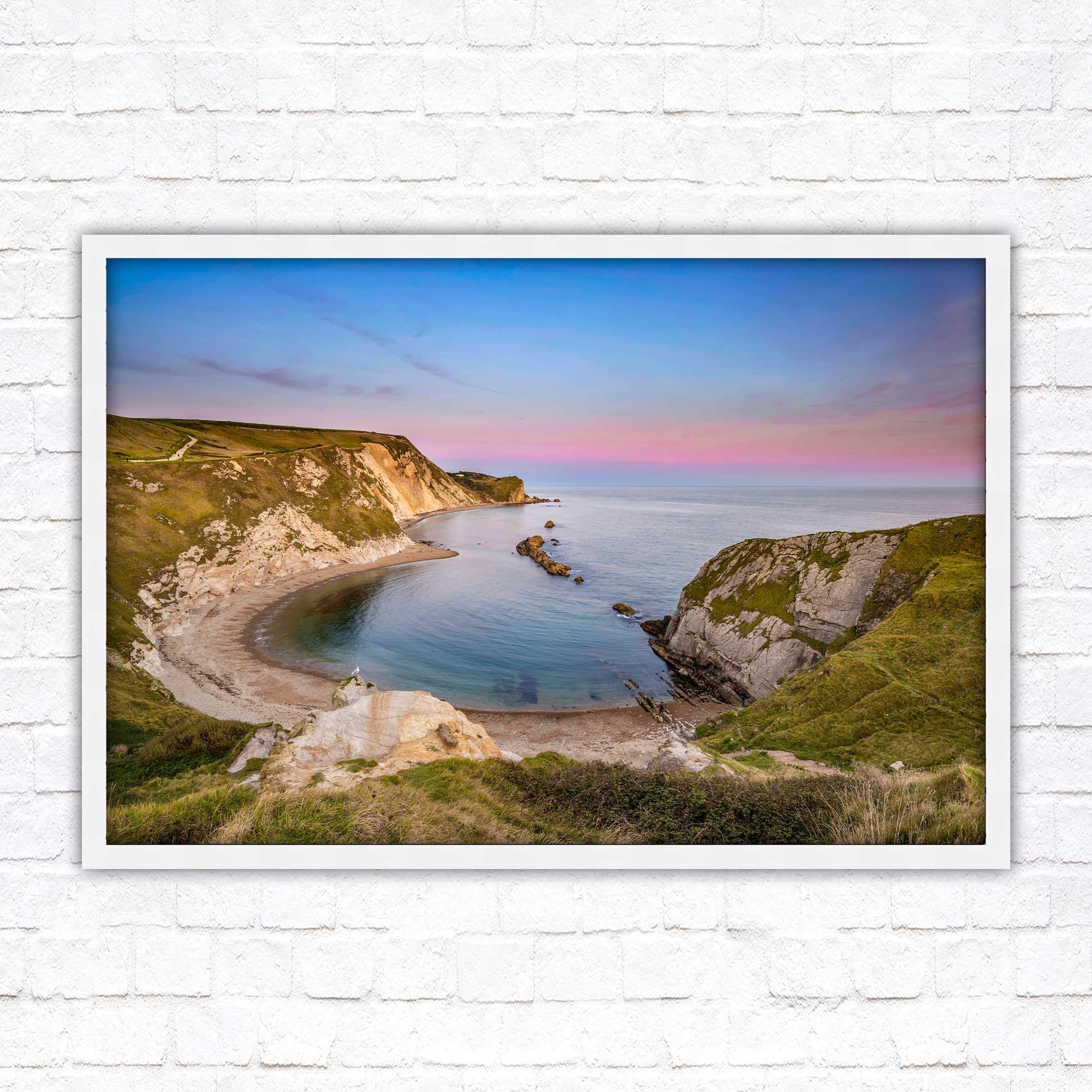 Add a touch of serenity to your space with this captivating image of Man O' War Cove, Dorset. Order yours today and let the beauty of this iconic landmark transport you to the tranquil shores of Dorset every day!