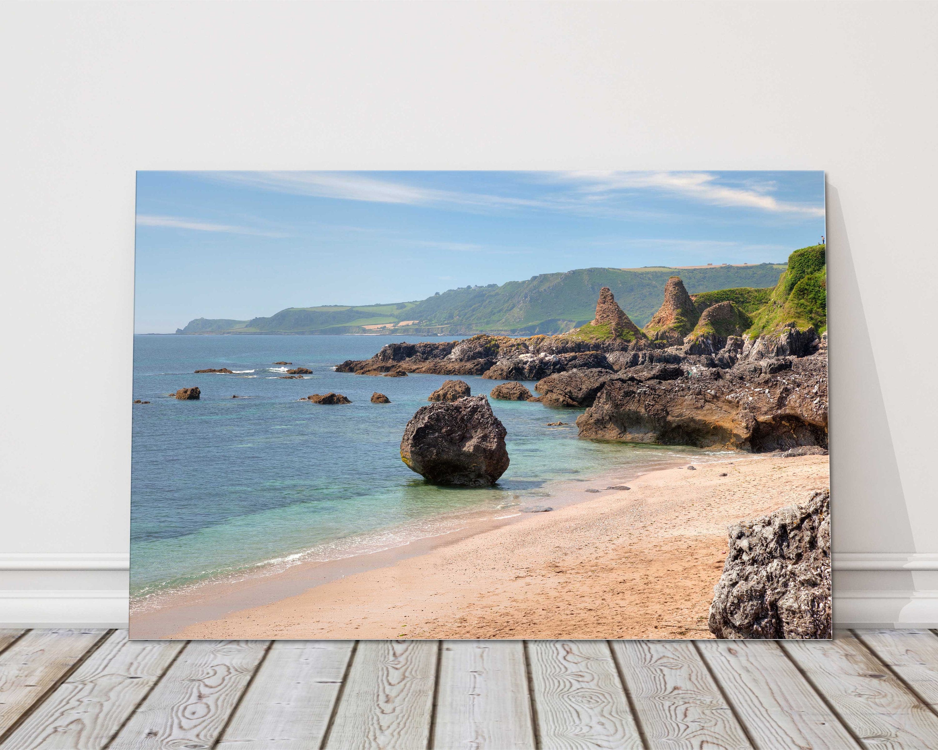 DESCRIPTION Beautiful Emerald waters at Great Mattiscombe Sand, Devon, England. Stunning coastal image. Canvas picture printed and framed as a... Read more