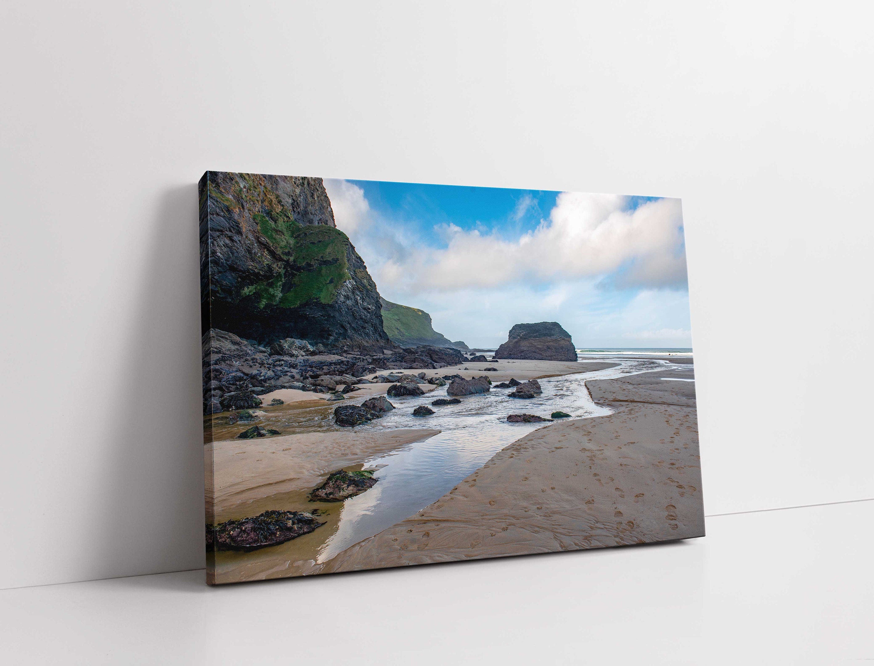 Mawgan Porth Beach at low tide Cornwall. Canvas picture print seascape landscape