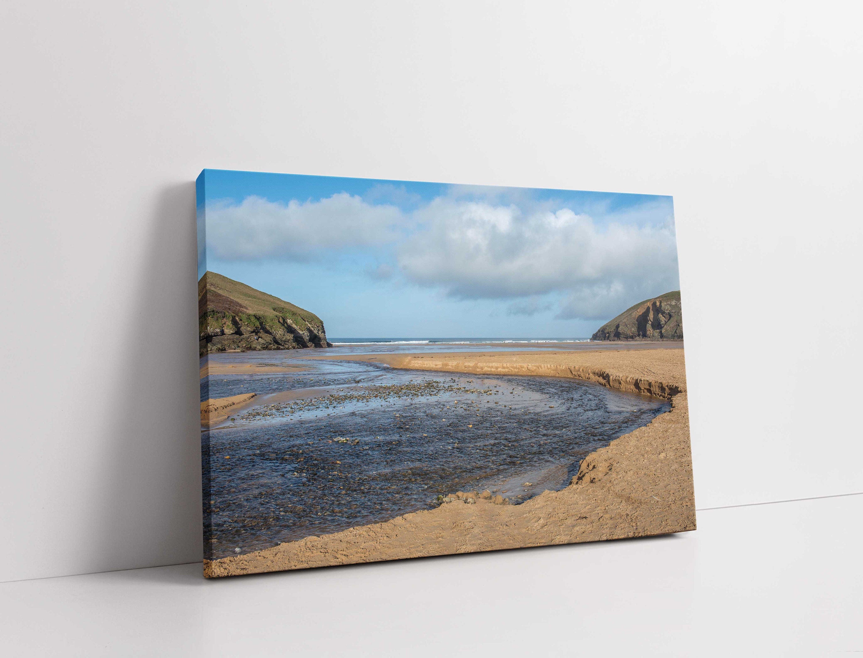 Mawgan Porth Beach low tide canvas picture print beautiful beach near newquay
