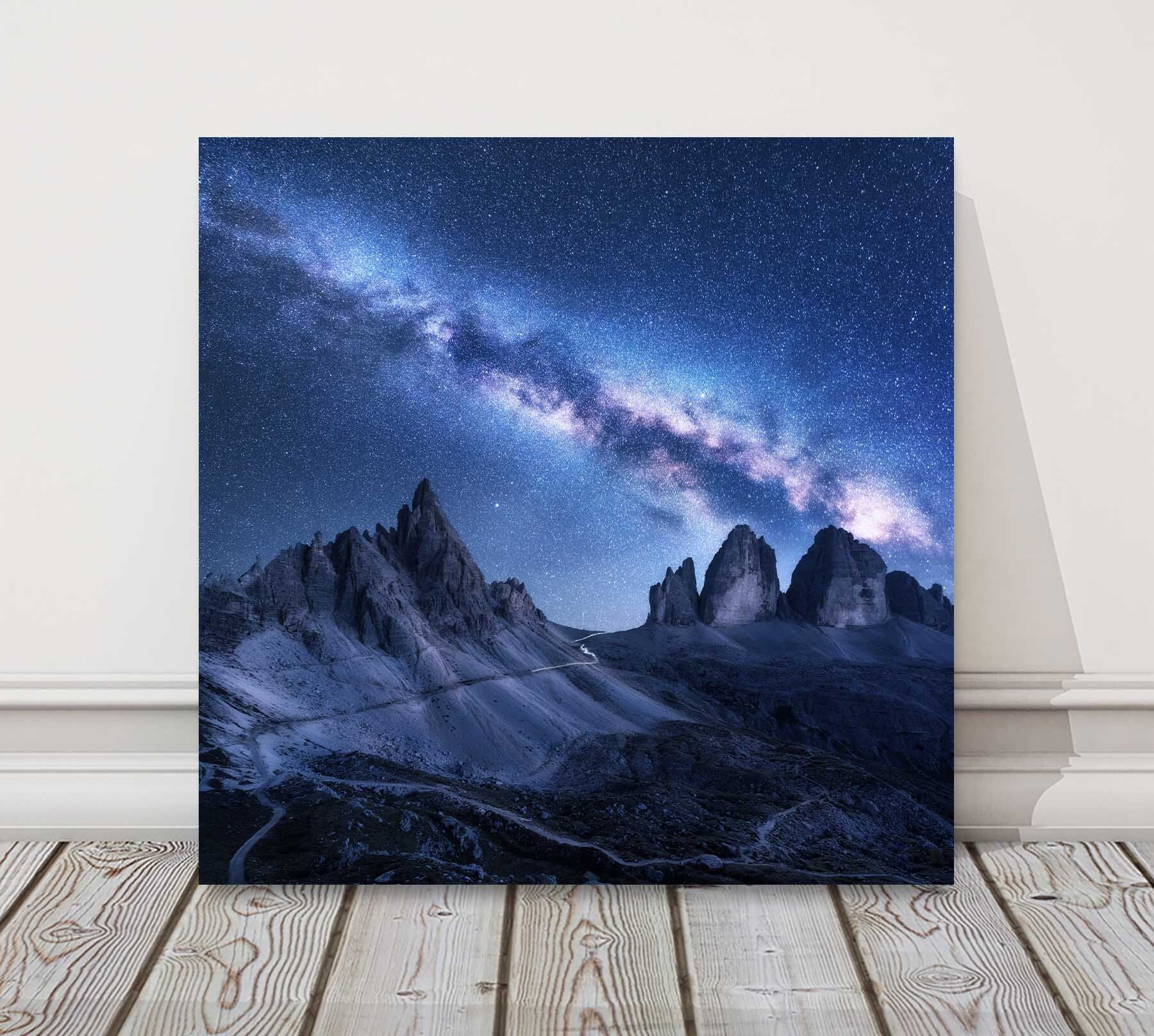Milky Way over the mountains in Dolomites, Italy. Beautiful starry night and stunning scenery. Printed as a canvas picture. A choice of sizes available to order.