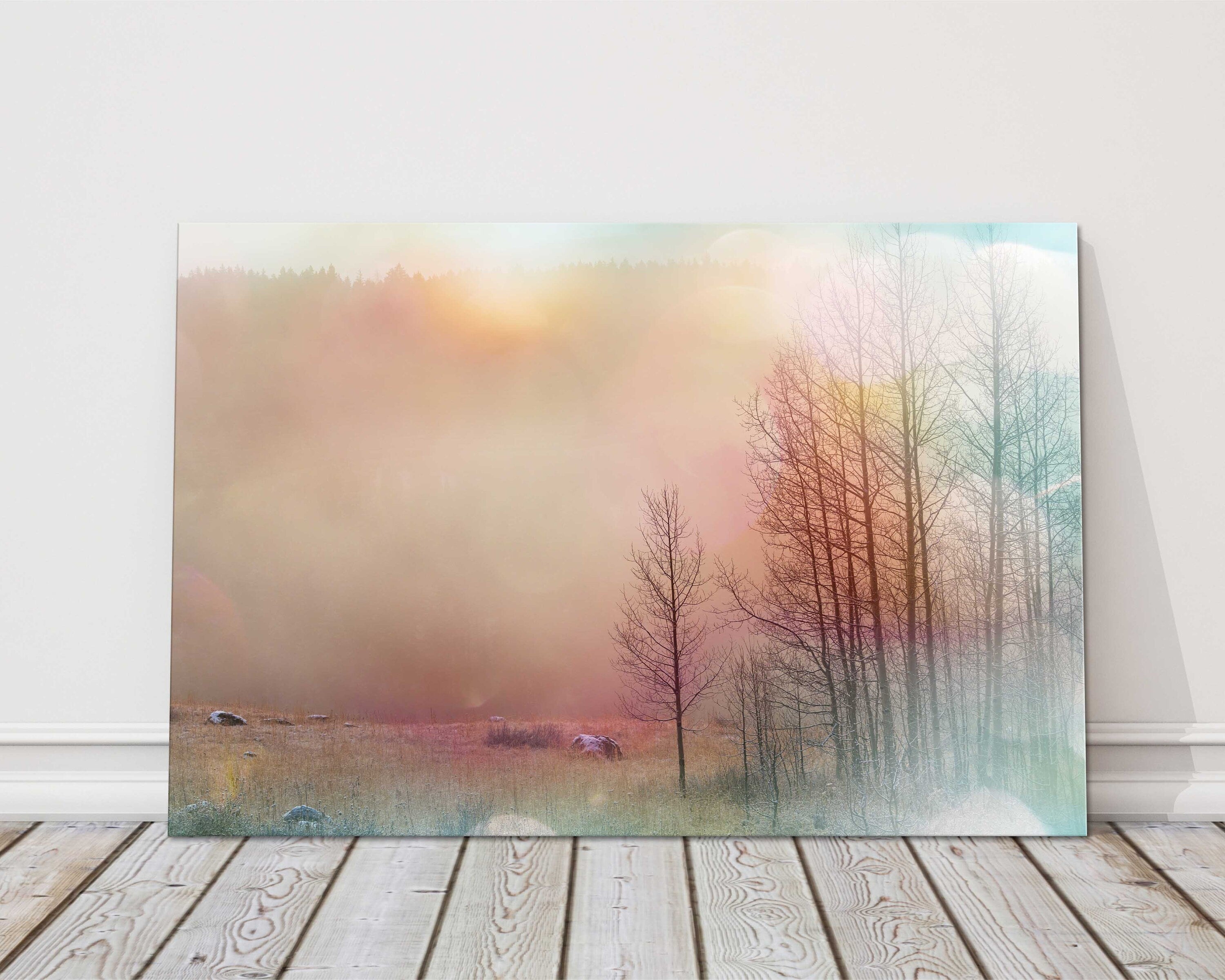 DESCRIPTION Misty forest at sunrise. Beautiful seasonal image, soft colours. Available in a choice of sizes. Ideal for any home... Read more