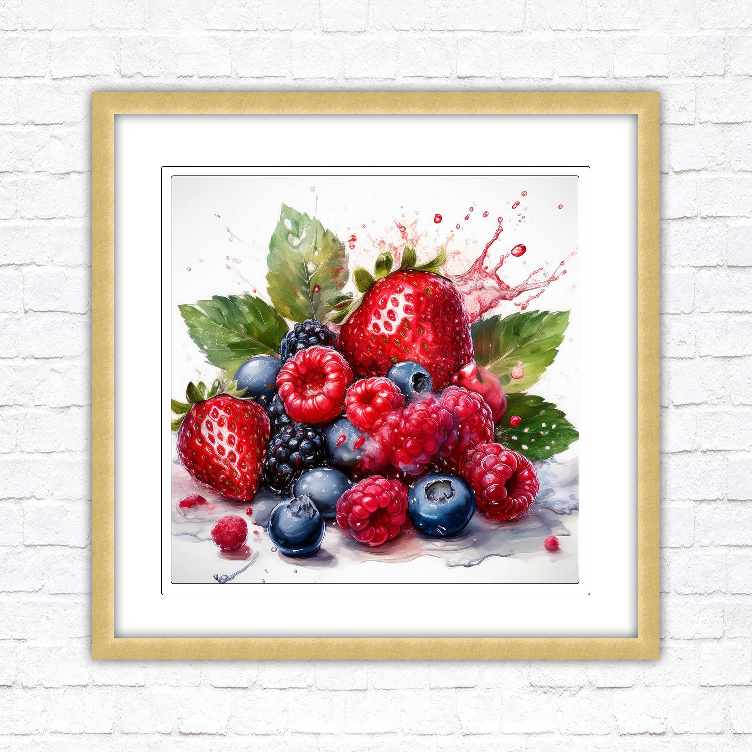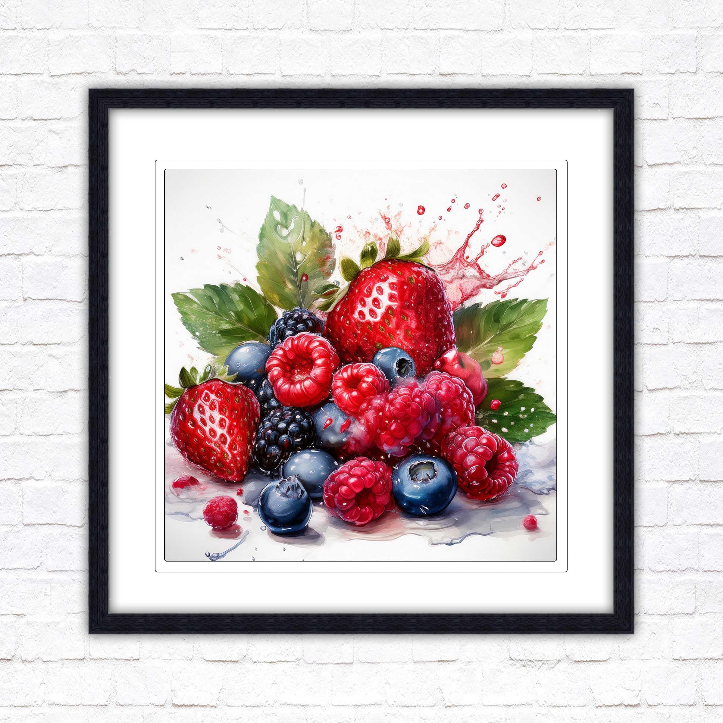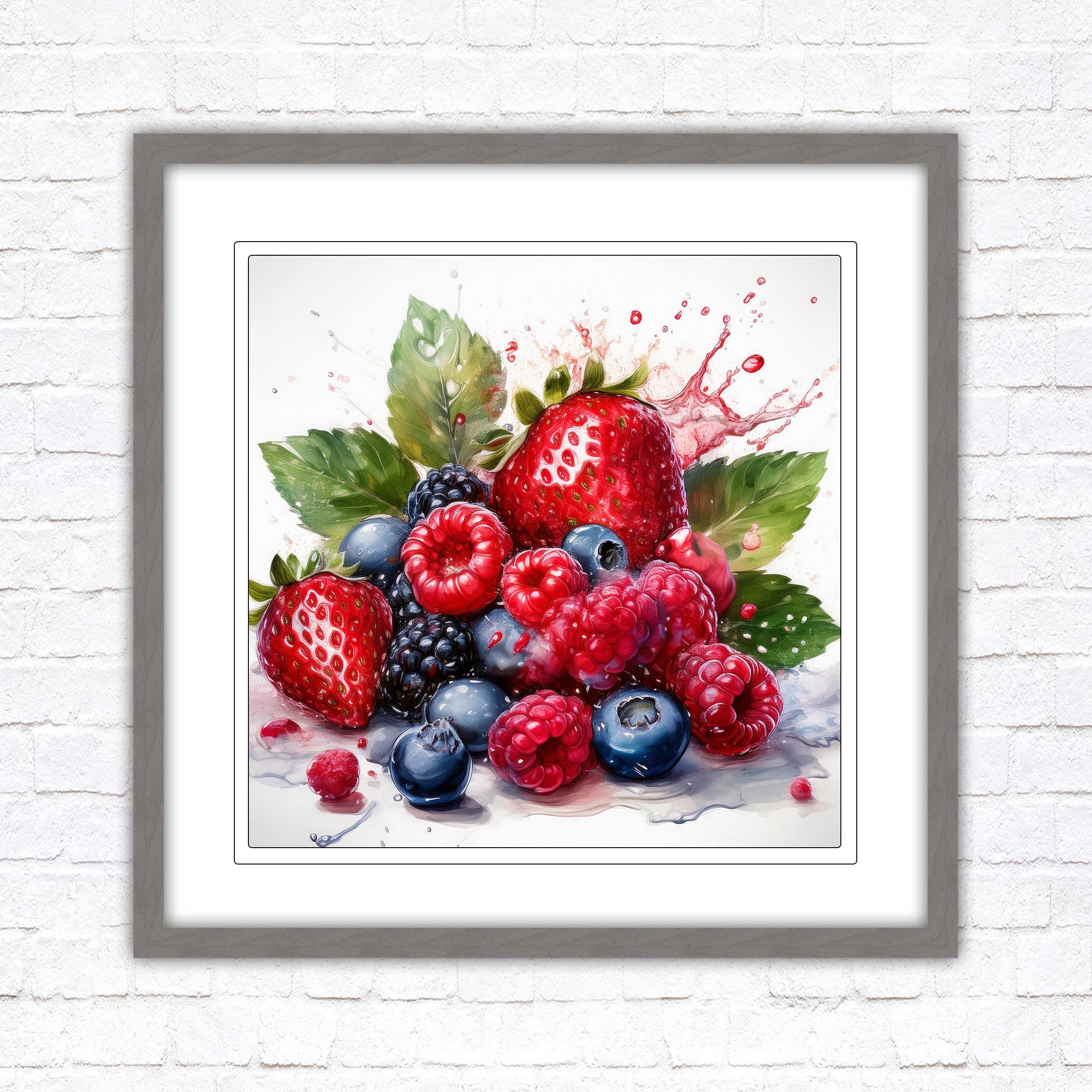 Mixed Berries Fresh fruit Watercolour painting, Framed picture print. Choose from a choice of frame styles and sizes.