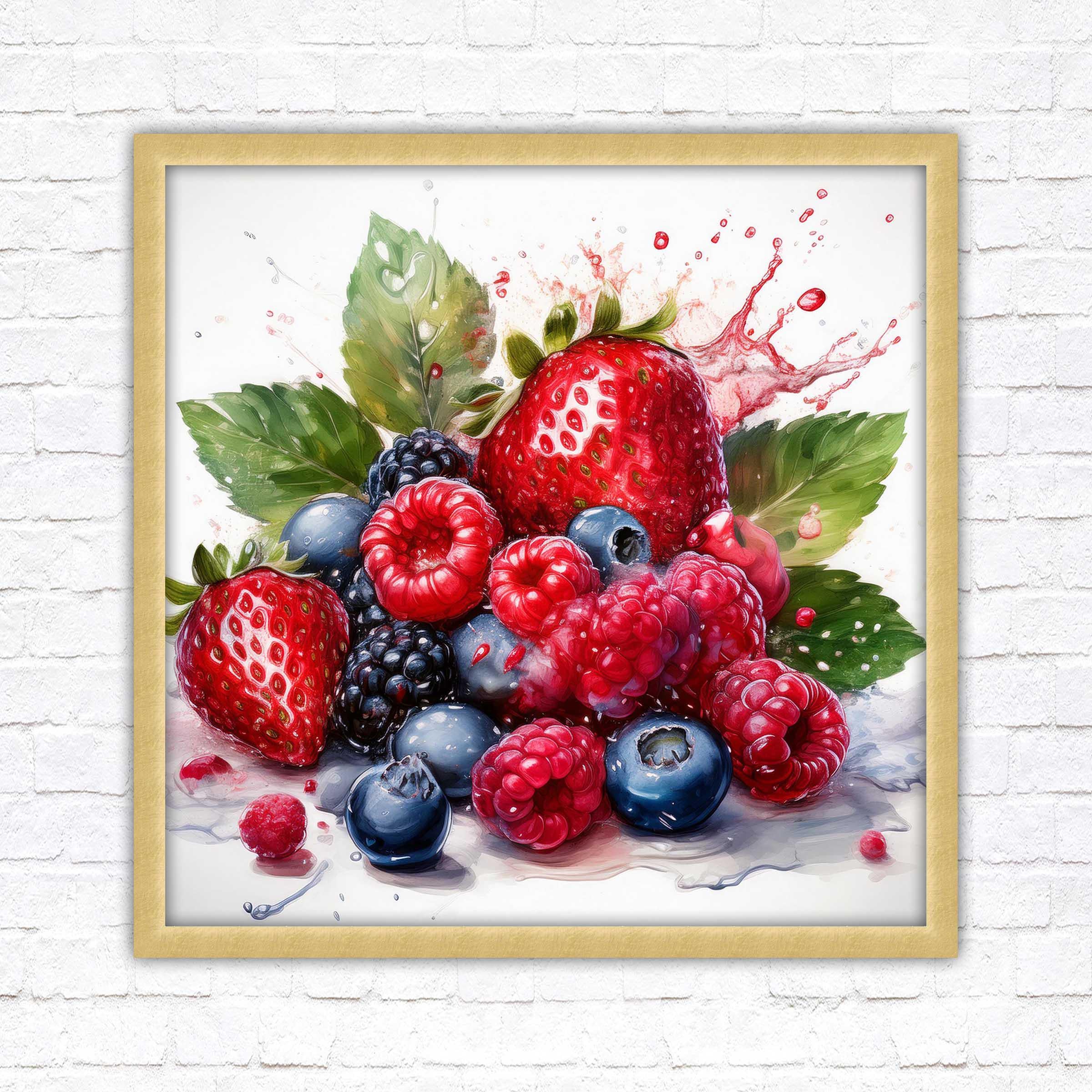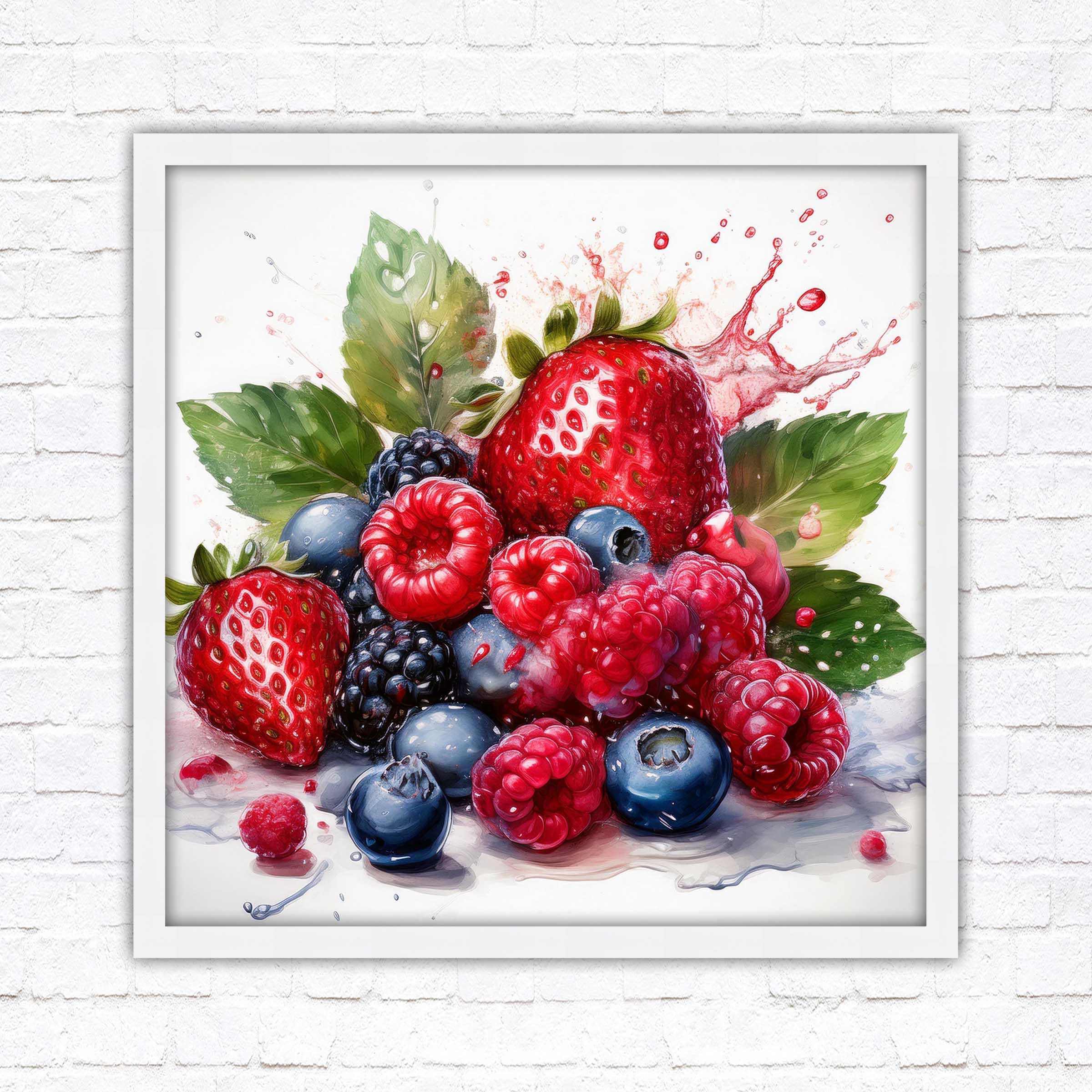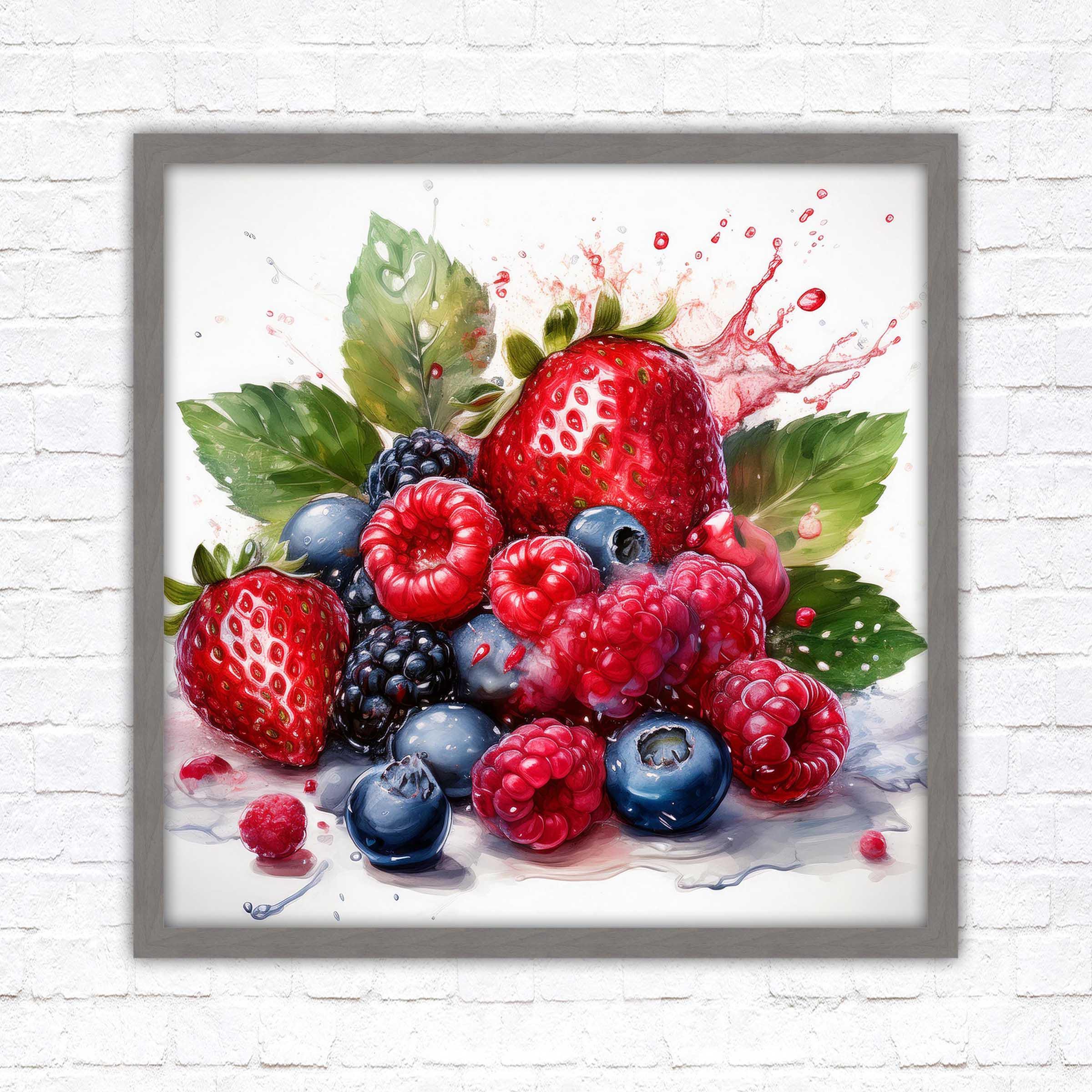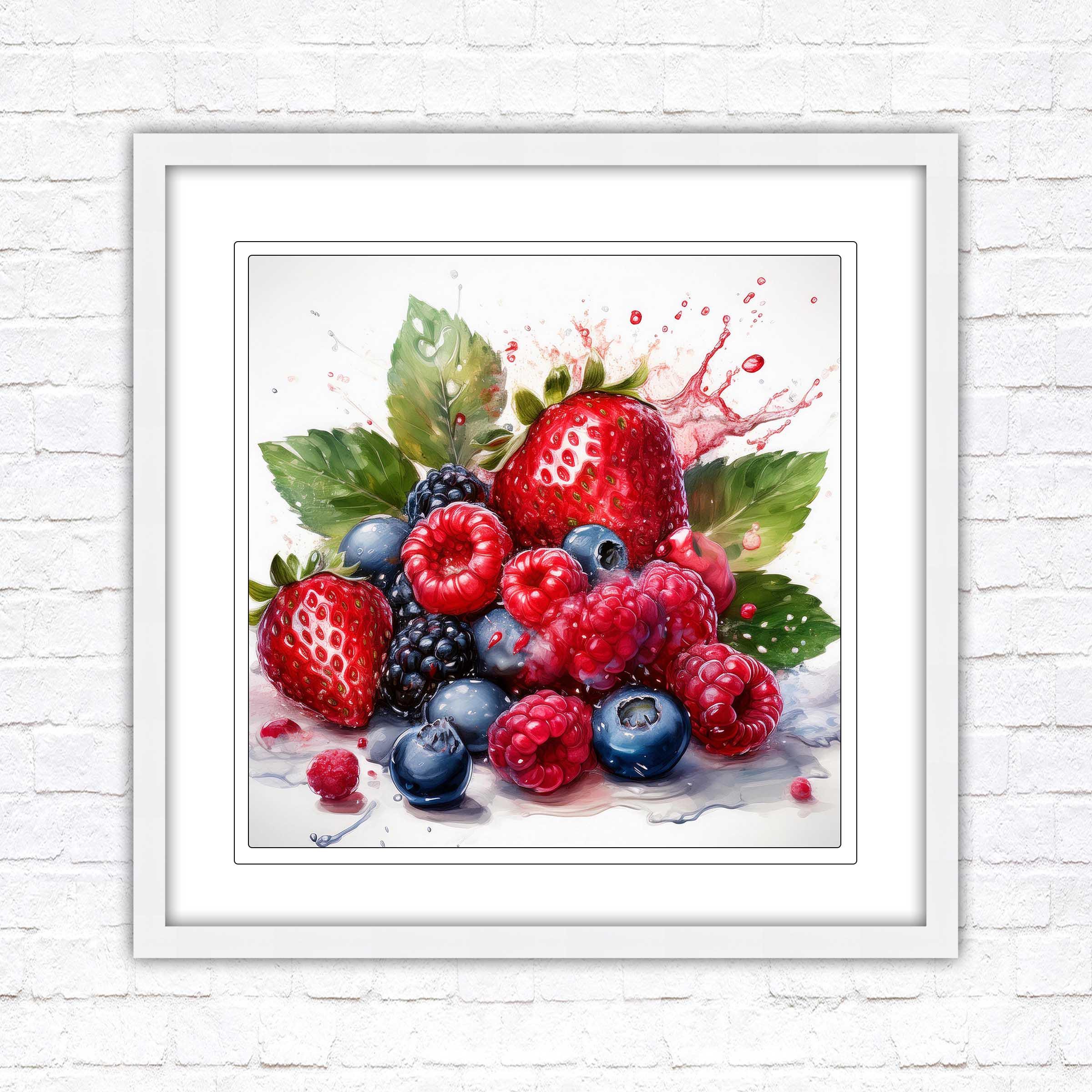 Mixed Berries Fresh fruit Watercolour painting, Framed picture print. Choose from a choice of frame styles and sizes.