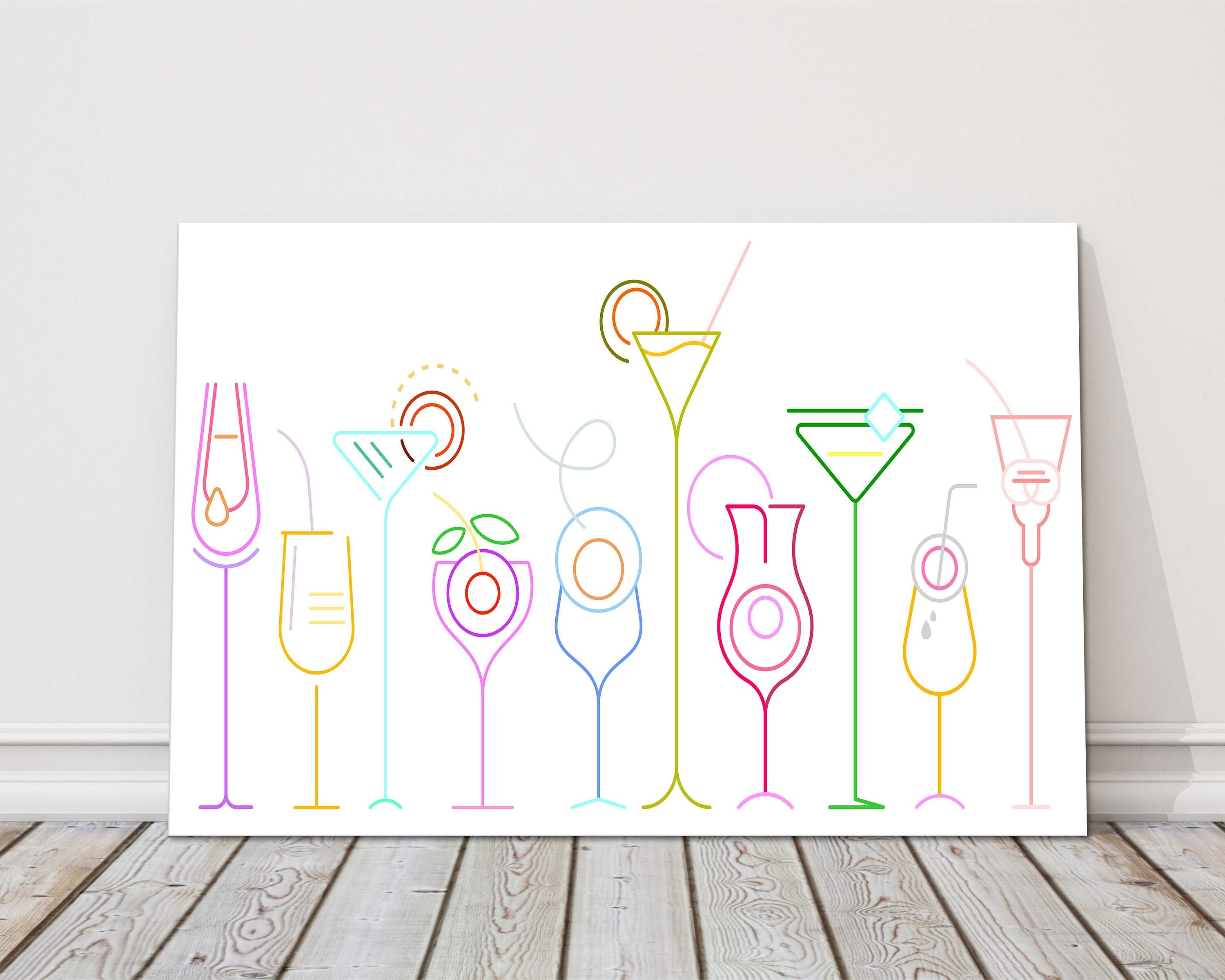 DESCRIPTION Cocktail glasses, colourful line drawings. Modern wall art in soft colours. Canvas picture printed and framed as a canvas... Read more