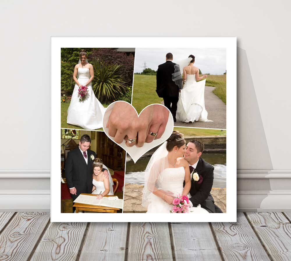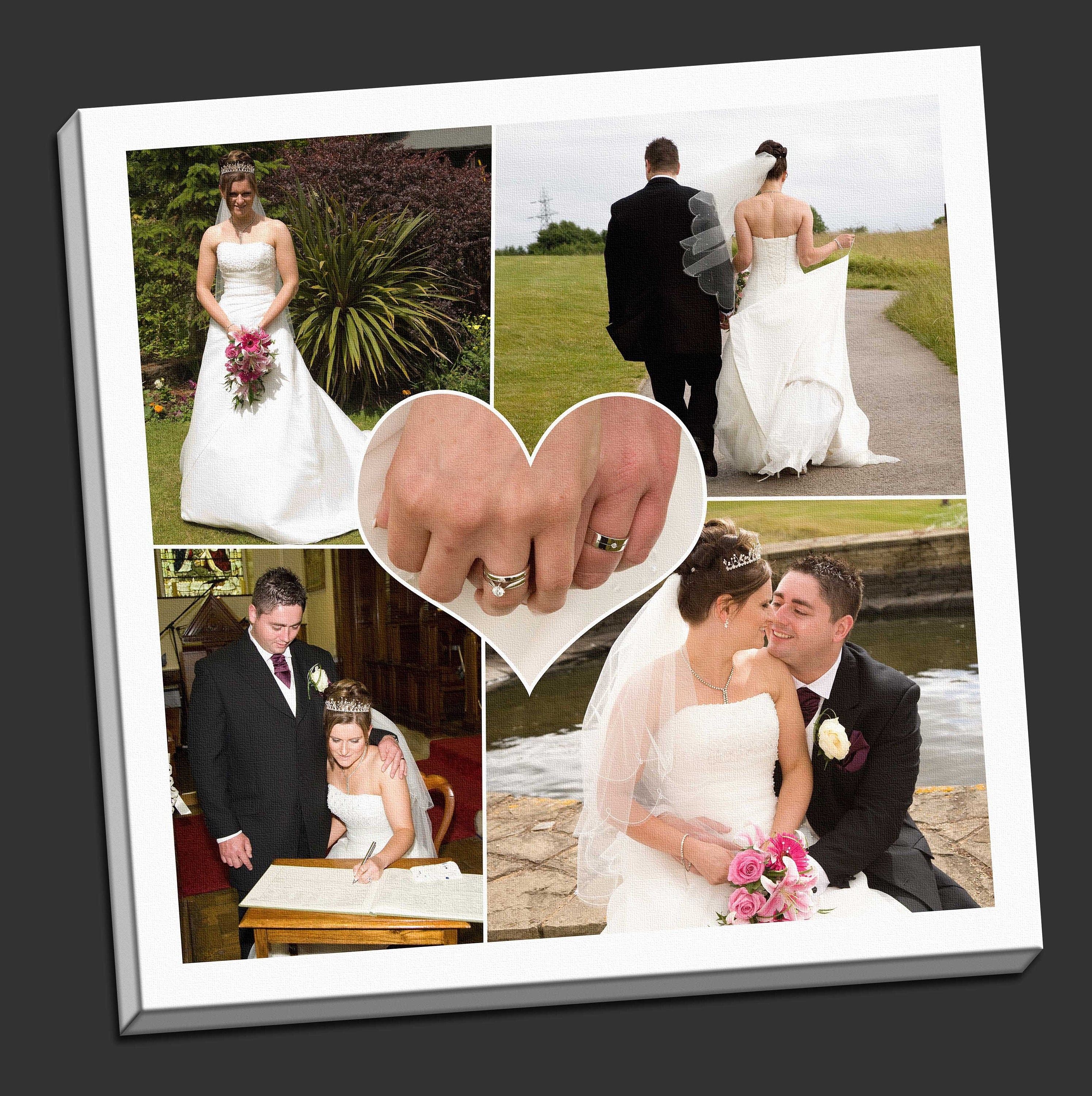 Beautiful collage canvas picture. Send 5 of your favourite pictures to be displayed in a lovely collage as on the example picture. A preview is sent via email before printing. Lovely gift for weddings, births. anniversaries.