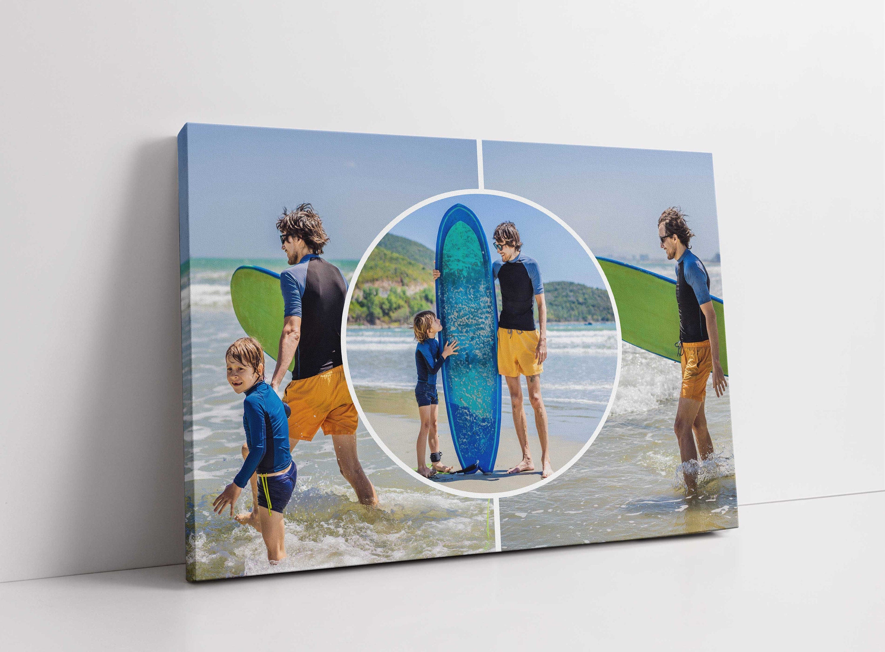 DESCRIPTION Create your own 3 picture collage. Special memories designed into wall art. Perfect as a gift for someone special. Choose from a great selection of sizes from 14" x 10" to 44" x 30". Using specialised software online simply upload your pictures into the boxes and arranged to your liking. Pictures can be positioned exactly as you wish in any order you like. Very easy to do, no need to follow processes for transferring photos. Just upload your pictures using our unique software, resulting in a faster service for a personalised canvas. Once you are happy with your design just click the GREEN 'ORDER' button and this will send your canvas to be printed. CHECKOUT OUR ONLINE DESIGNER HERE: https://designer.antigro.com/en/init/elegantecustomgifts-magnes-one (Design your canvas online and place your order via etsy to receive the finished canvas) Your personalised canvas will be printed on one of your high end production HP printers. Superb quality, vibrant colour matched prints. We carefully source our materials for a high quality finished canvas - just checkout our reviews!