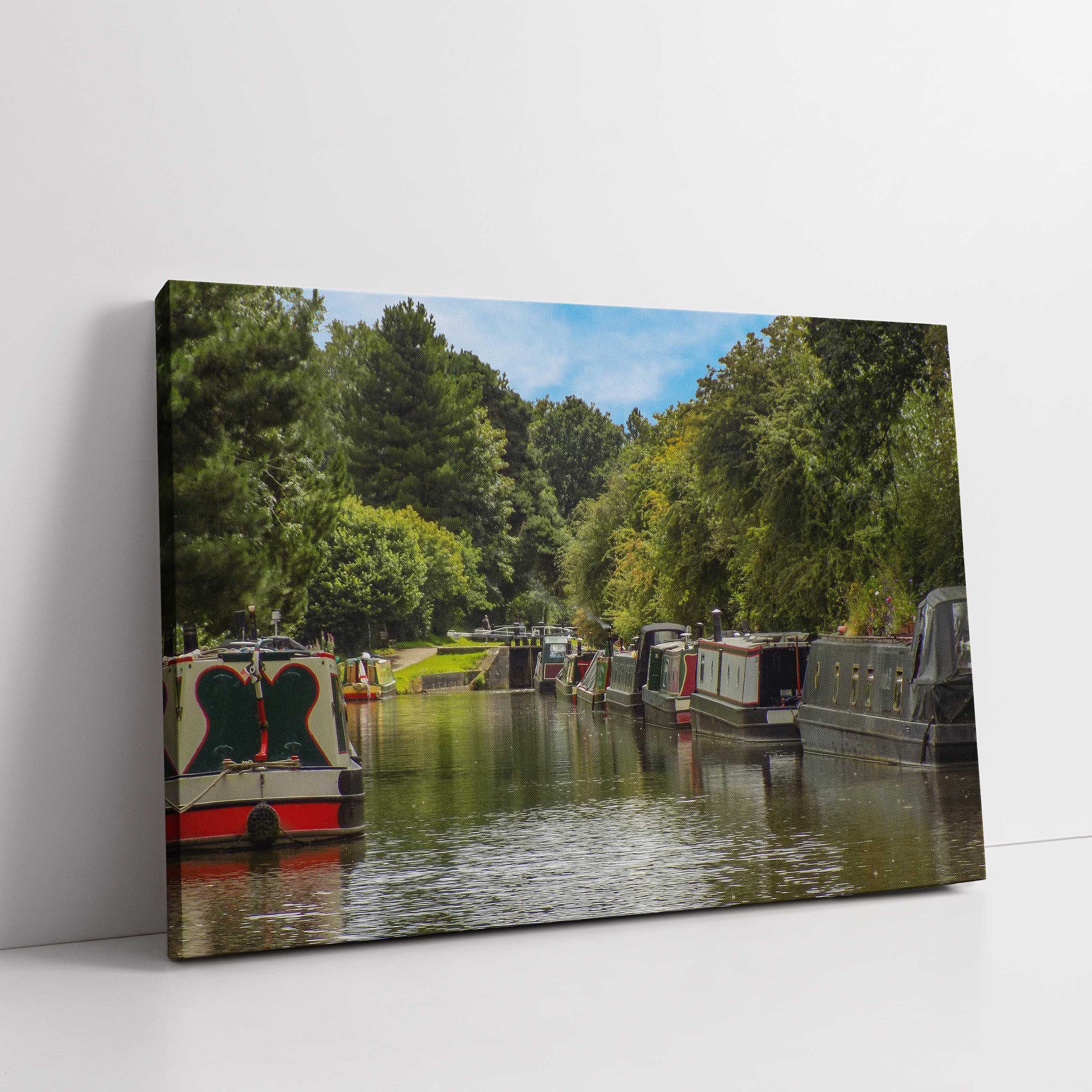 DESCRIPTION Narrowboats on the canal. Cheshire countryside. Picture printed and framed as a canvas print. Beautiful landscape image. Available in... Read more