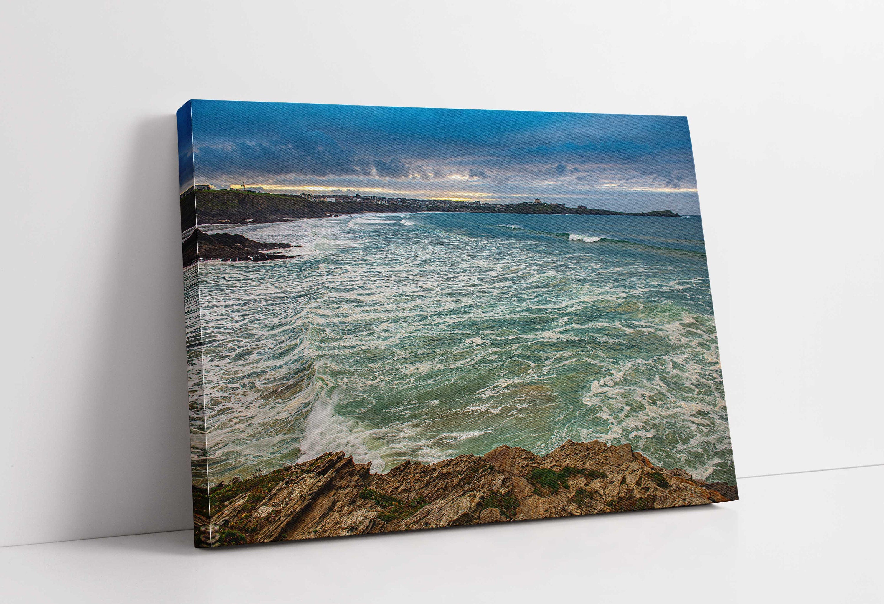 A beautiful landscape canvas picture of Newquay Bay, North Cornwall. View from Porth Island. Available to order in a choice of sizes.