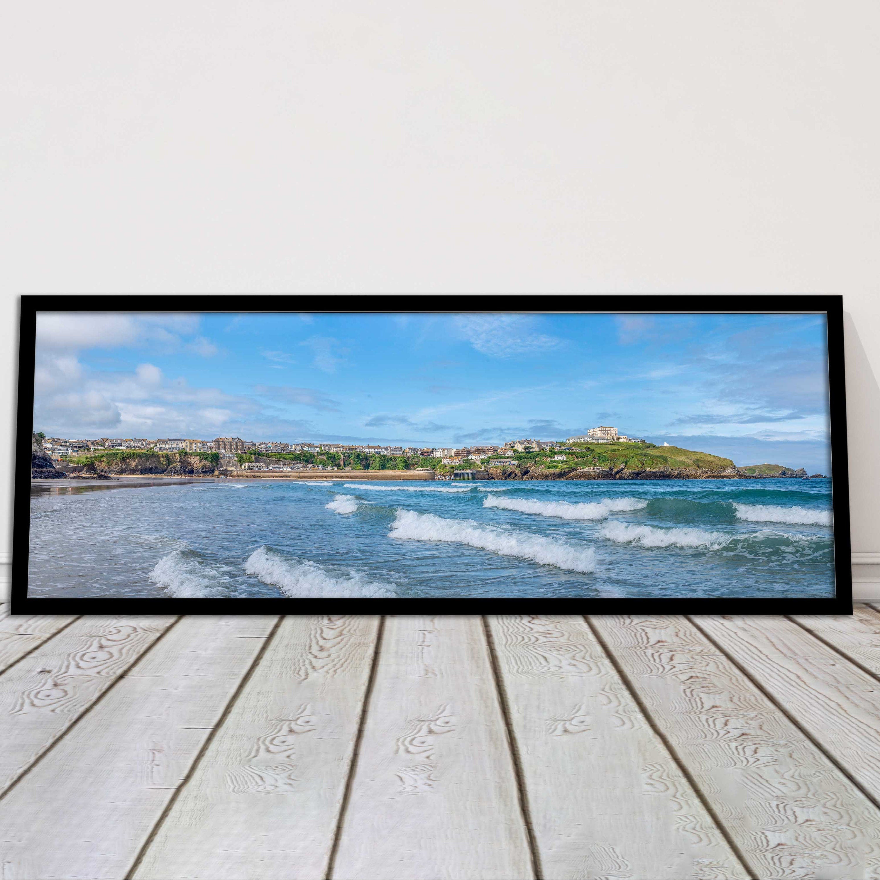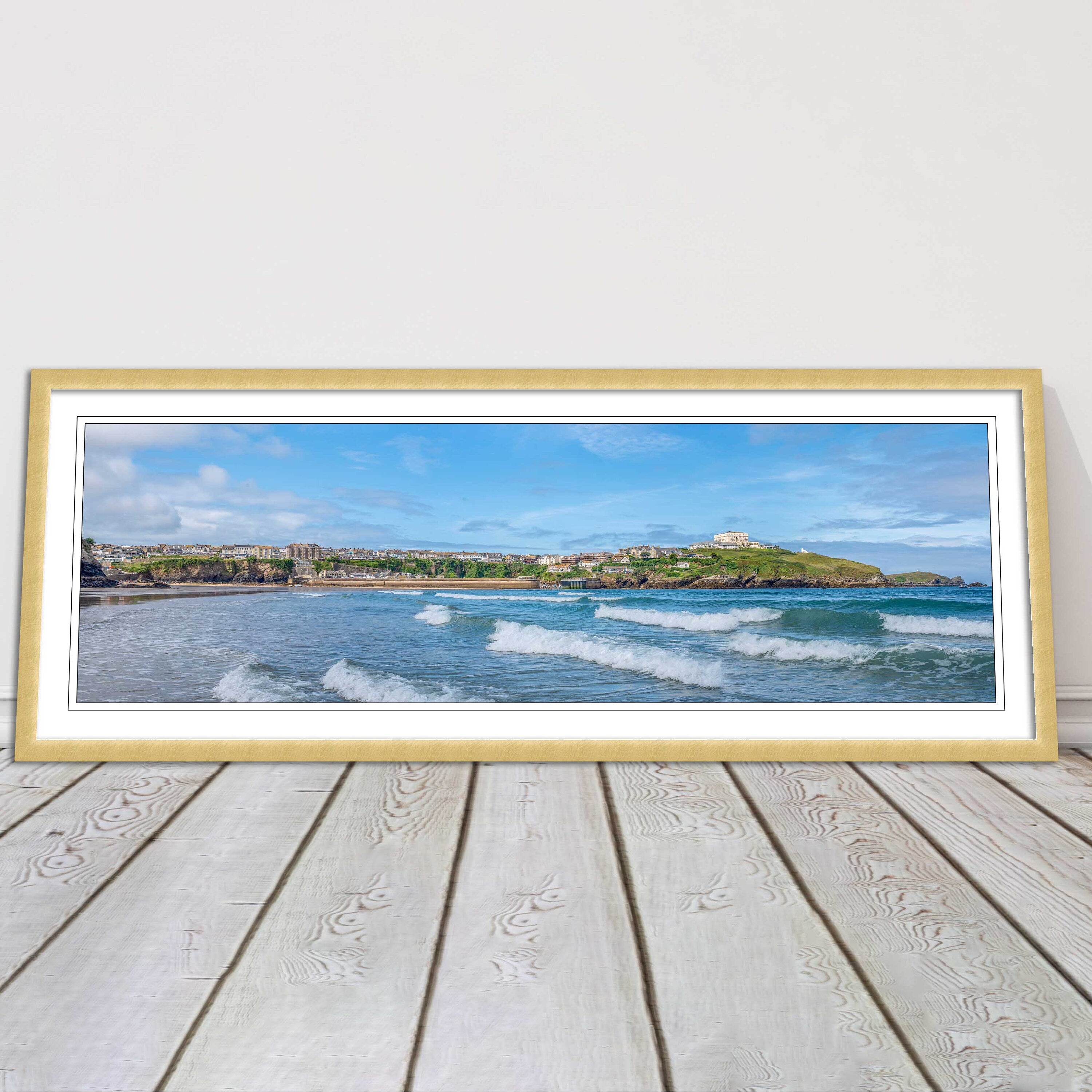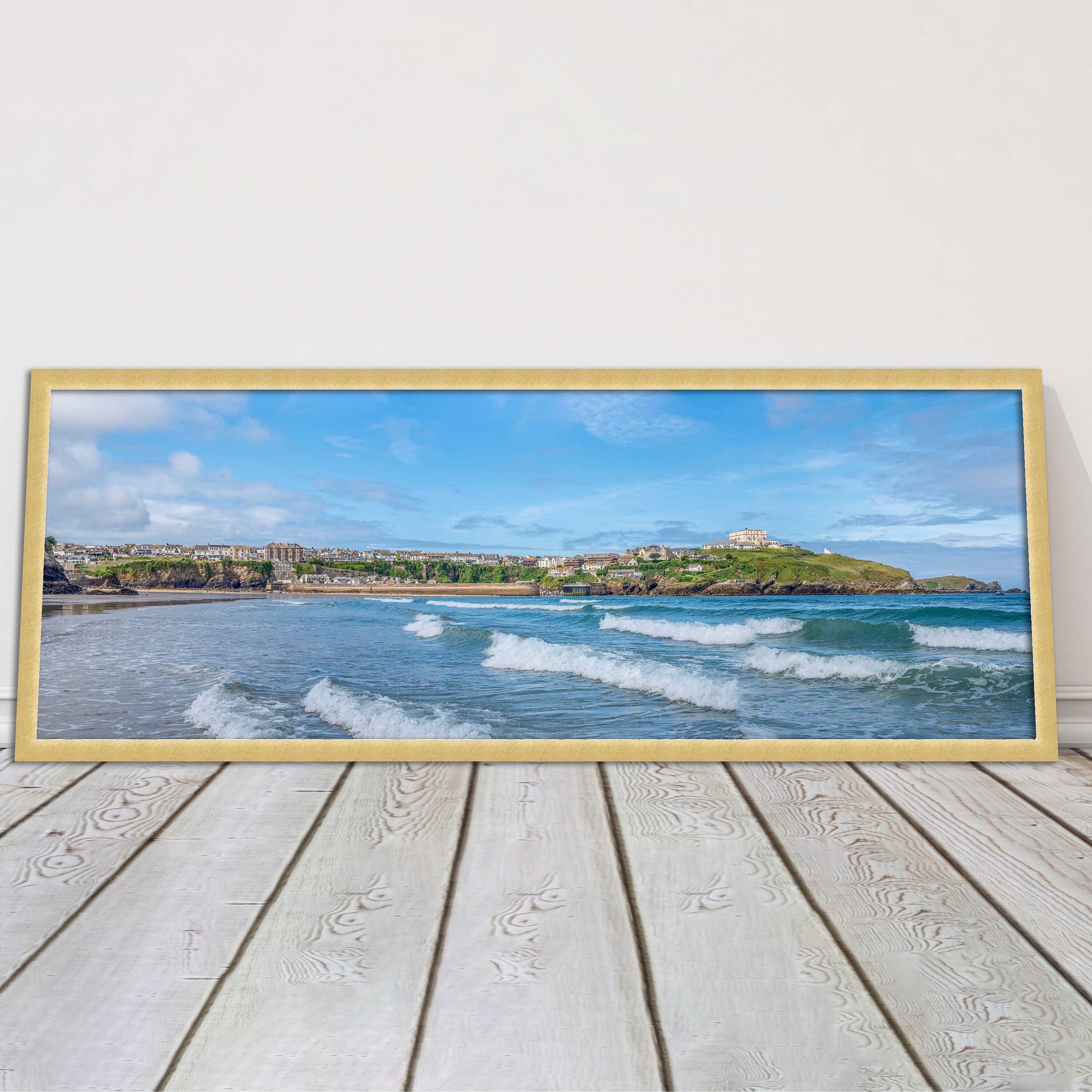 A beautiful panoramic framed picture of Newquay Bay, North Cornwall. A choice of frames available.