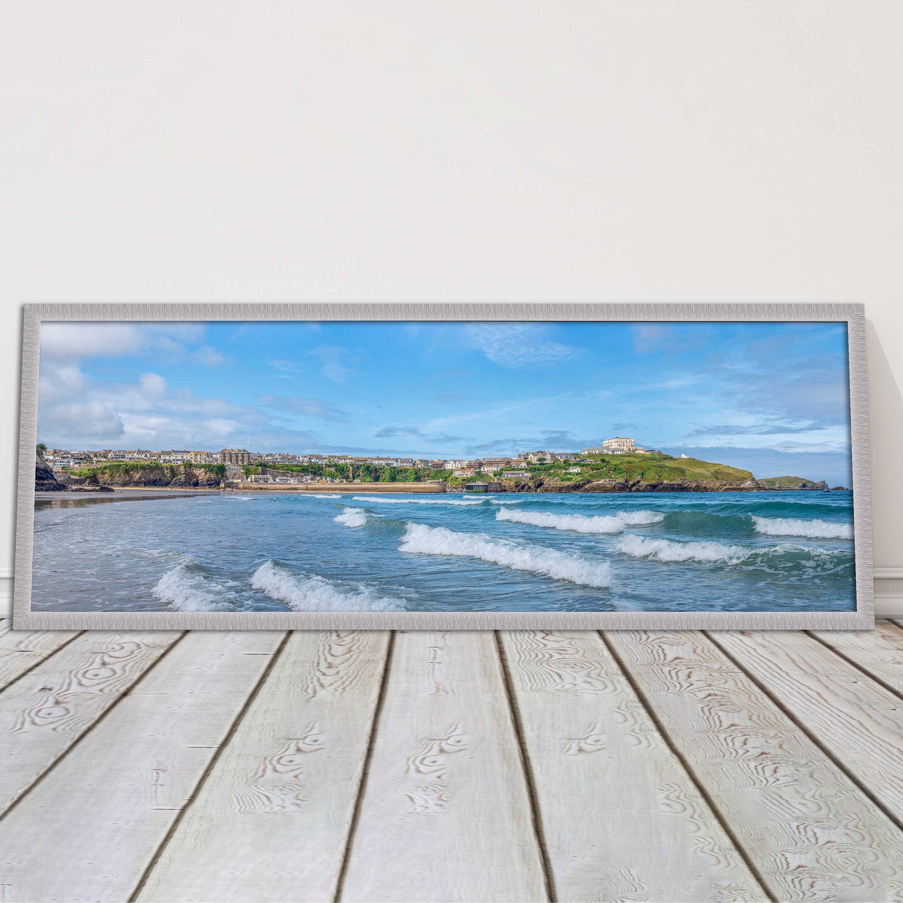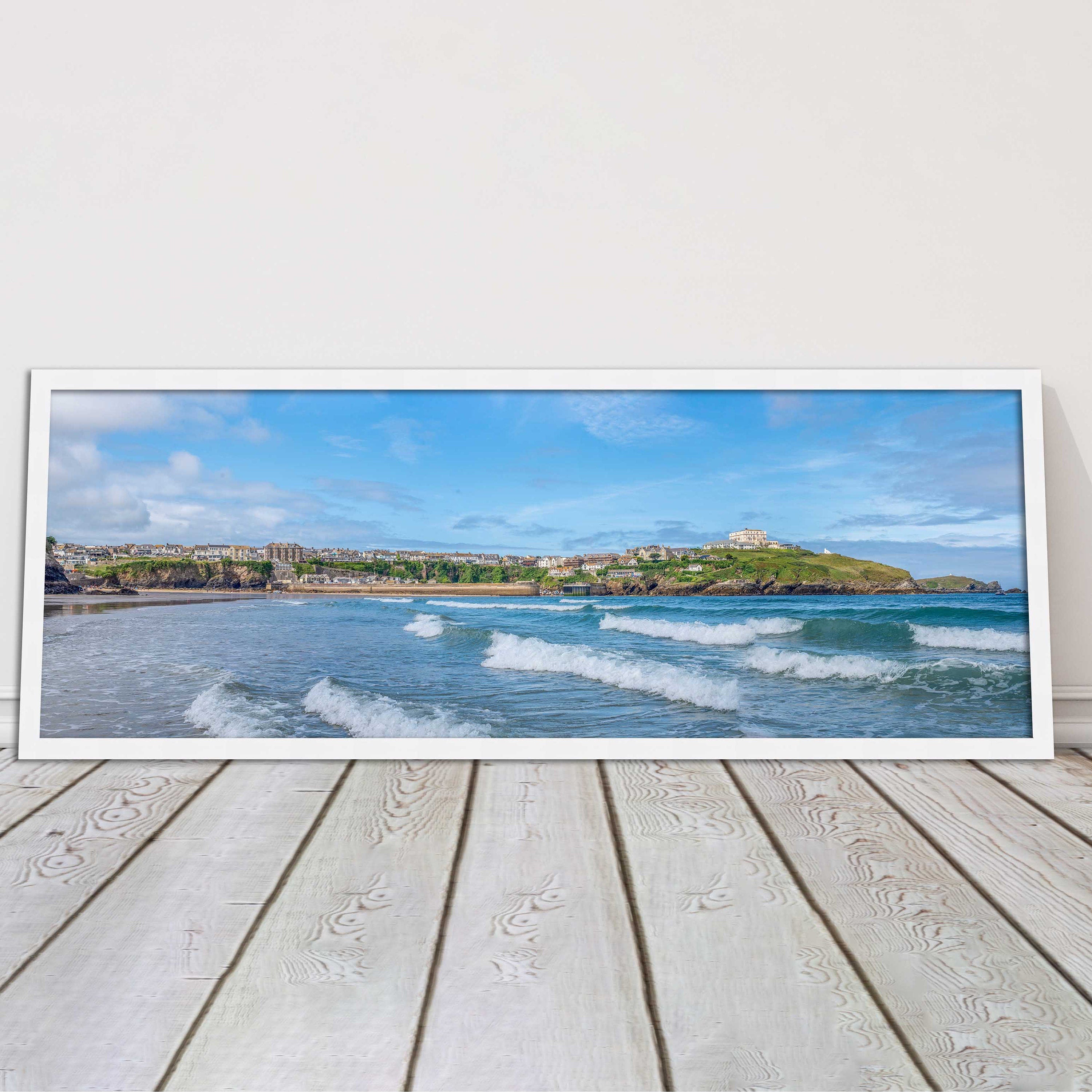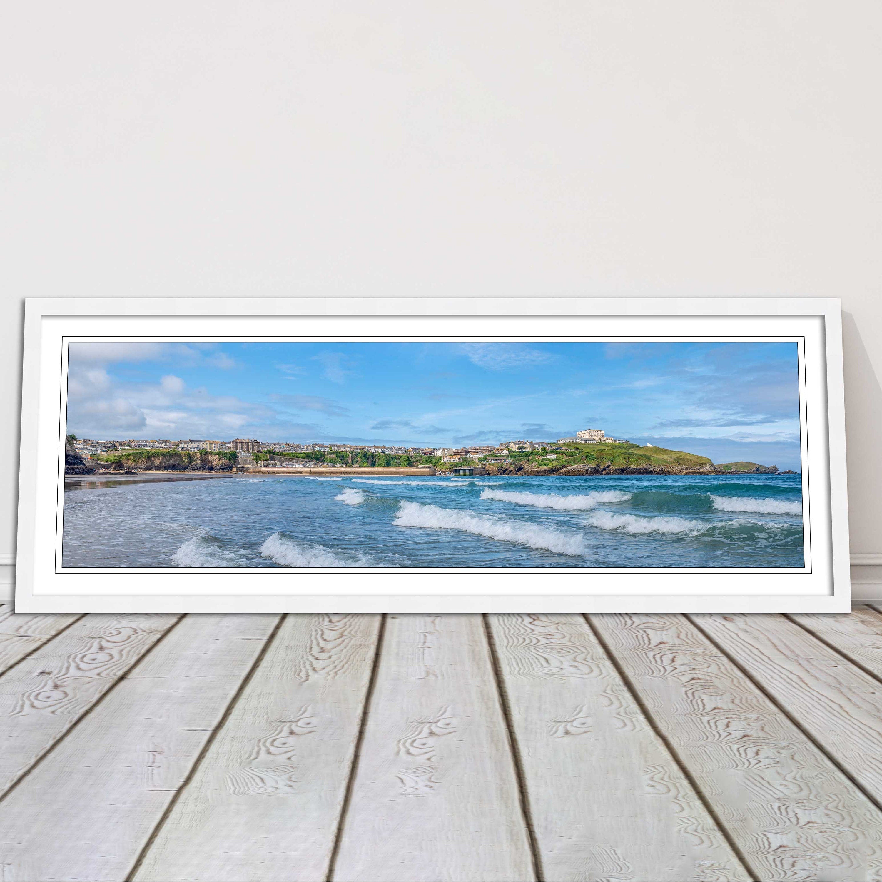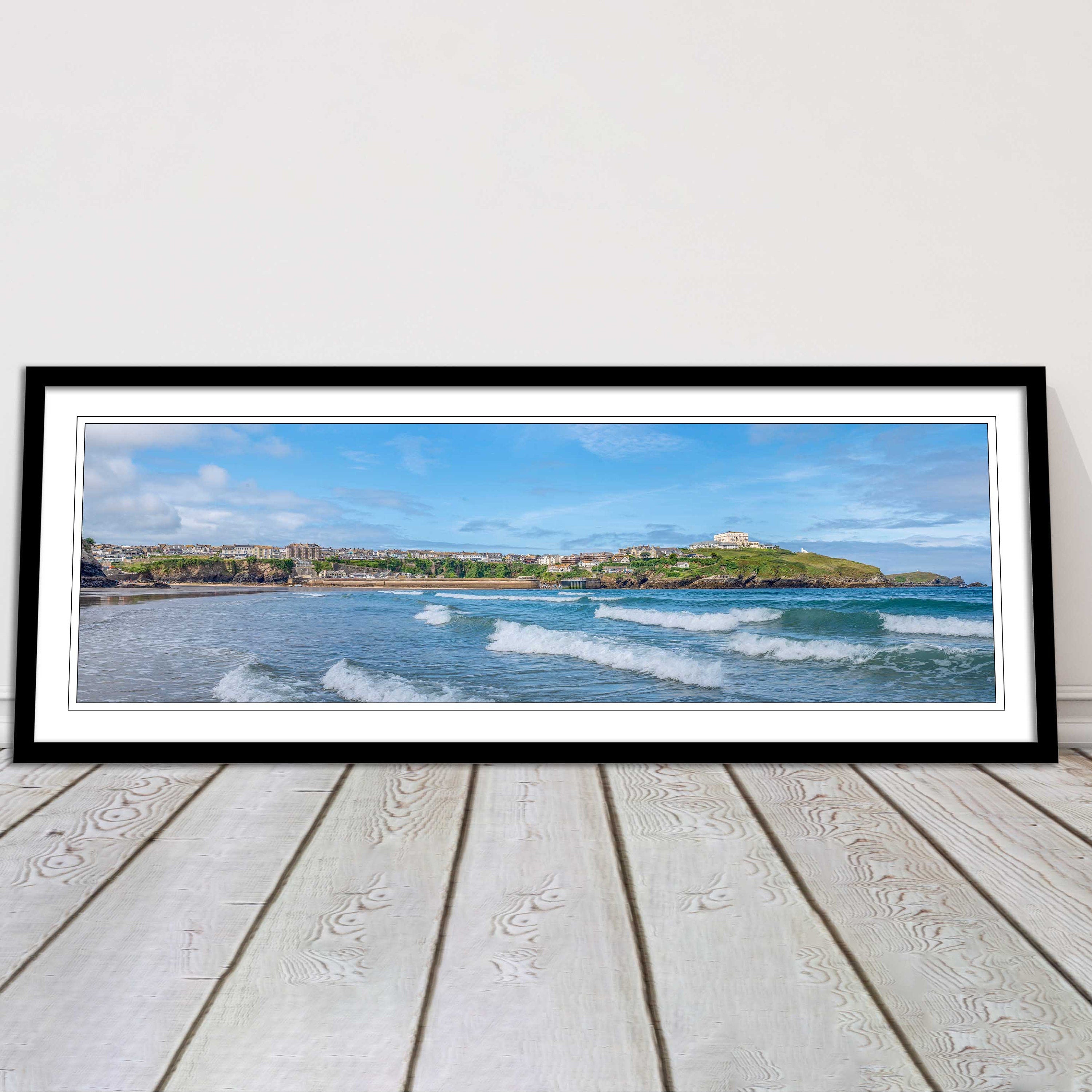 A beautiful panoramic framed picture of Newquay Bay, North Cornwall. A choice of frames available.