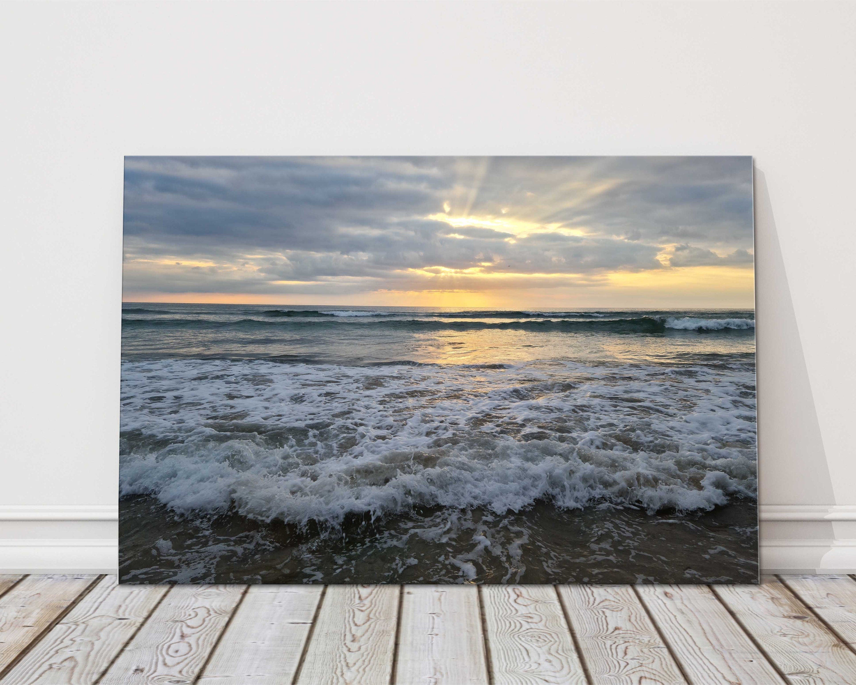 Ocean waves at sunset taken at mawgan porth cornwall canvas picture print