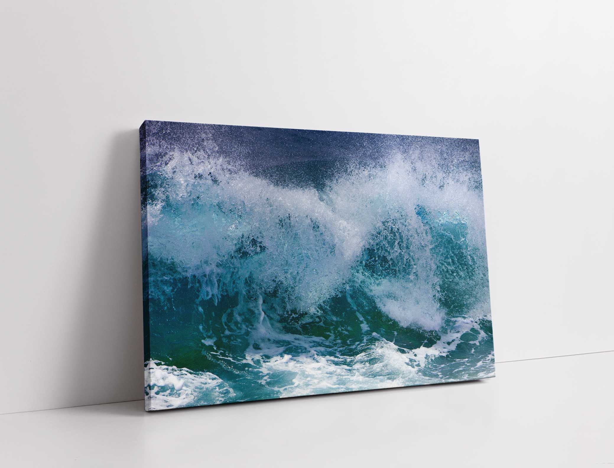 DESCRIPTION A beautiful landscape of crashing waves QUALITY All orders are made at the time of purchase. We offer a range of popular sizes on the advert but if you are looking for something a little different just send us a message and I am sure we can help. Our materials are carefully sourced from suppliers here in the UK. We only choose quality pine canvas stretcher bars and print on to a bright white textured canvas We use some of the latest printers available on the market today from hewlett packard. The results are superb with vibrant colours and long lasting vibrant inks quaranteed not to fade Each canvas is professionally hand stretched around the pine frame, stapled and taped at the rear giving a nice clean finish. SATISFACTION GUARANTEED We are a small business and only make quality products so our return policy is simple, if you are not completely satisfied with your canvas when it arrives just return it to us for a full refund.