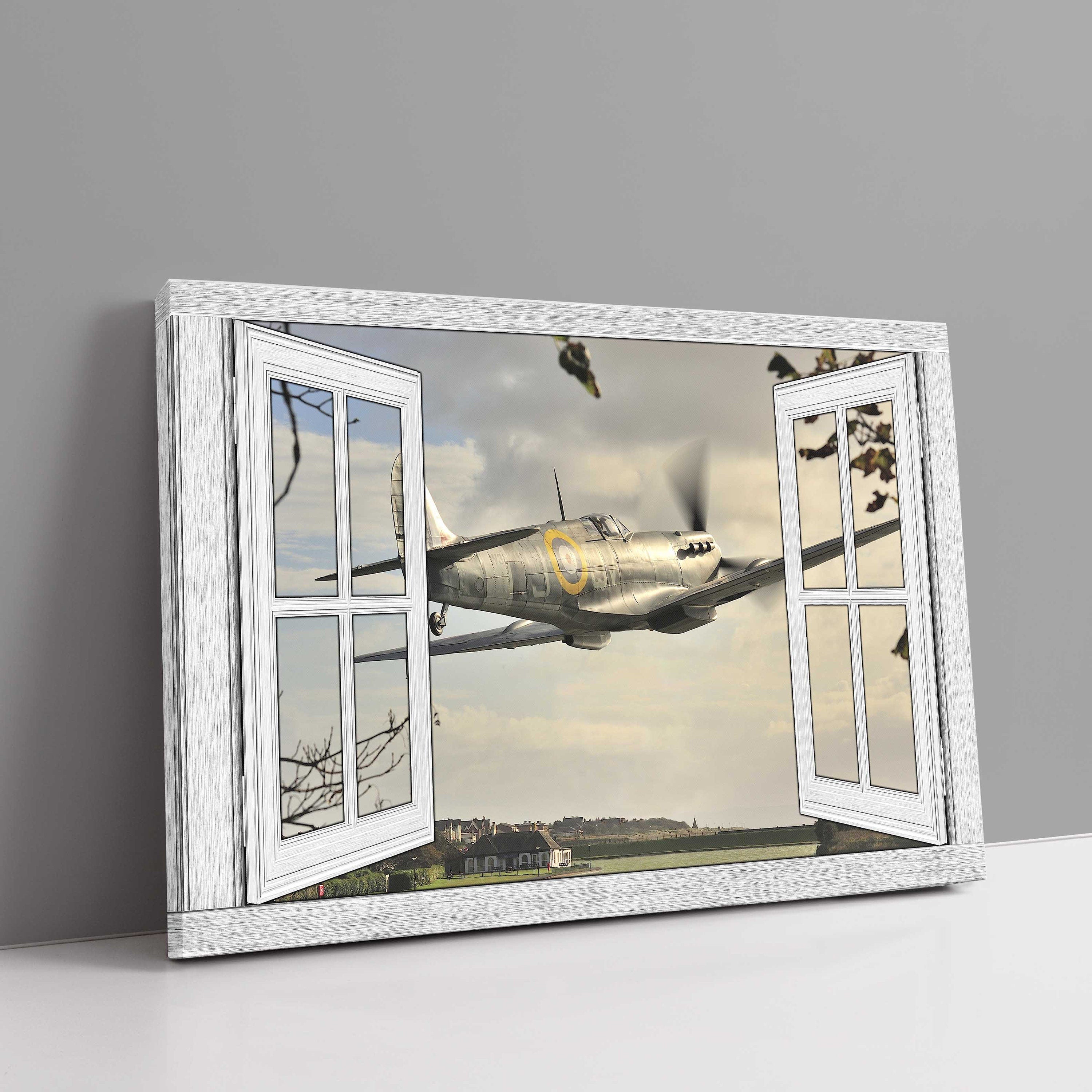 Window frame style Canvas picture. Spitfire flying low over land. Printed and framed as a canvas print. Ideal gift. Made... Read more