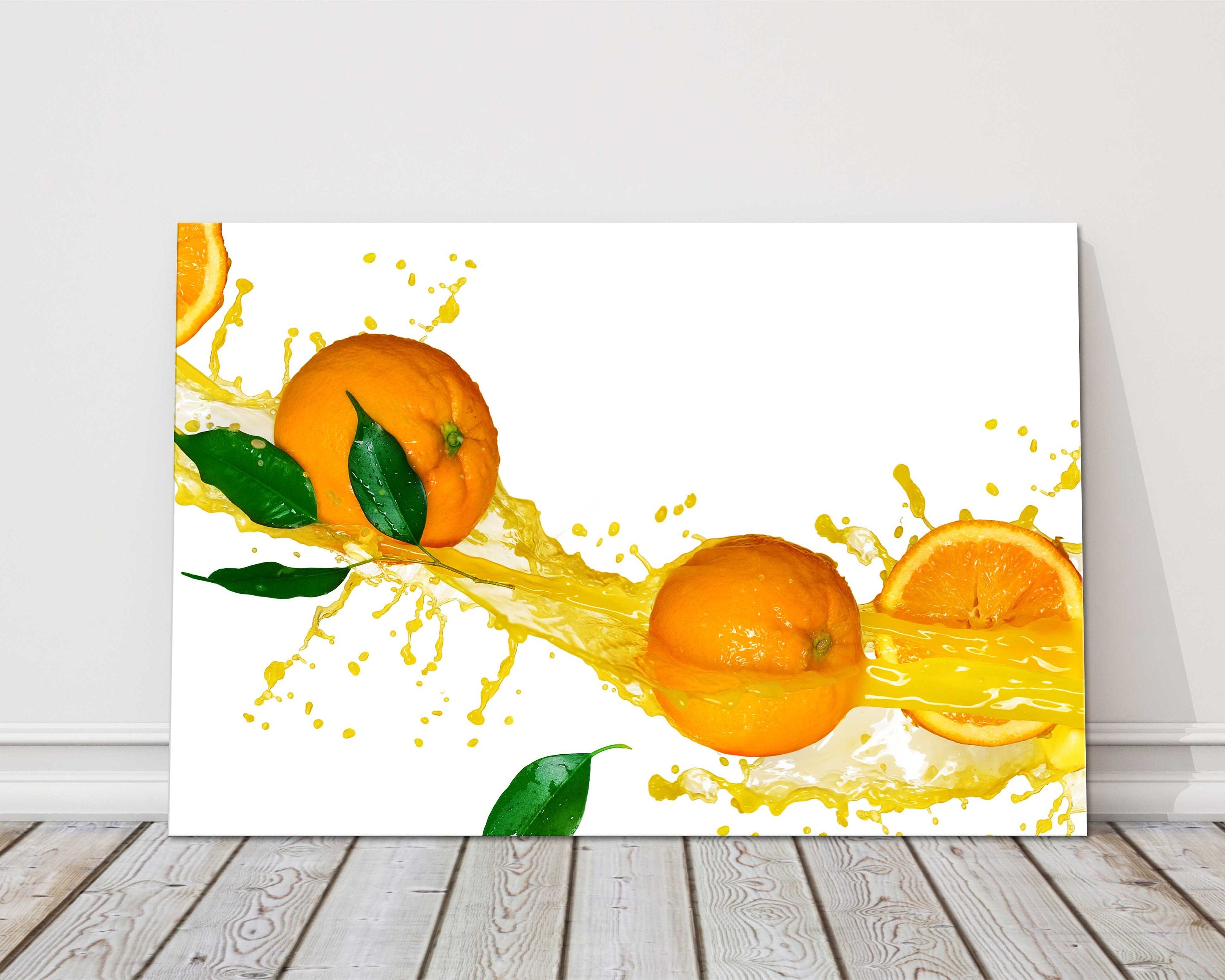 Orange juice splashing on white background, canvas picture printed and framed as a canvas print Made using UK sourced pine... Read more