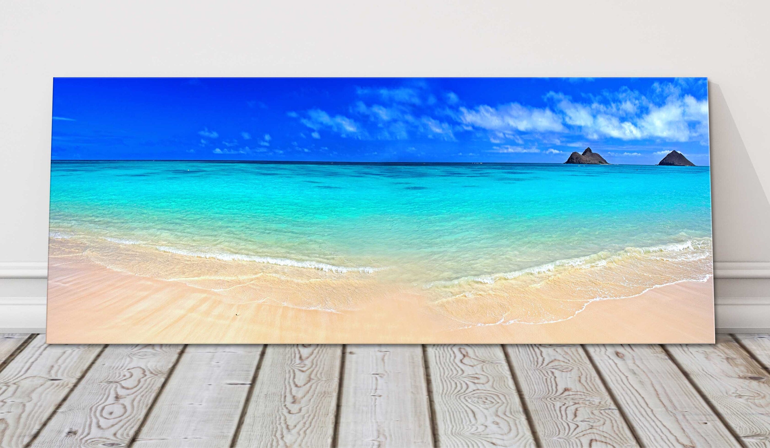 A beautiful panoramic picture of a Tropical dream beach. Vibrant ocean colours. Seascape. Beautiful calm blue waters.