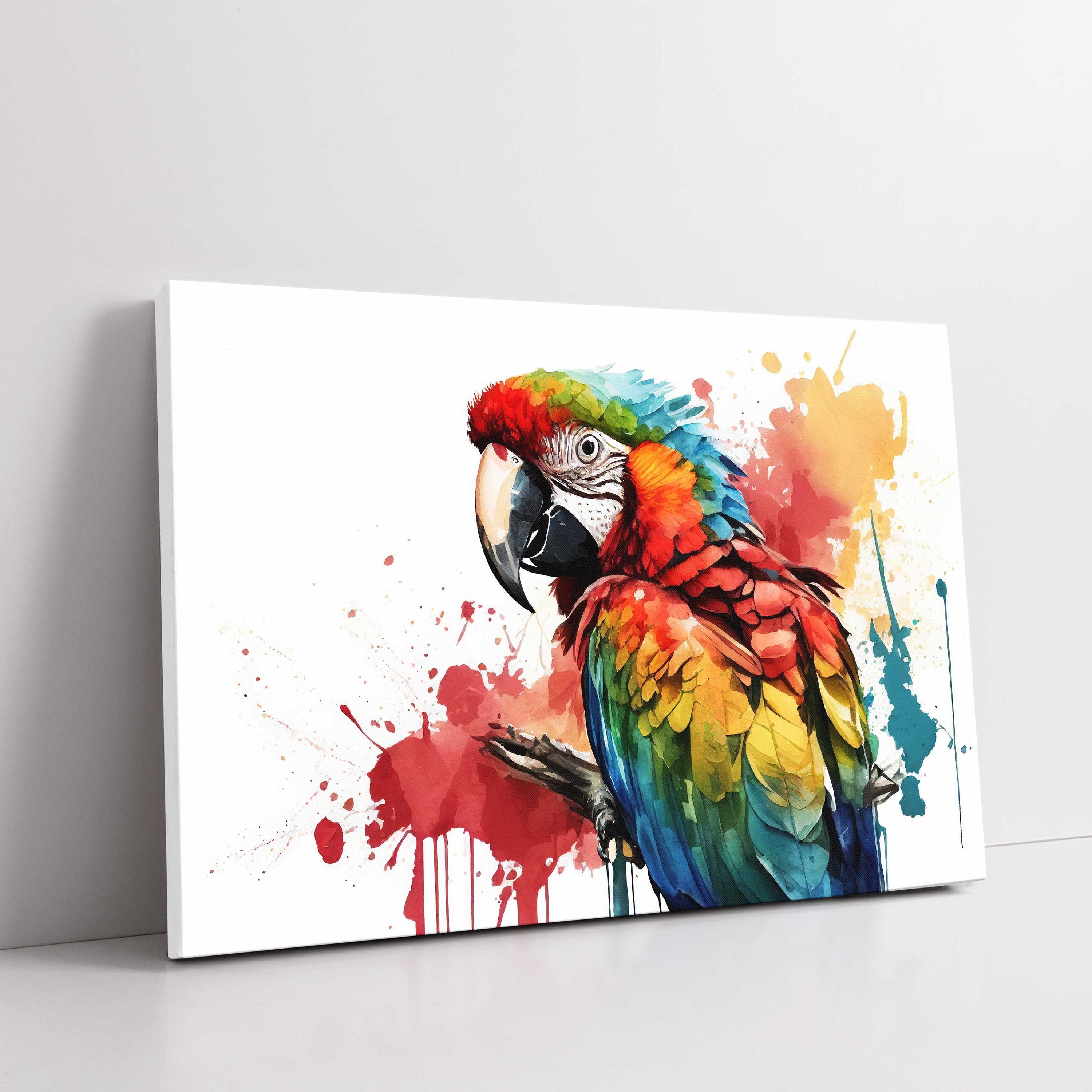Parrot in watercolour, Printed canvas picture. Choice of sizes available.