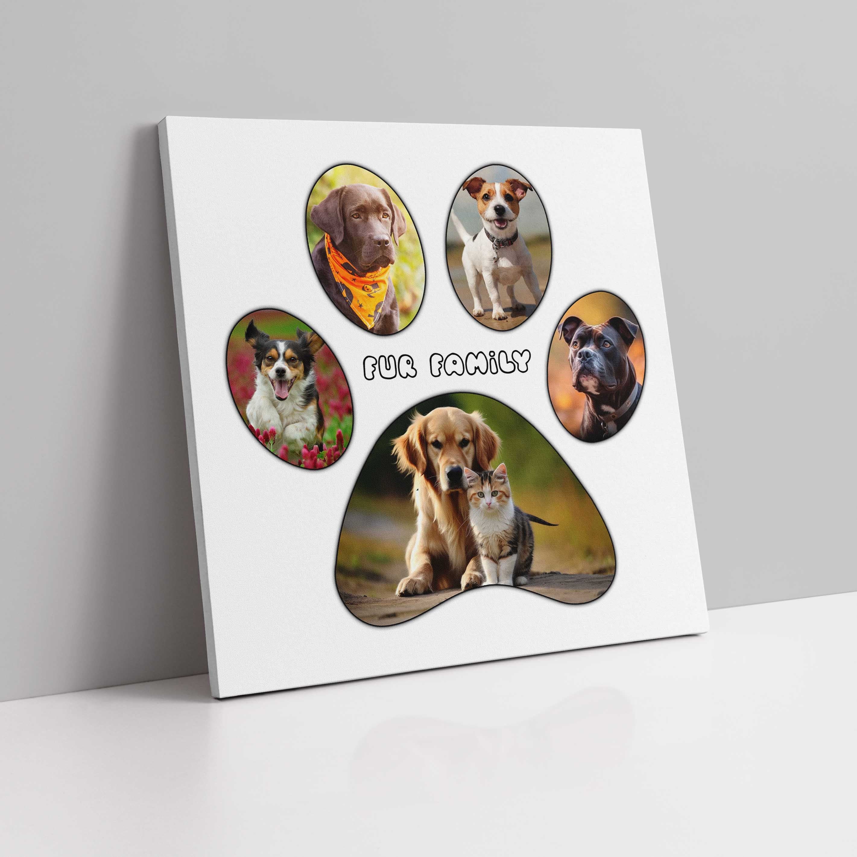 Beautiful collage canvas picture of a paw print filled with your favourite pictures.