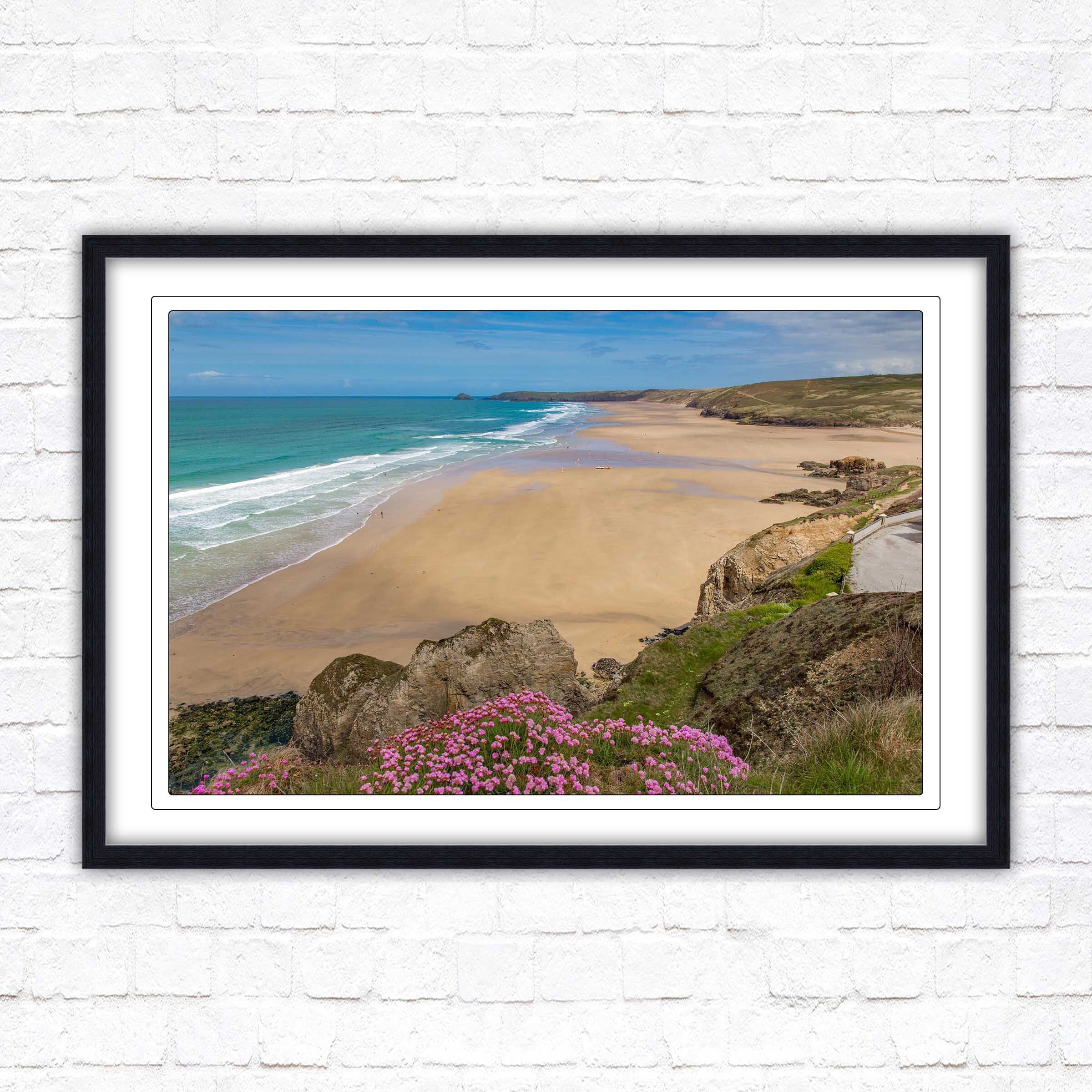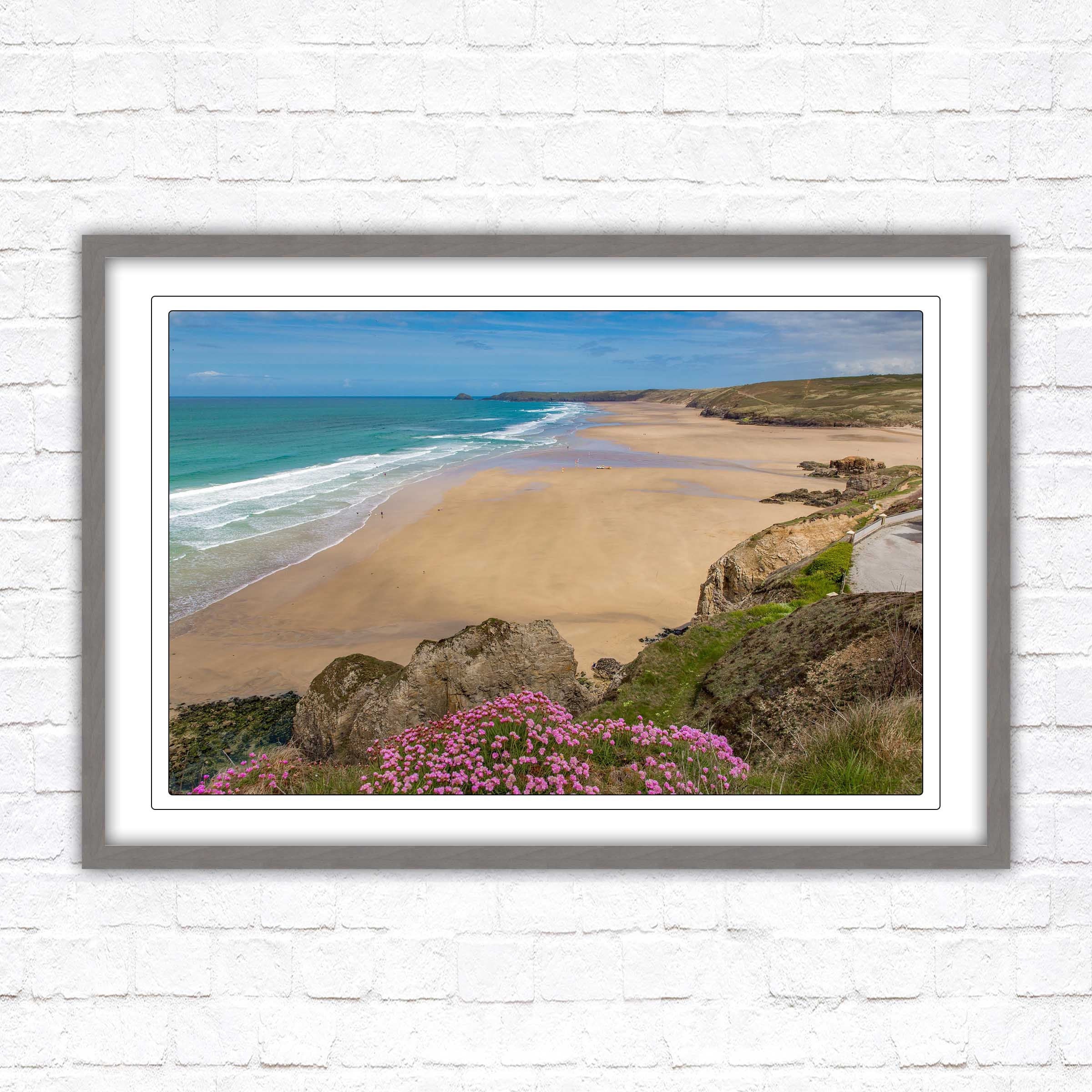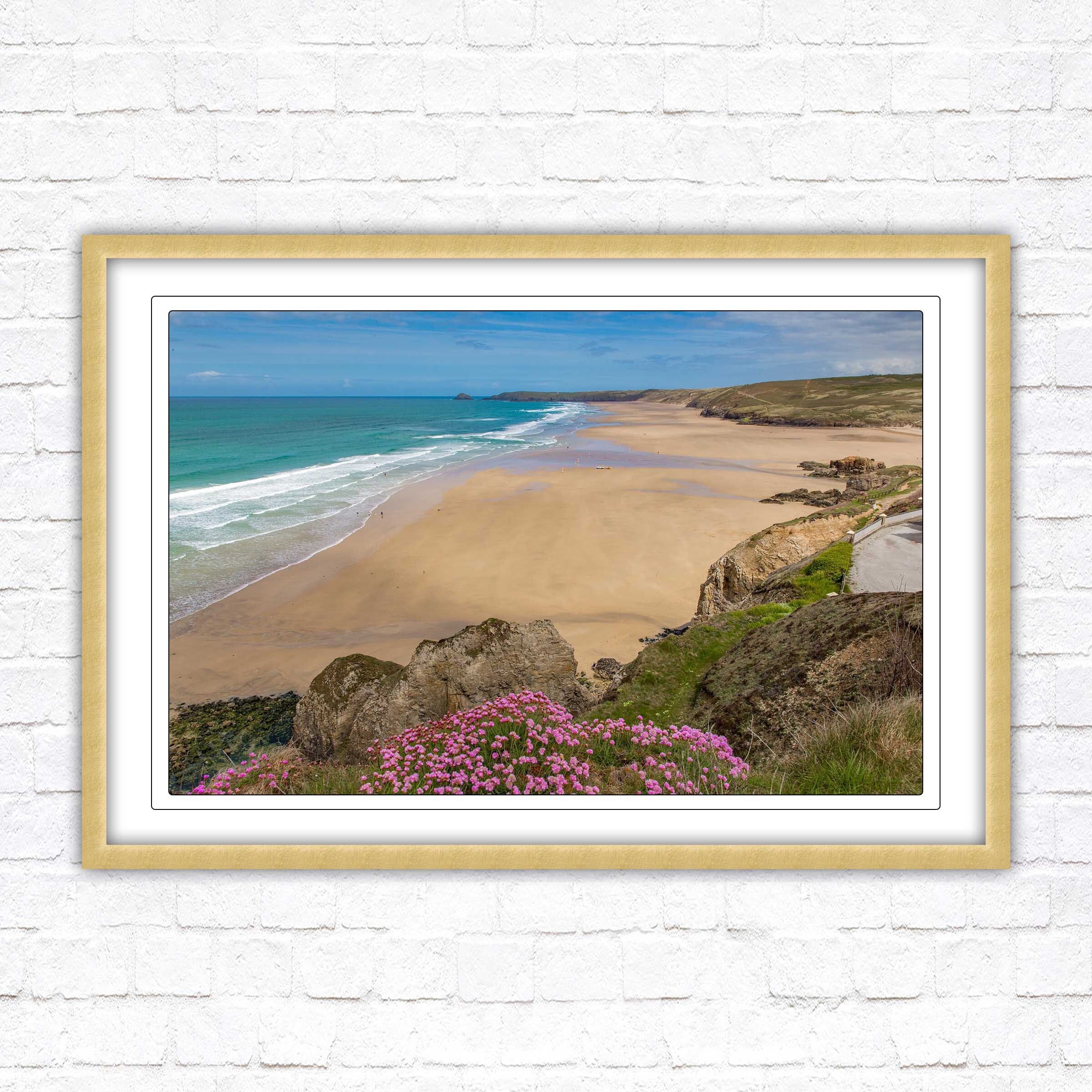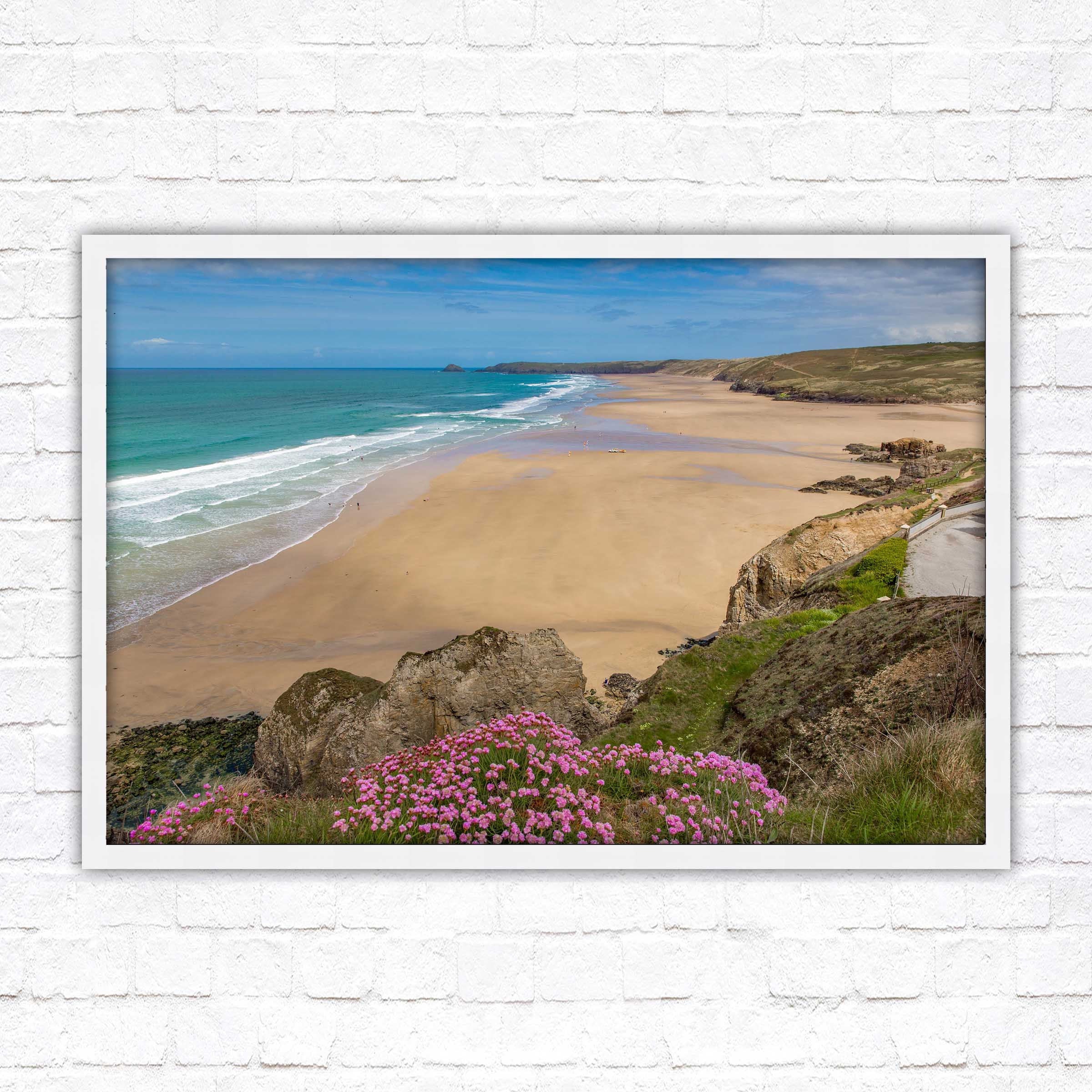 A beautiful framed picture of Perranporth beach, north cornwall. Choose from a choice of frame styles.