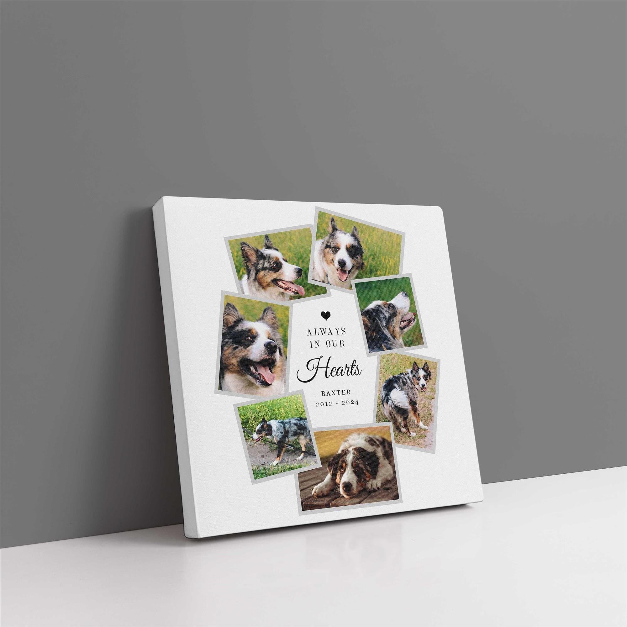 We can get your canvas looking like the example above, this mean no gaps and no heads covered! We DO NOT rely on automated software. If you like the general idea but would like a different dog shape just message us to discuss.
