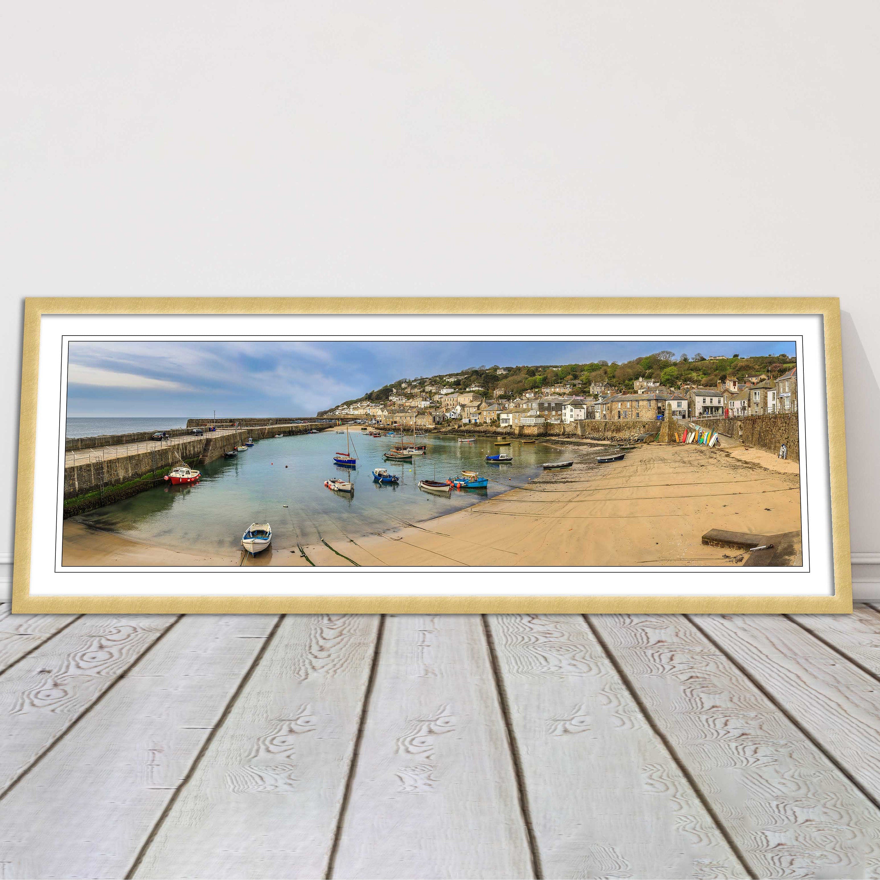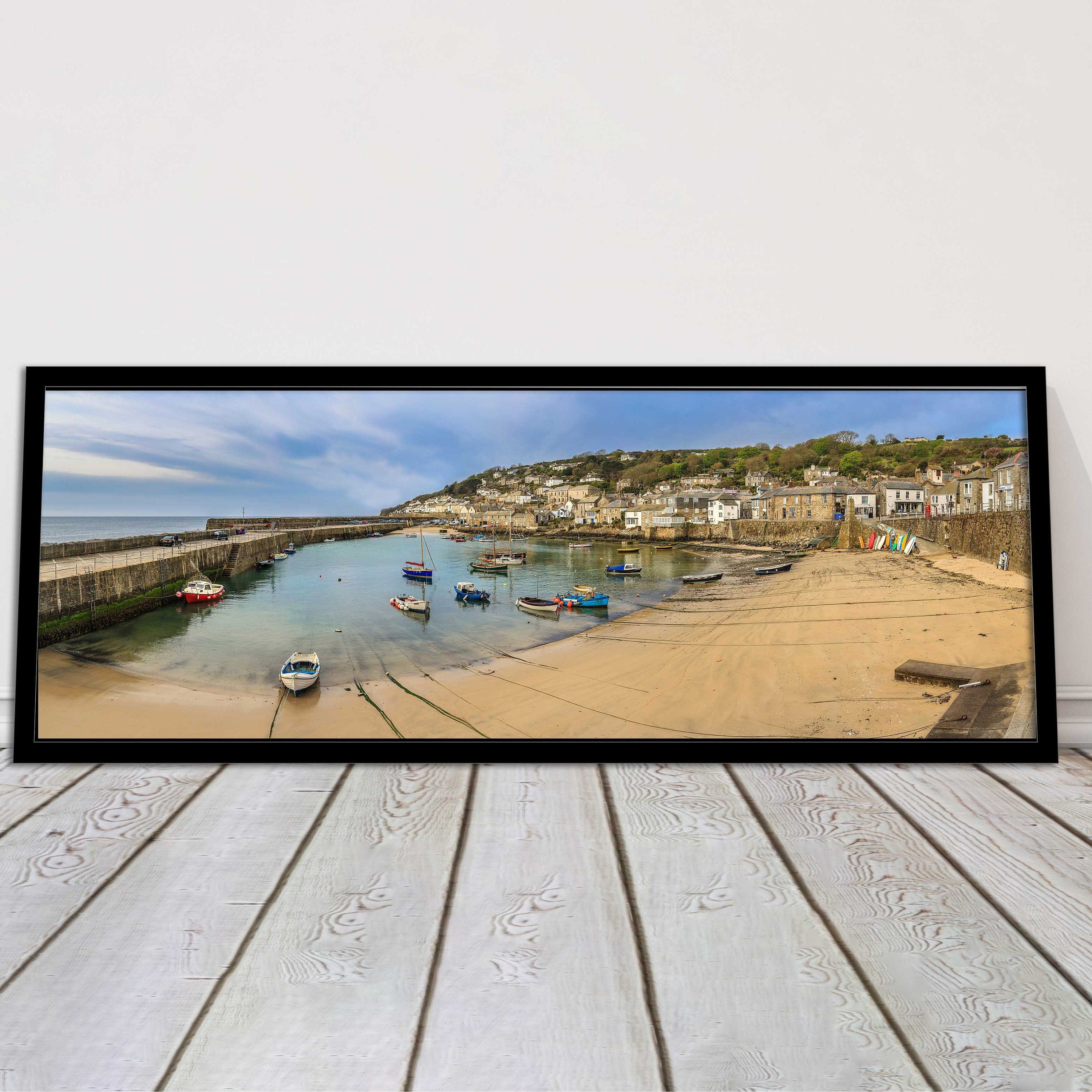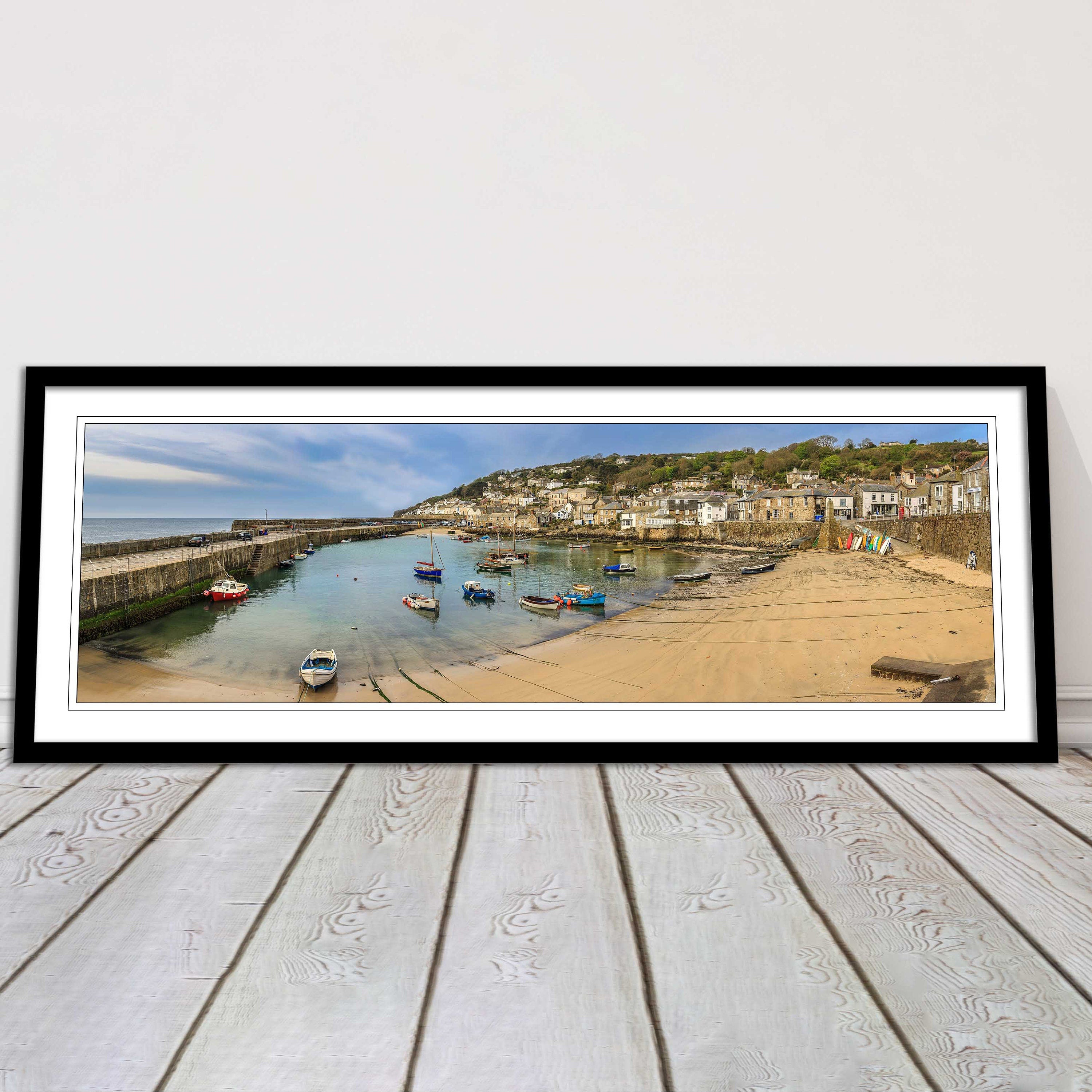 A beautiful panoramic framed picture of Mousehole Harbour, Cornwall. A choice of frames available.