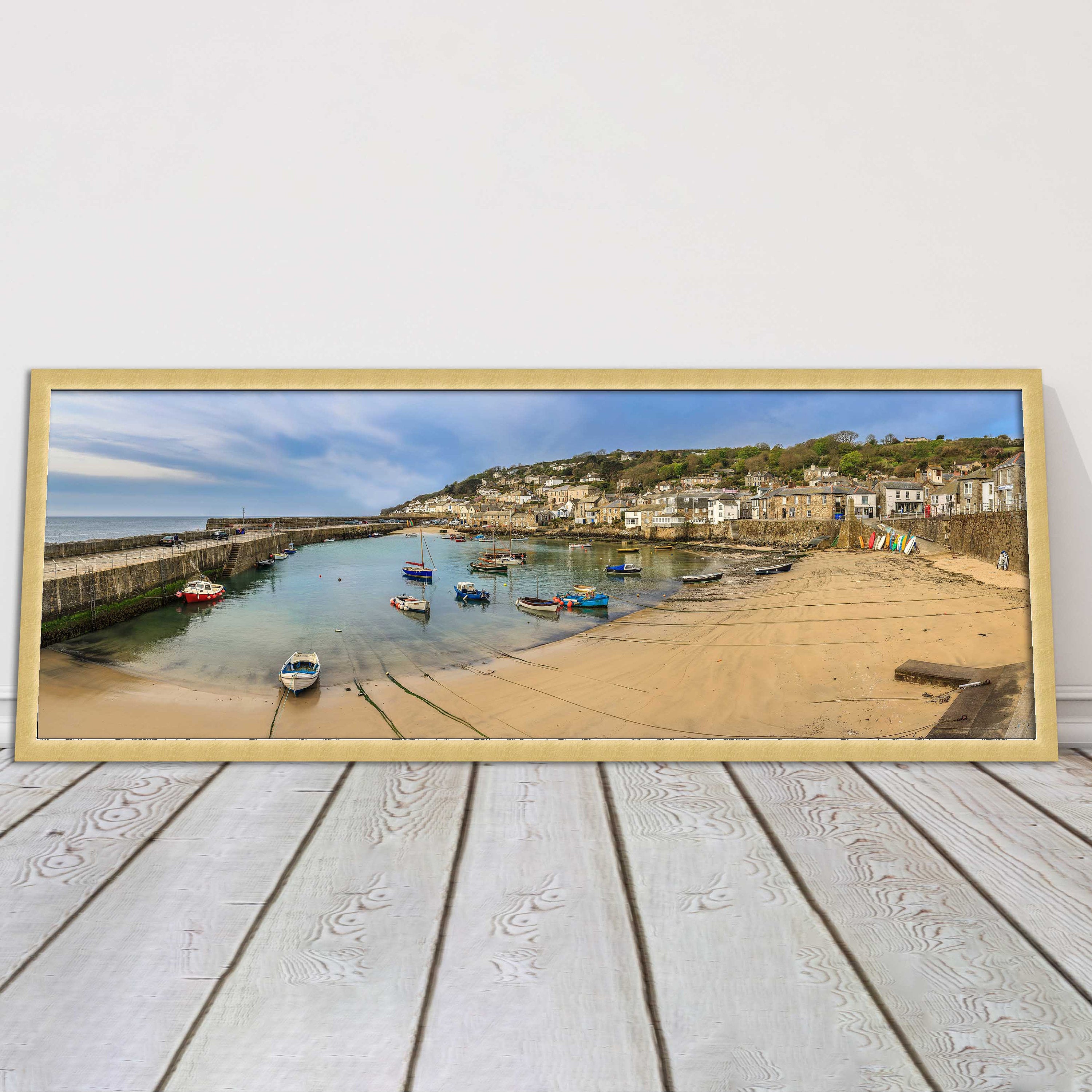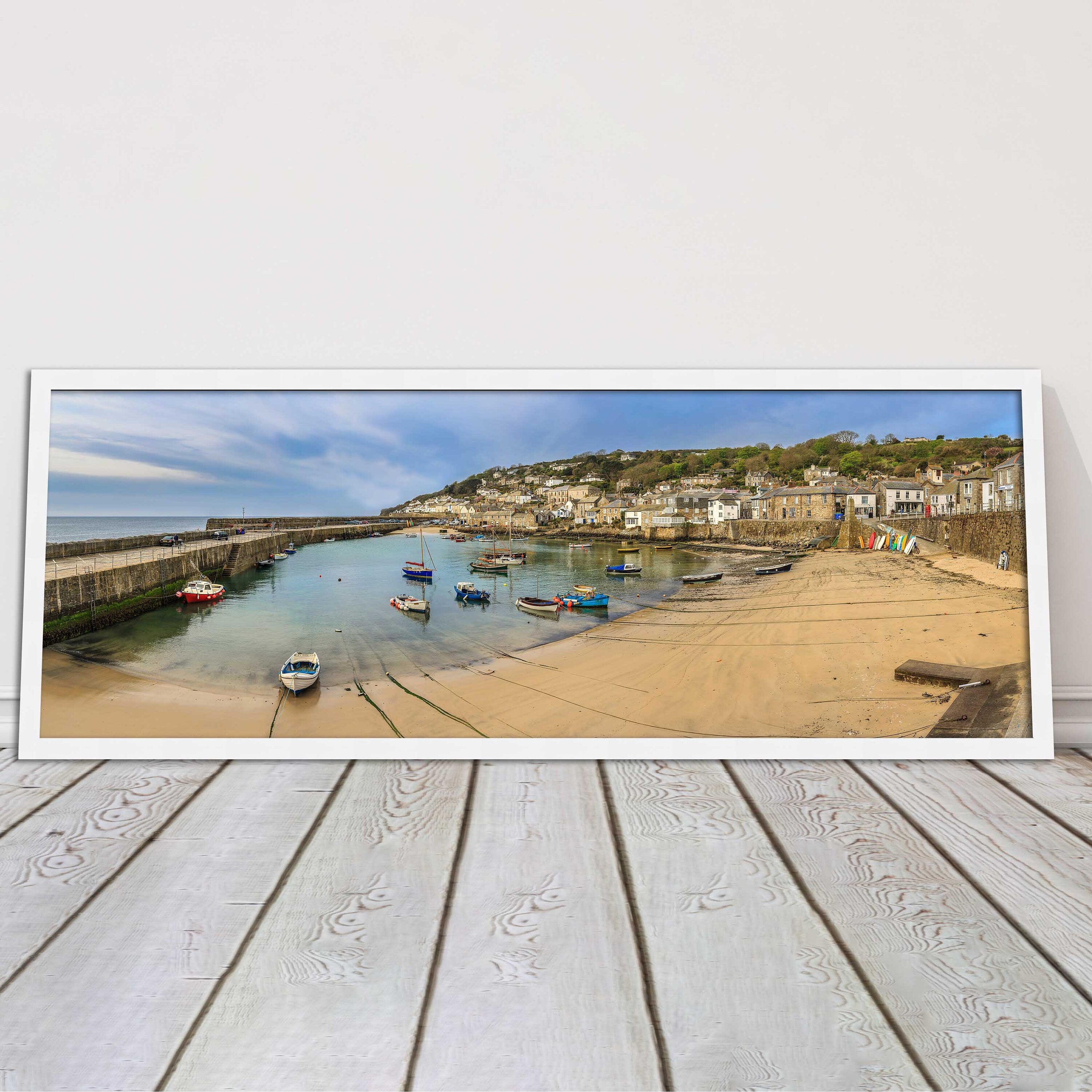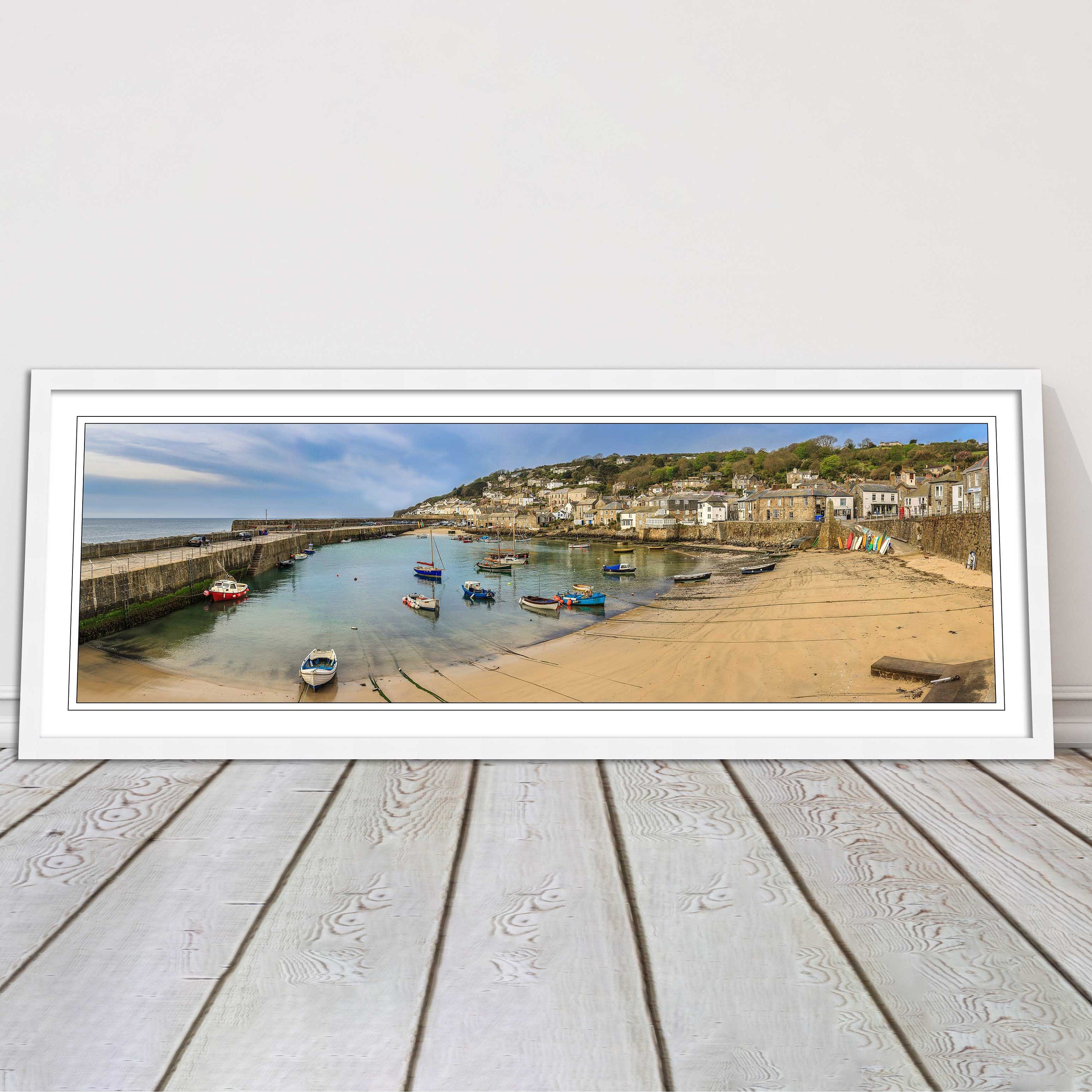 A beautiful panoramic framed picture of Mousehole Harbour, Cornwall. A choice of frames available.