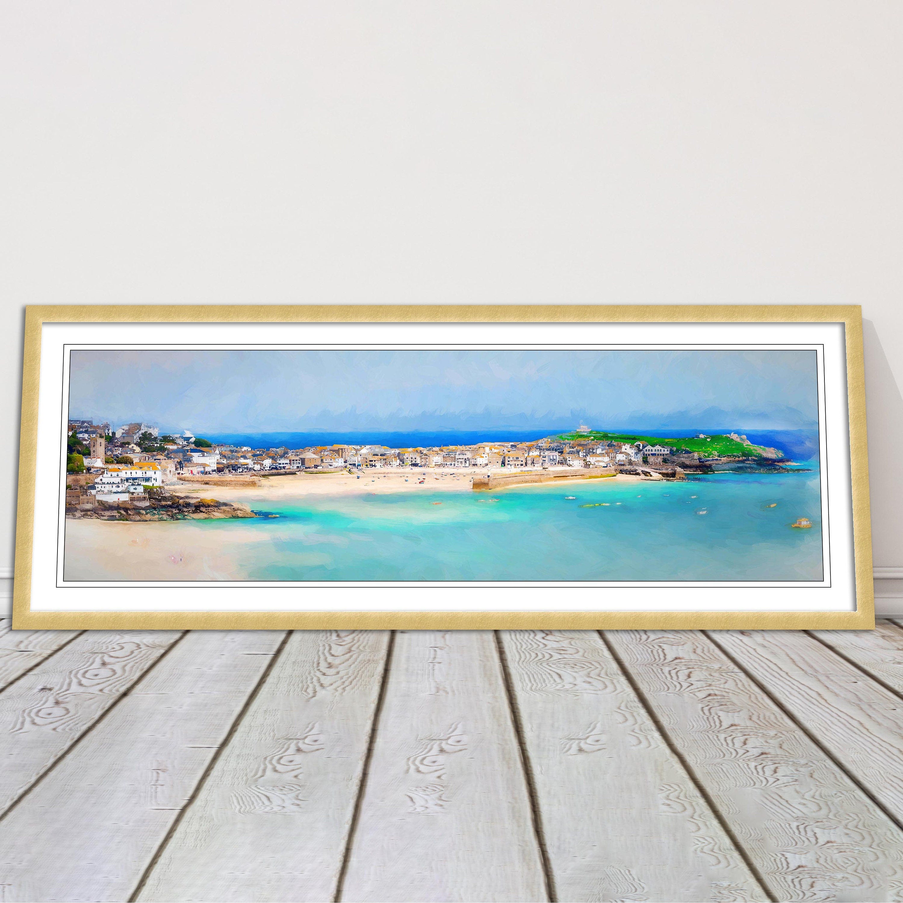 A beautiful panoramic framed picture of St Ives harbour painting in Cornwall