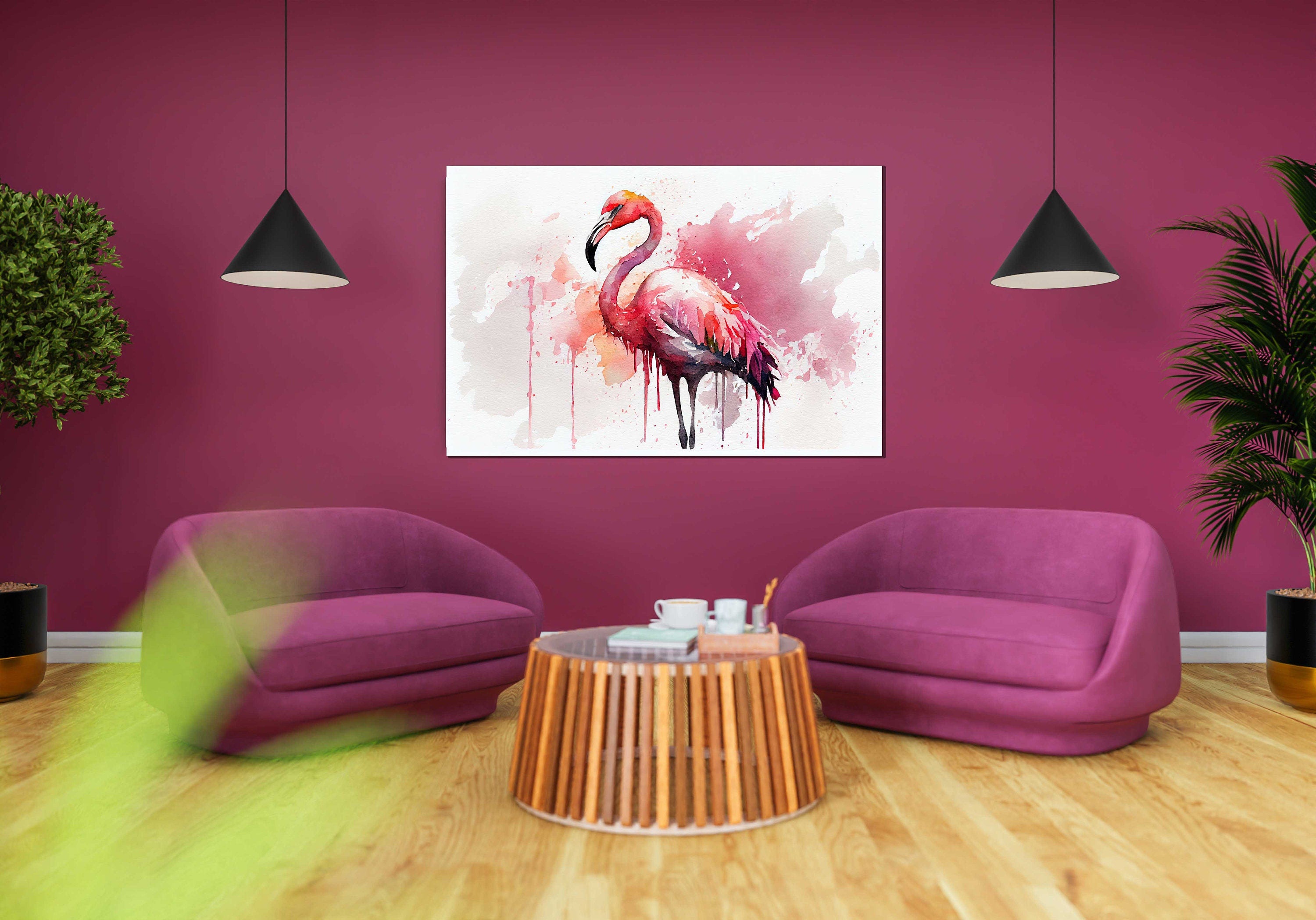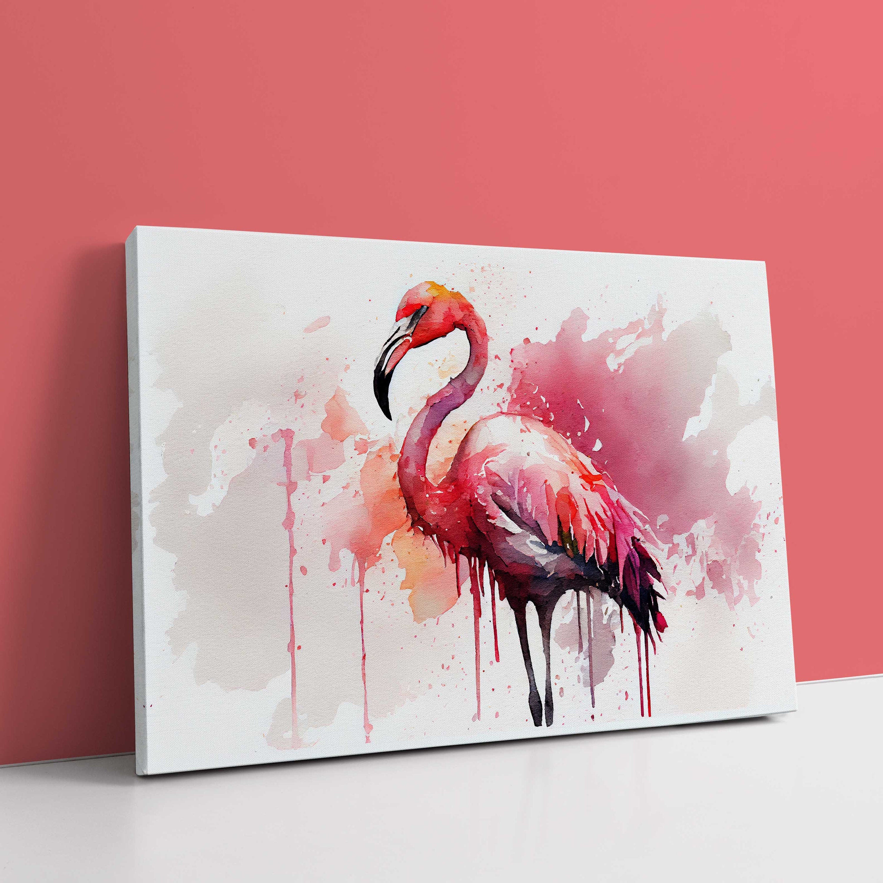 Pink Flamingo, watercolour paint effect. Canvas picture print.