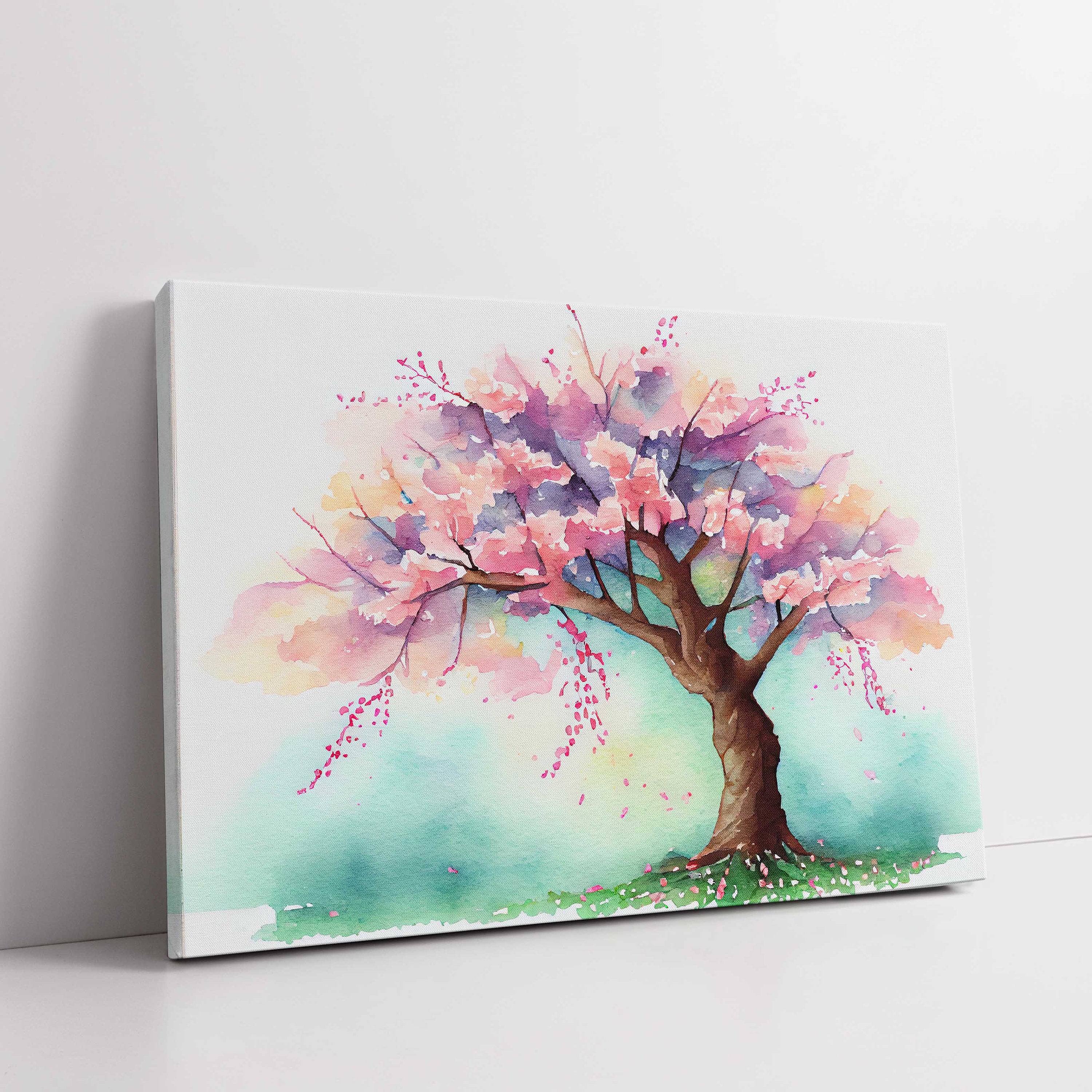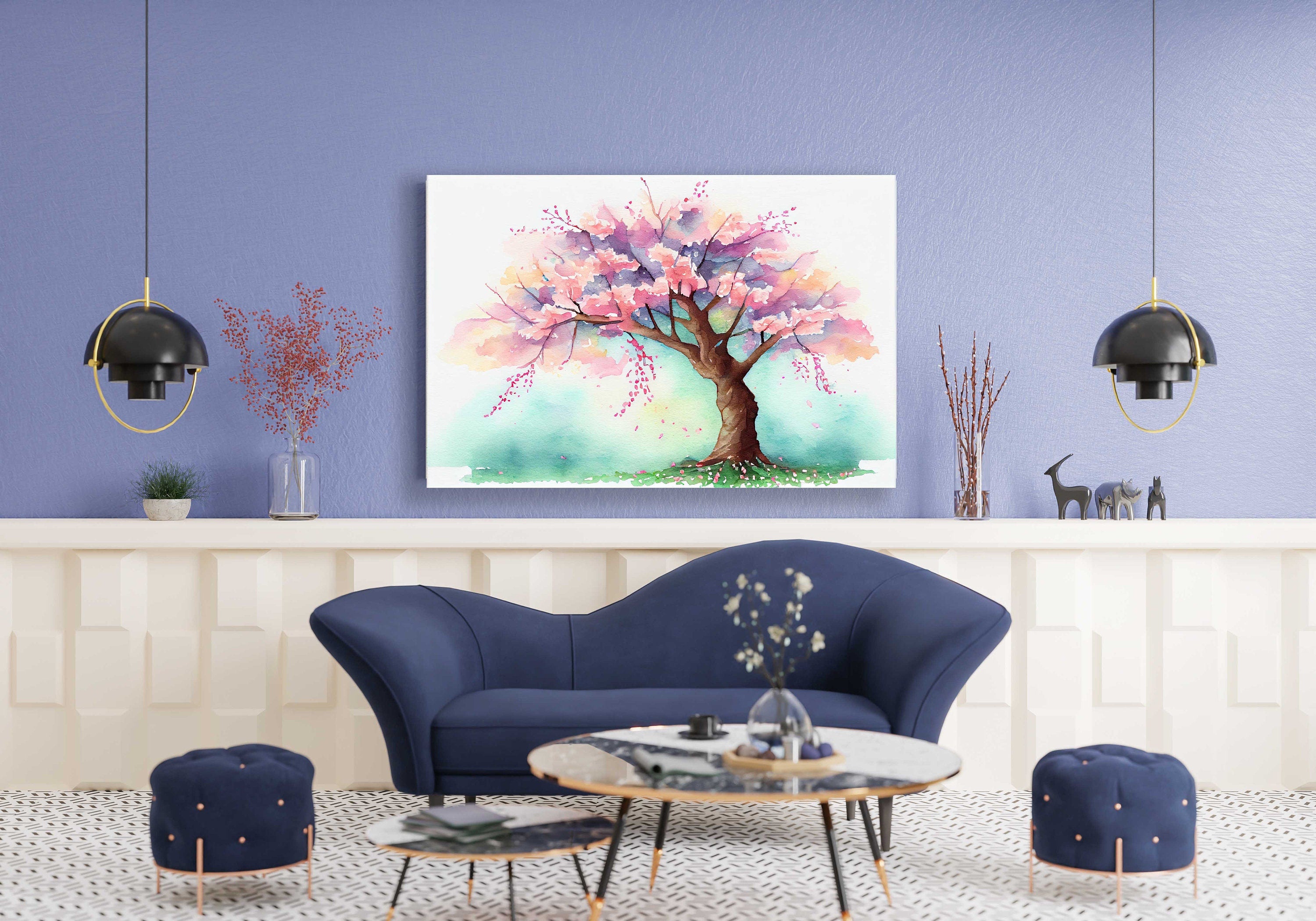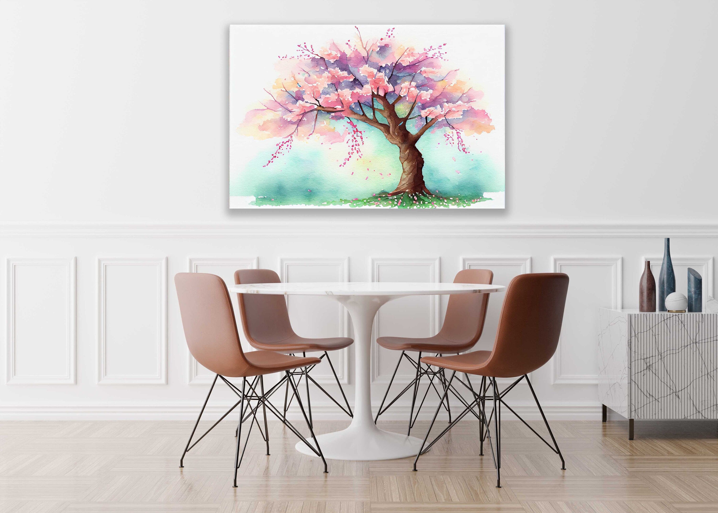 Watercolour Spring blossom tree in beautiful shades of pink. Vibrant seasonal blossom in full bloom. Printed and framed canvas picture... Read more