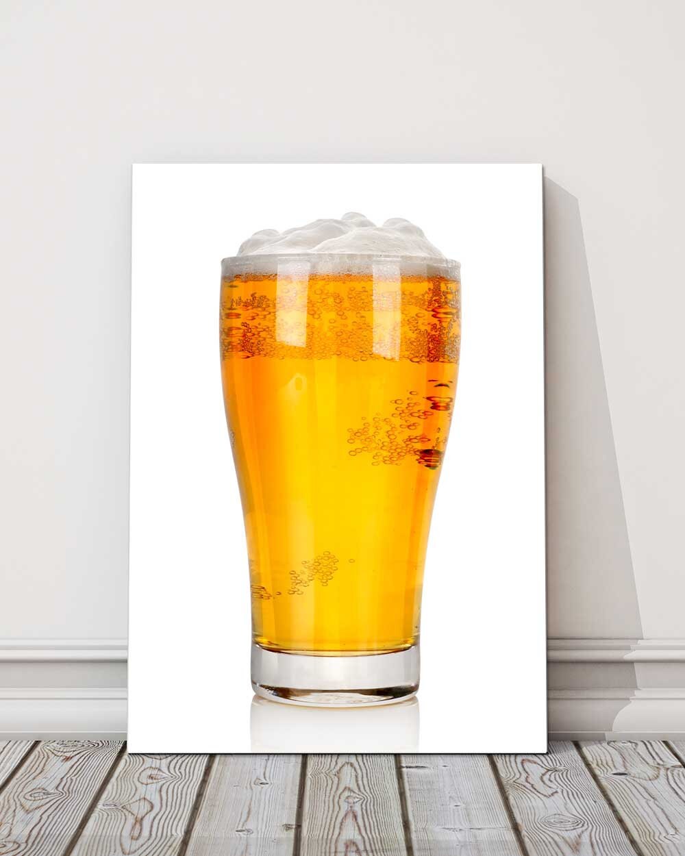 Pint of beer. Displayed on a white background. Printed and framed as a canvas picture print. Food and drink theme, ideal for kitchen, bar, restaurant. A range of sizes available.
