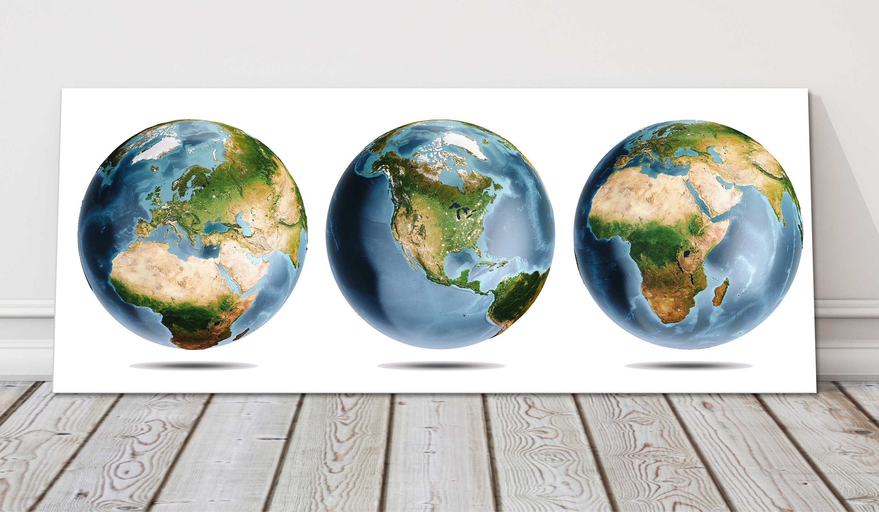 Planet Earth Trio. Panoramic canvas picture print. Lovely colours and detail.