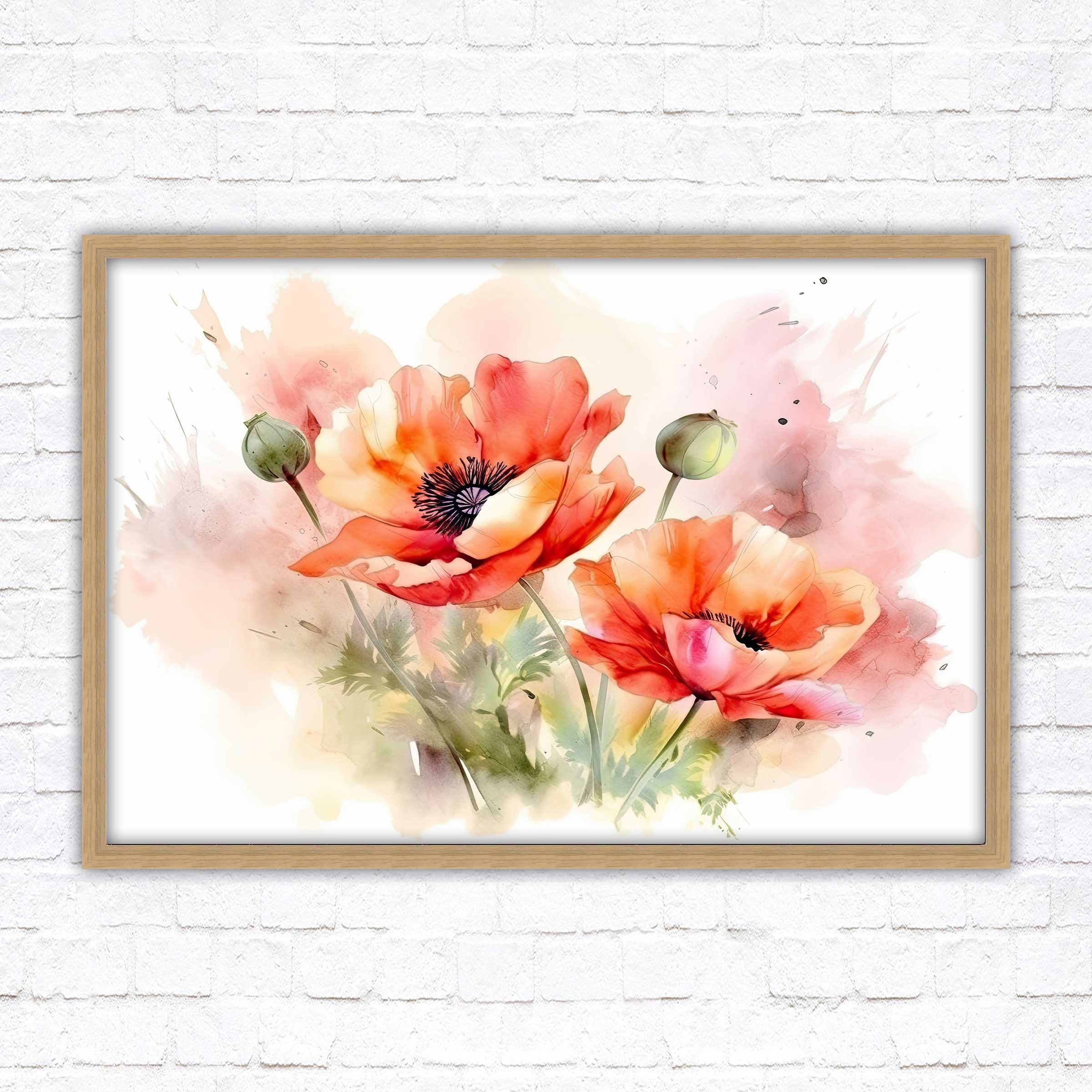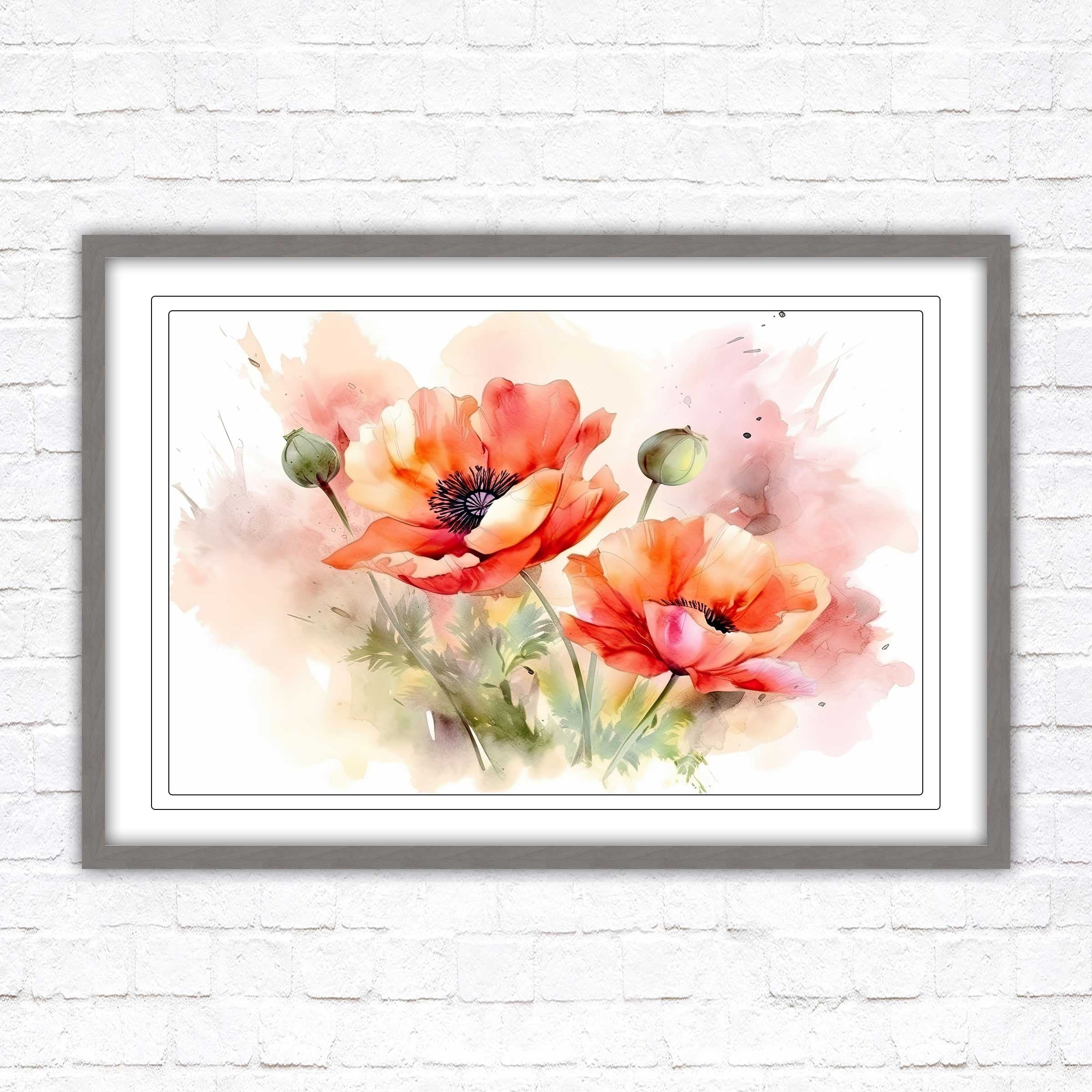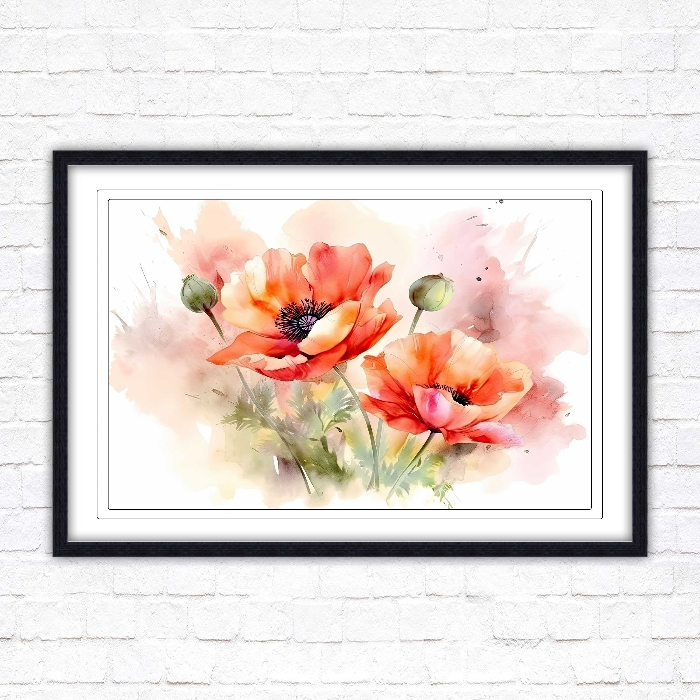 Poppies watercolour, Framed picture. Choose from a selection of frame styles.