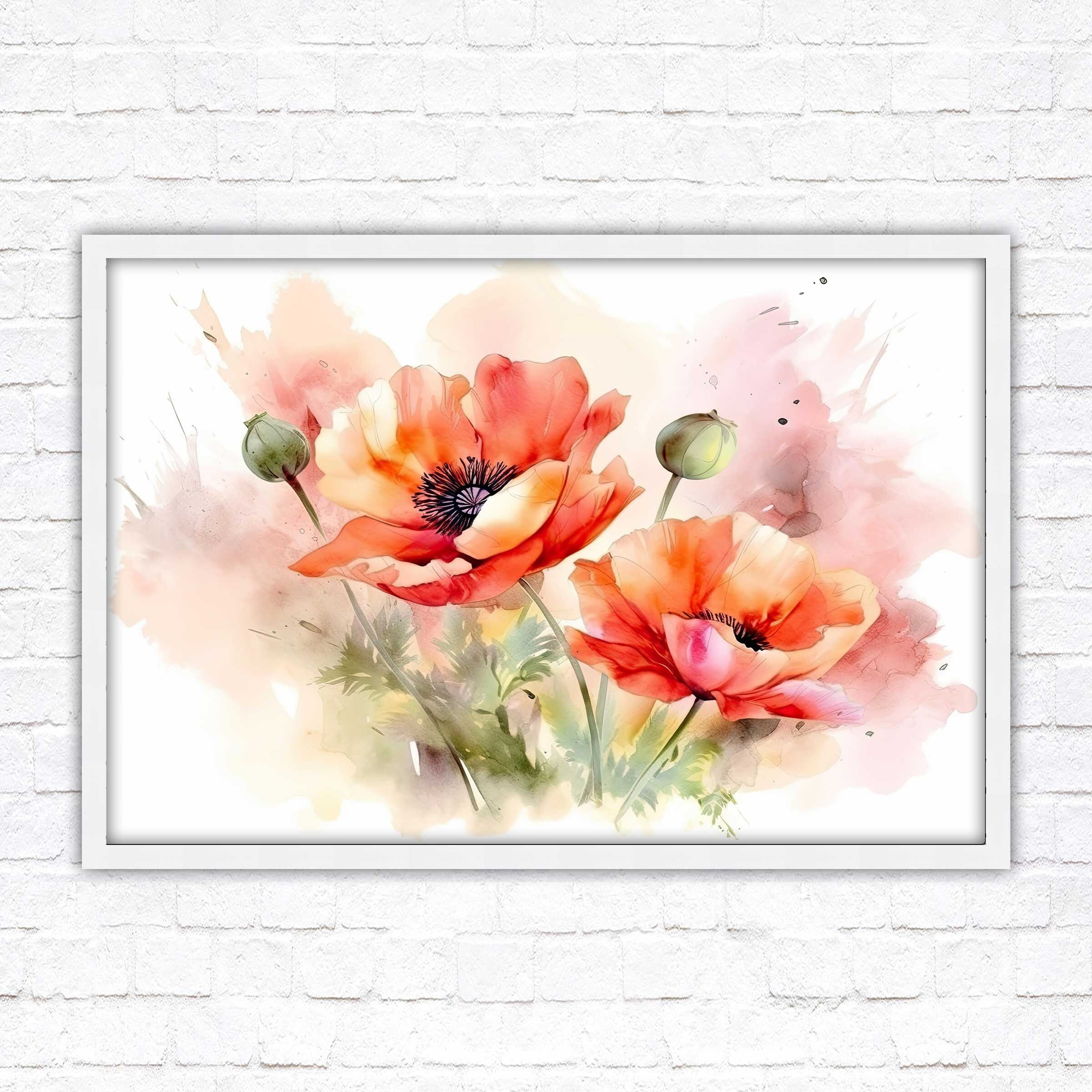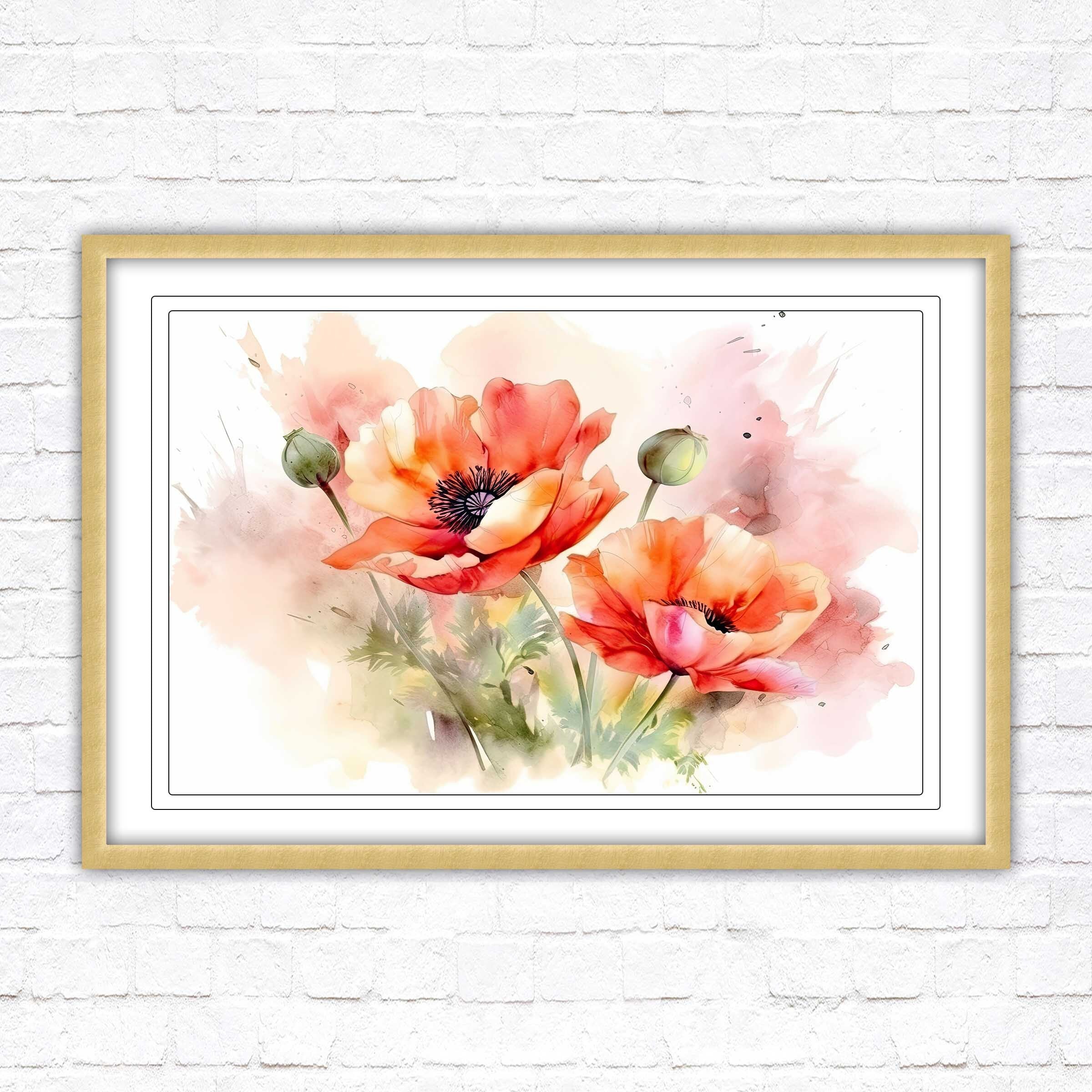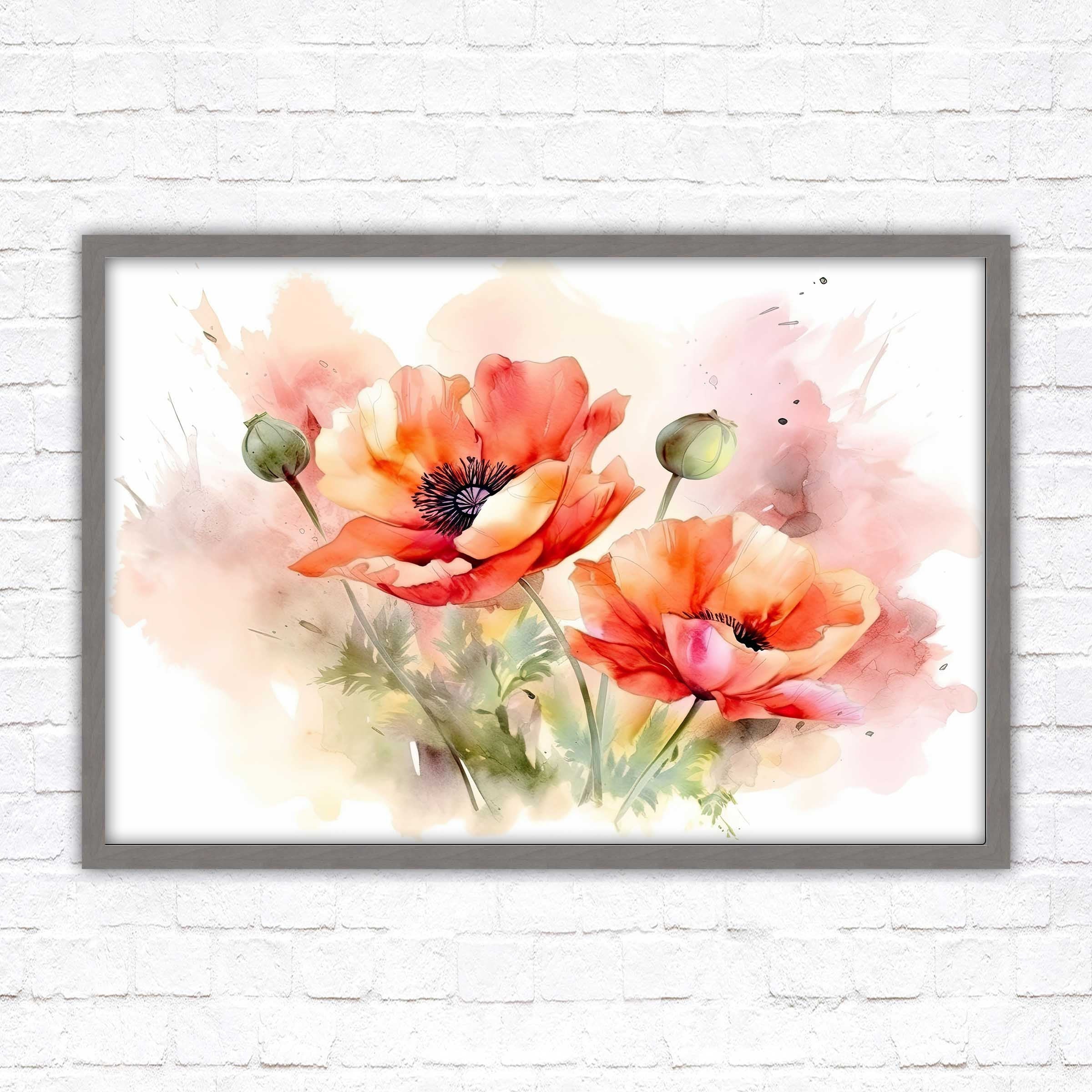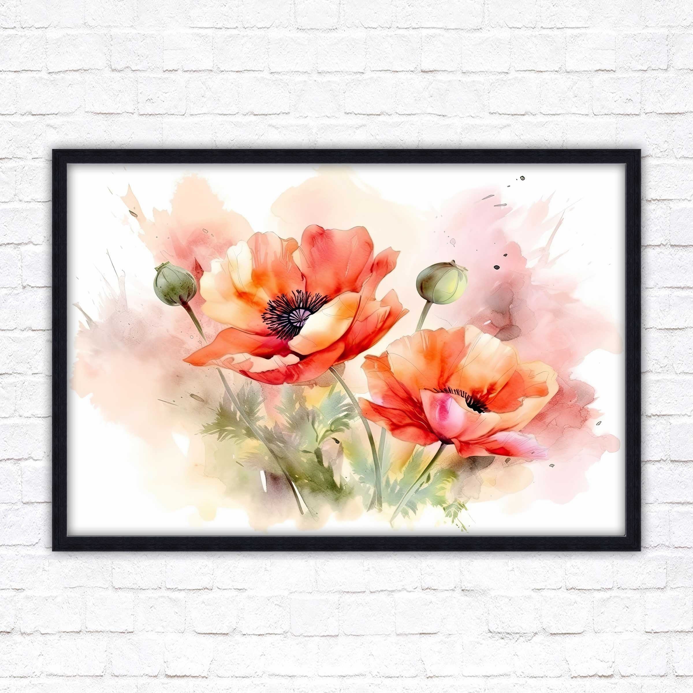 Poppies watercolour, Framed picture. Choose from a selection of frame styles.