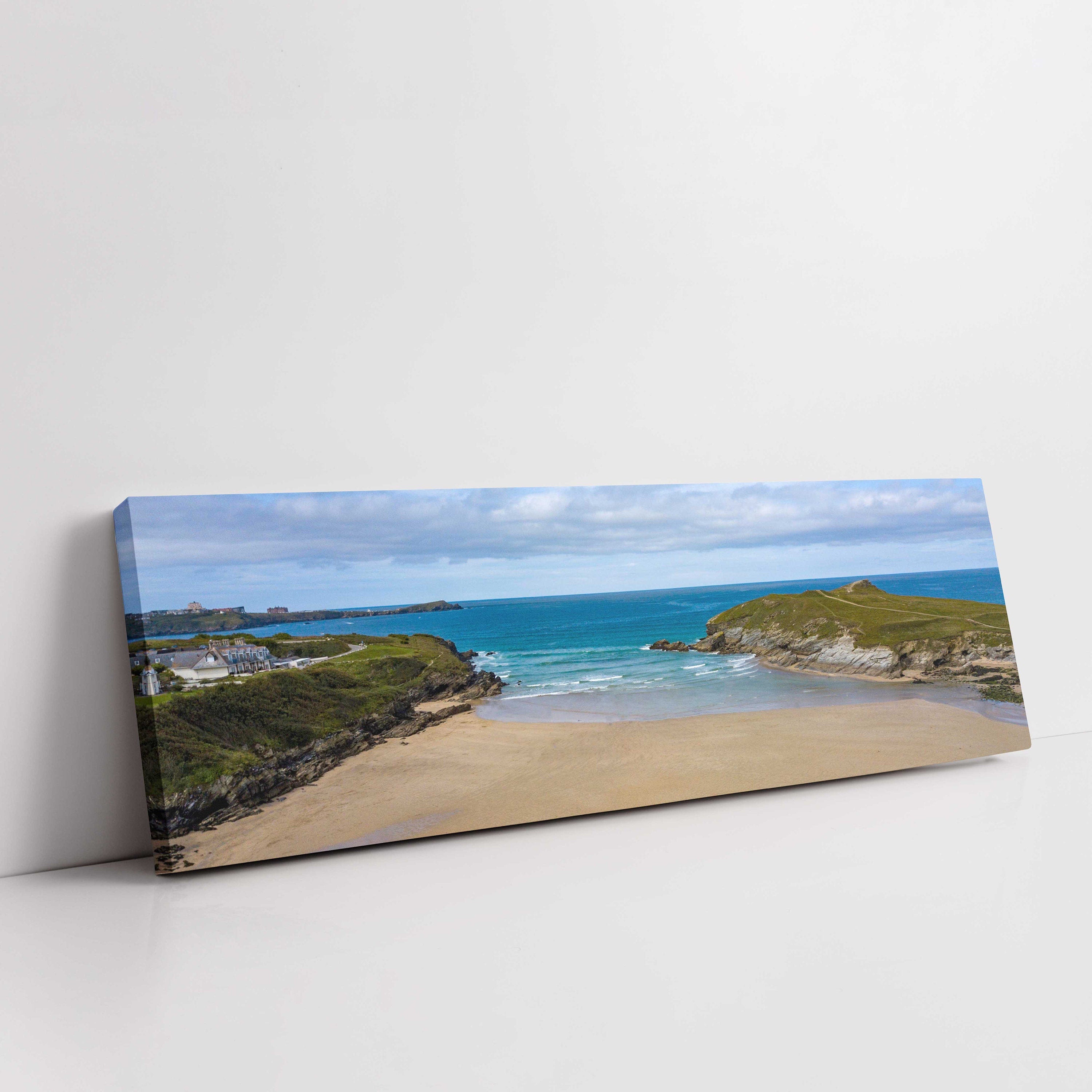Porth beach, North Cornwall. Panoramic canvas picture print. Aerial view of Newquay coastline, ideal gift. Available in a choice of sizes to order.