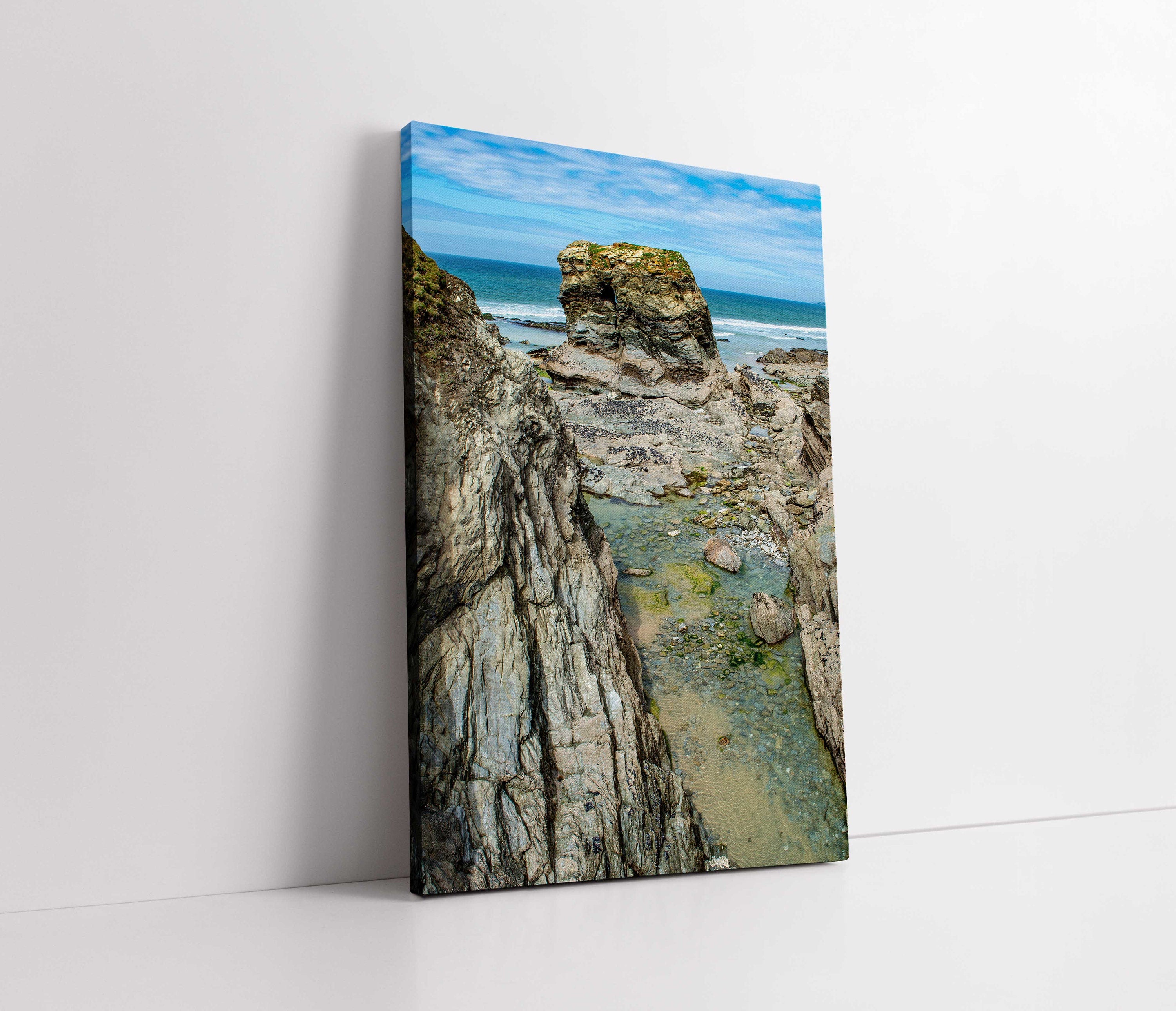 DESCRIPTION Portrait view from Porth Island of rocky coastline. Beautiful coastal picture. Printed and framed as a canvas print. Available... Read more